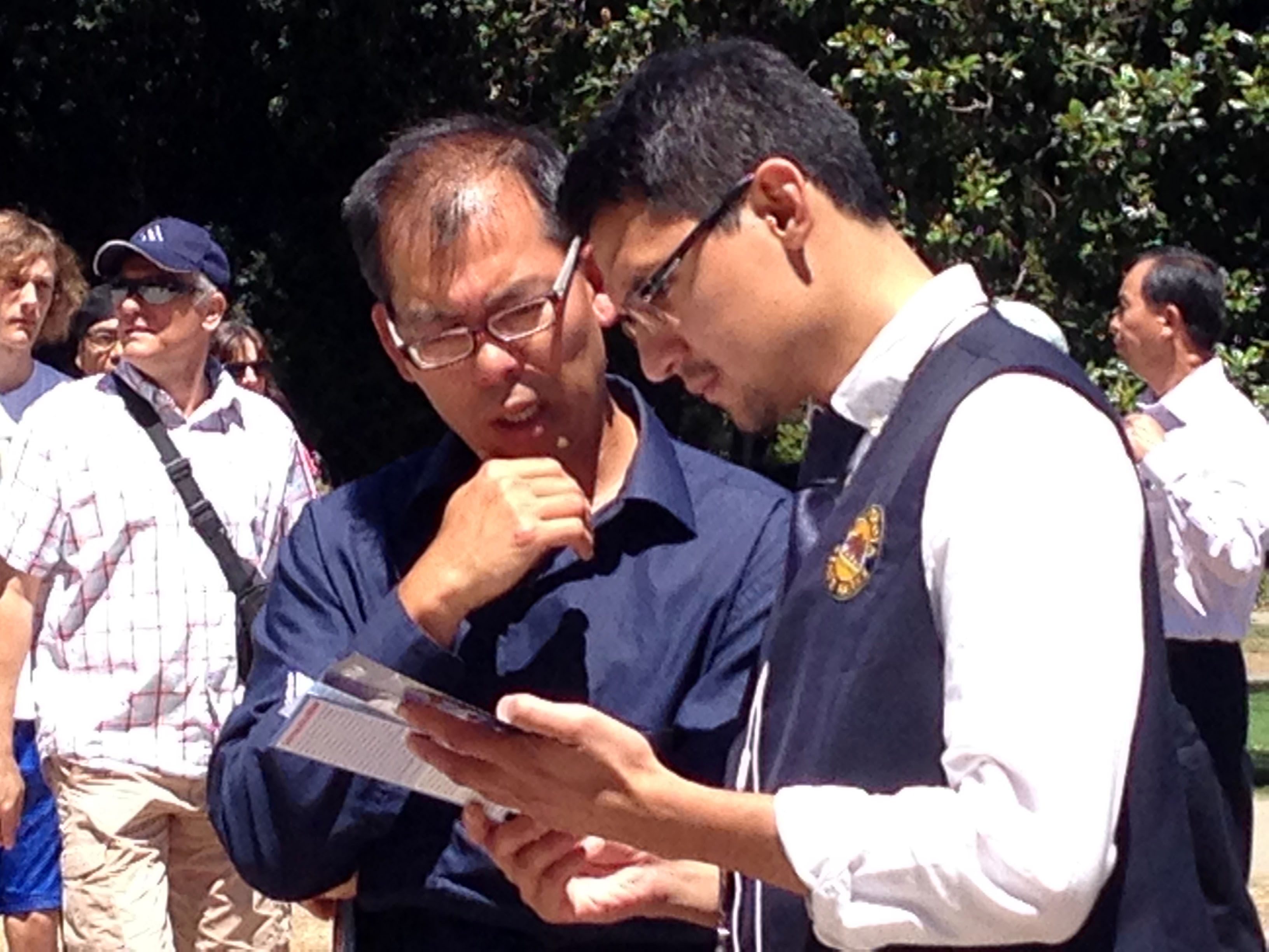 ![]() 法轮功学员向游客讲真相 |