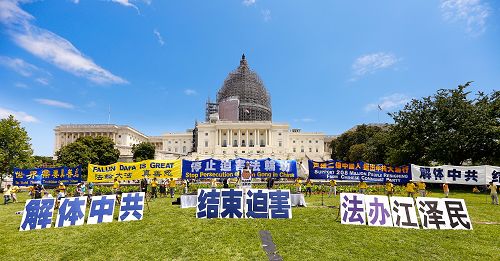 【明慧网二零一五年七月十七日】(明慧记者李静菲美国华盛顿DC报道)二零一五年七月十六日中午,来自美国各地的部分法轮功学员及支持者在美国首都华盛顿国会山西草坪集会,呼吁国际社会制止中共对法轮功长达十六年的残酷迫害。