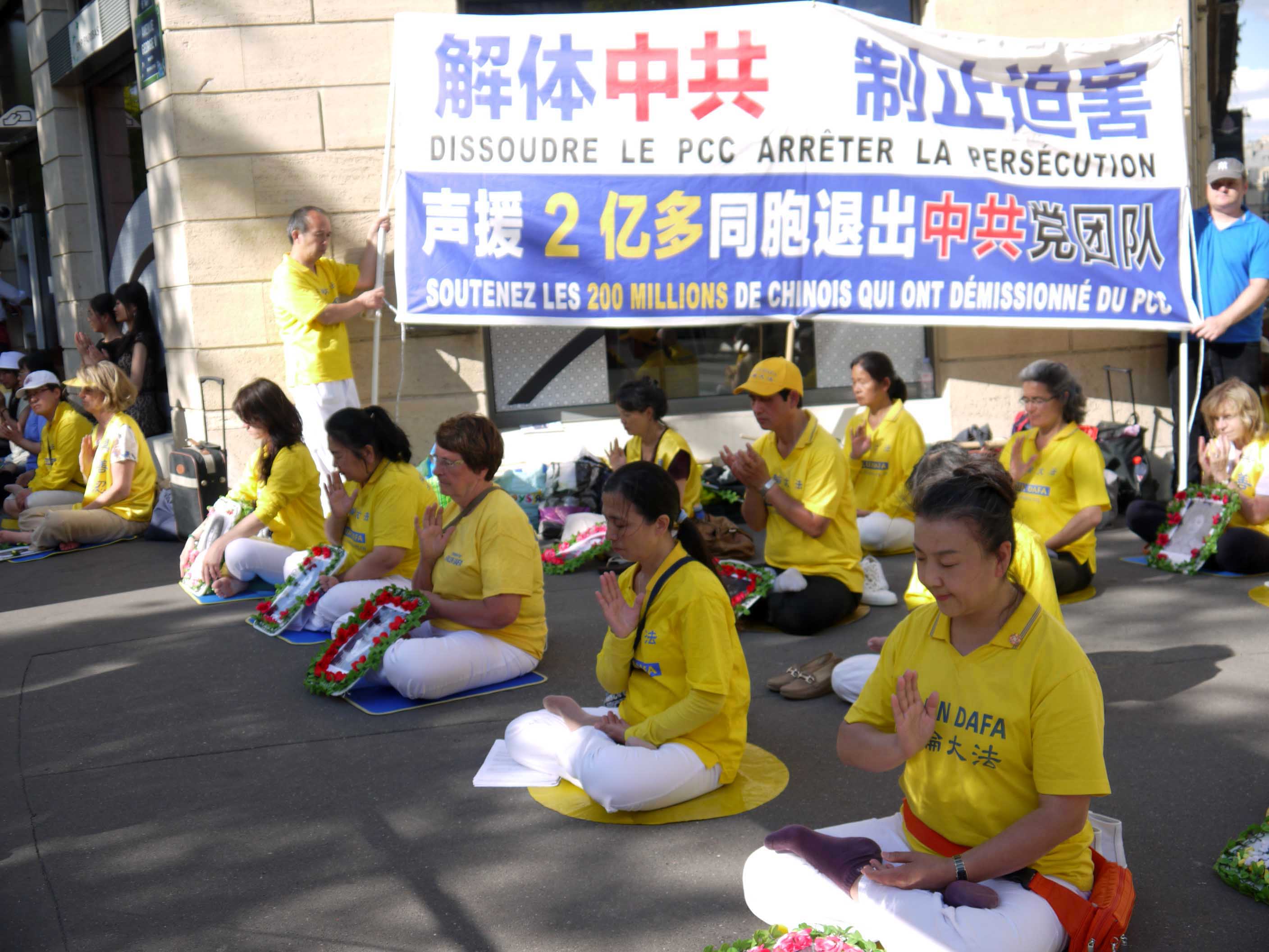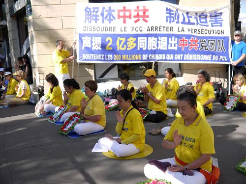 ![]() 图1-3:七二零的前夕,二零一五年七月十七,十八和十九日连续三天,欧洲的法轮功学员汇集在法国首都巴黎举行系列反迫害活动,呼吁制止迫害。 |