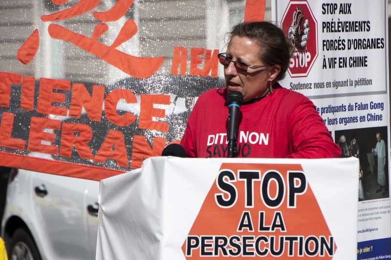 共同反对死刑组织代表Sylvie Le Lan女士前来参加集会并发言。针对中共强摘法轮功学员器官倒卖,她说:“我提请大家注意,中国的死刑犯人数占全球比例的80%,每年有2,500人被处死。”关于中共活摘法轮功学员器官一事,她建议应该成立一个国际调查小组去调查。