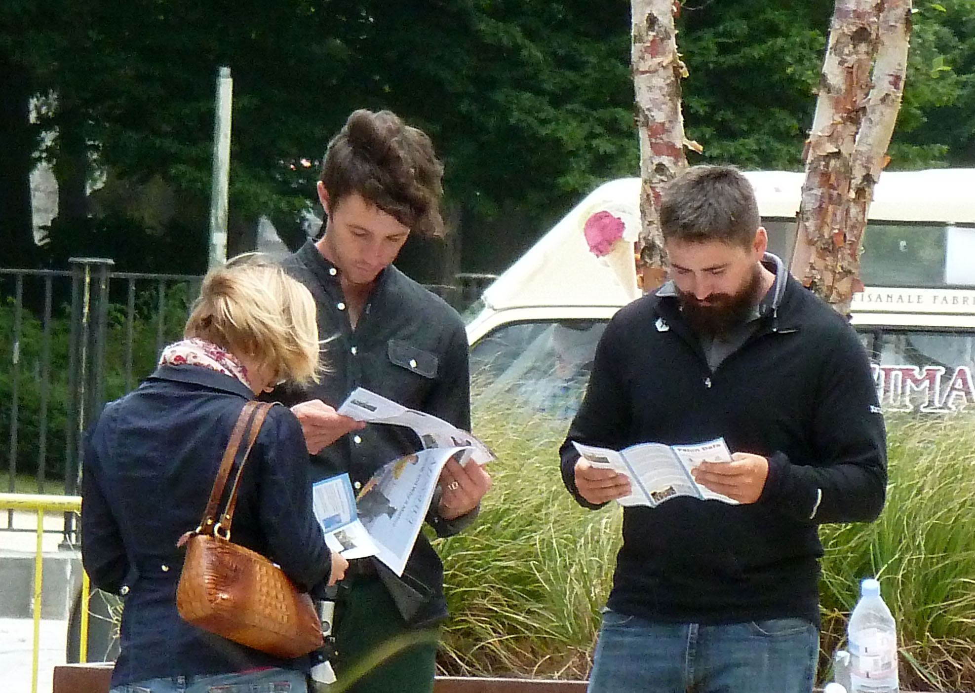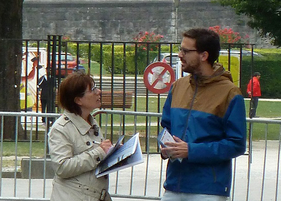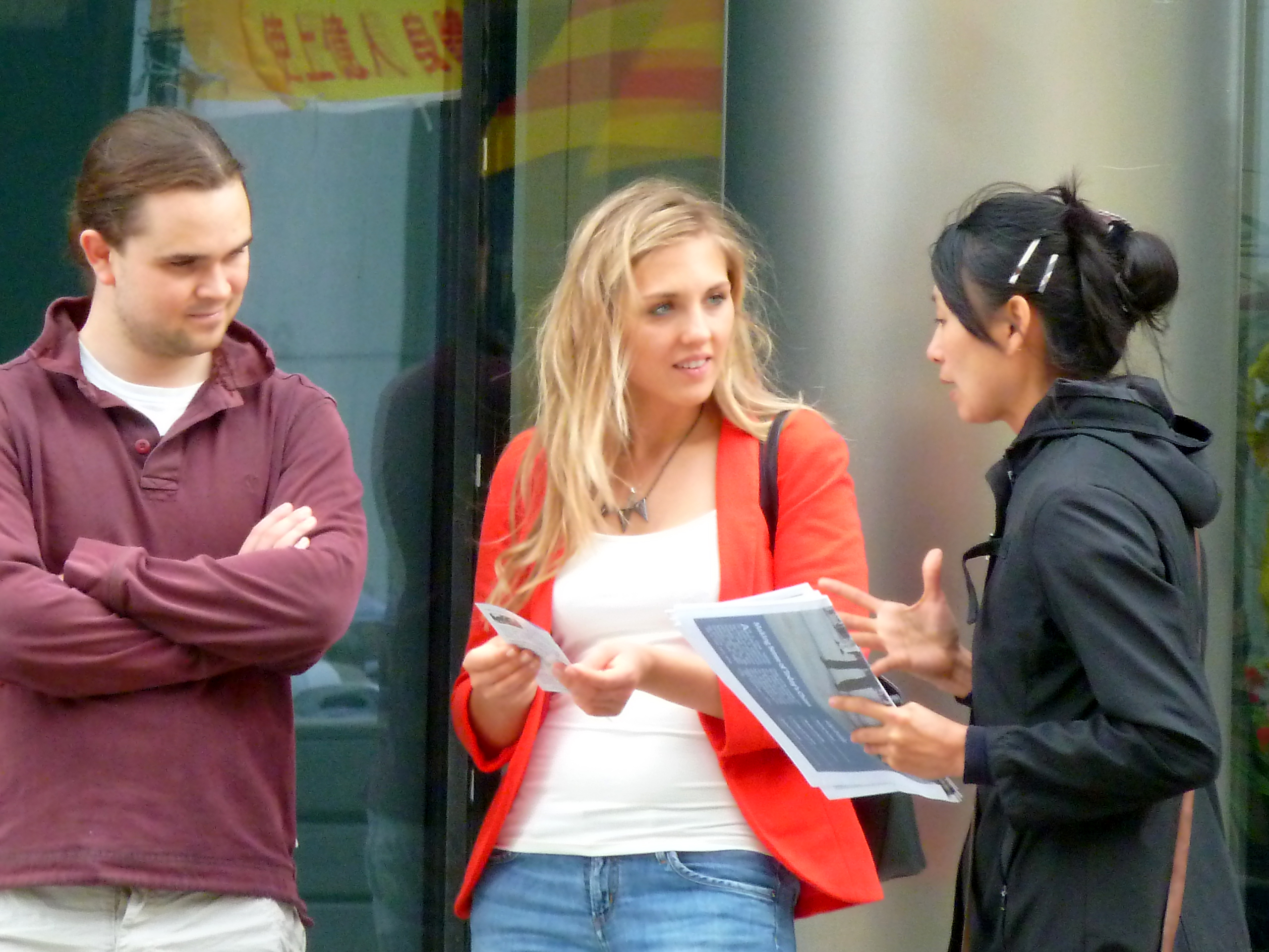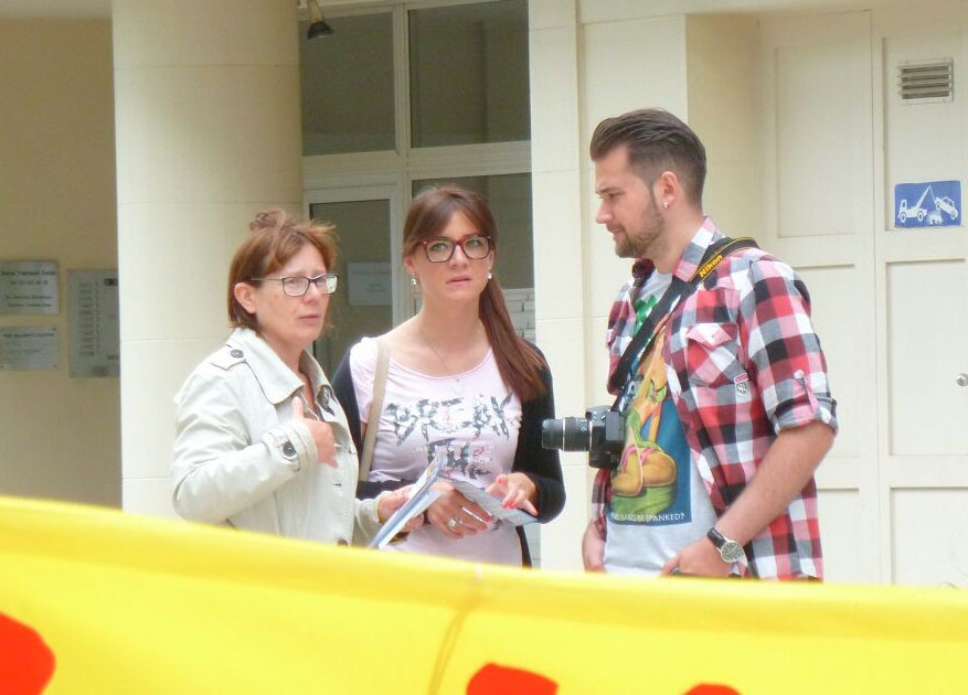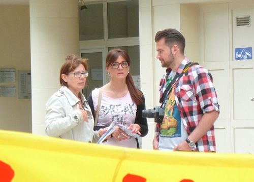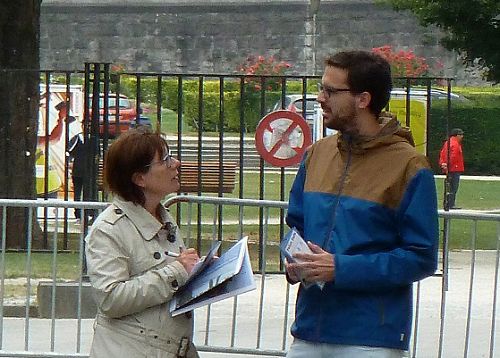 旺角公交车站前,一位二十多岁的年青人手指游行队伍,转头对他两位同伴说:“你看,那不就是退!党!保平安吗!”他们对讲真相的学员说:“我老早就知道中国共产党不好、很坏,所以我们坚持不肯入团、入党。”他们表示到德国读书已有三年,早在德国办过退出少先队,这次是从德国来港旅游。