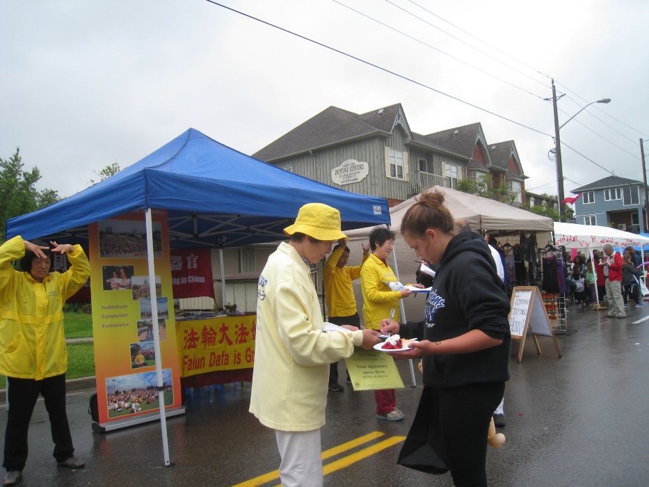 ![]() 图1:多伦多法轮功学员在草莓节上设立展位,传播真相。 |