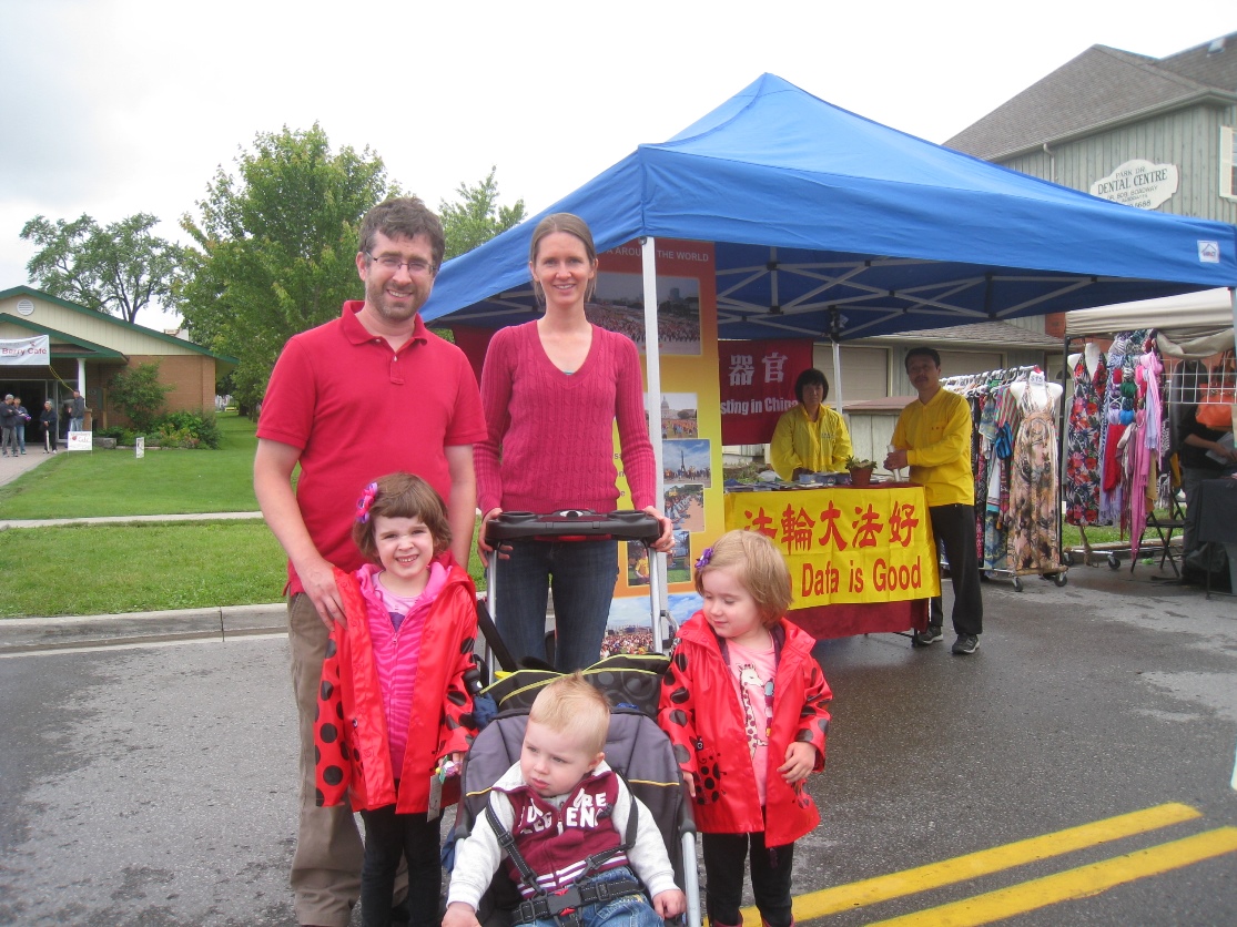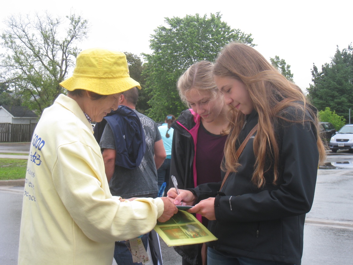 活动现场游人除签名支持法轮功学员反迫害之外,还有五名中国人现场做了三:退.。来自于山东省的大陆移民党先生和马女士夫妇路过法轮大法展位,义工问他们:你们知道天安门自焚事件吗?夫妇二人都说:“那是假的。”见夫妇二人知道天安门自焚事件,义工接着给他们讲中共的邪恶:文化大革命让夫妻反目、父子成仇人、大跃进饿死四千五百万人、六四镇压学生……还没等义工讲完,党先生就说:“这些在《·九·评*共产党》上不是都有详细介绍吗?”见他们夫妇二人非常了解真相,义工便问:那你们做过三:退.吗?回答说:做过了。经询问得知,二人是自己在退!党!网上做的。党先生说他们看过《大.纪.元;》报纸,说现在国内发生的很多事情都是天象变化,包括最近的国内诉江案。