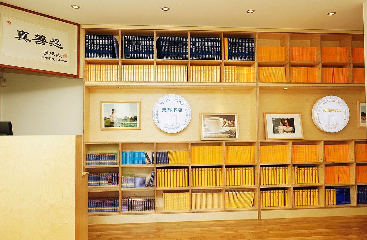 在天梯书店,陈列有迄今为止出版的所有的韩文“法轮大法”书籍,还陈列了中文简体和正体版本的所有书籍及一些英文版和日文版的《转法轮》书籍。 将以书店咖啡厅 (Book Café)形式运营的天梯书店可随便使用因特网络,除了各种大法书籍外,还销售使用天然原糖的咖啡及茶和茶果等。