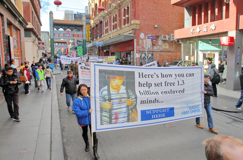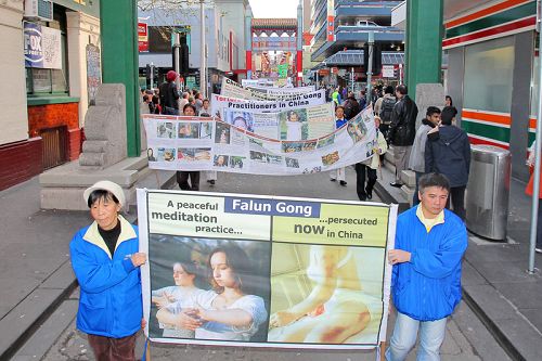 图1-10:七二零前夕,墨尔本法轮功学员在市中心举行了“纪念七二零反迫害十六周年”大游行,声援诉江,呼吁制止迫害。