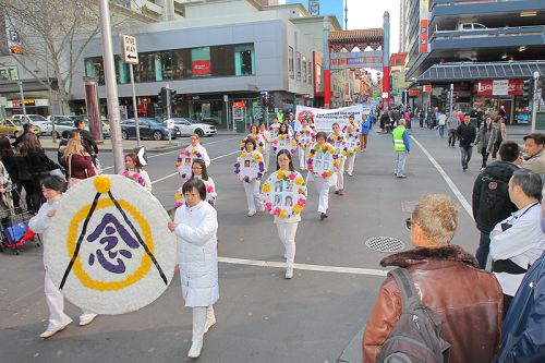 当天墨尔本一扫连日来的绵绵冬雨,湛蓝的天空、明媚的阳光下,法轮大法游行队伍绵延数百米,游行队伍途经市中心繁华的商业区及唐人街,最后到达终点站维多利亚花园(Victoria Park)。全程历经一个小时。
