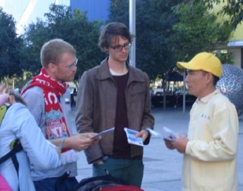 七月十八日这天是星期六,布里斯本广场人流如梭,很多人驻足观看展板,向学员了解真相。