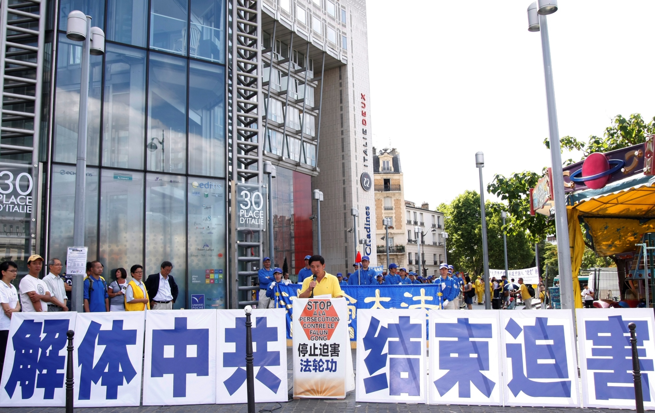 ![]() 图1:法轮功学员在巴黎市政府广场集会,呼吁停止迫害 |