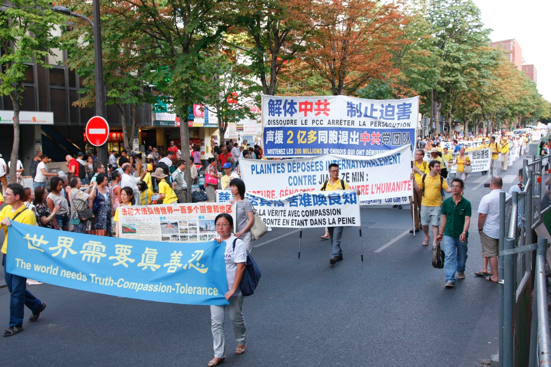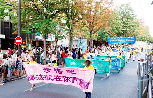游行队伍从美丽城出发,途经华人众多的十一区、三区,到达巴黎市政府广场。下午的游行从意大利广场出发,通过老唐人街——十三区繁华街道。队伍所到之处,吸引了很多中西方民众,人们想关心、要了解法轮功真相。