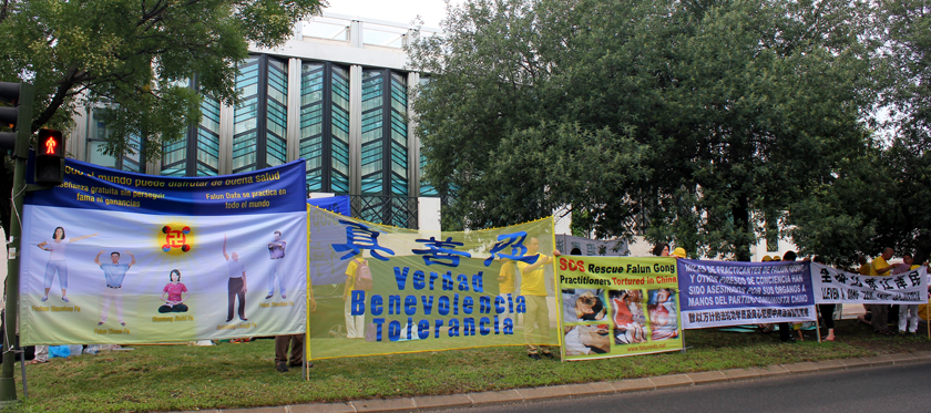 ![]() 图1-3:西班牙法轮功学员中使馆前集会呼吁反迫害 |
