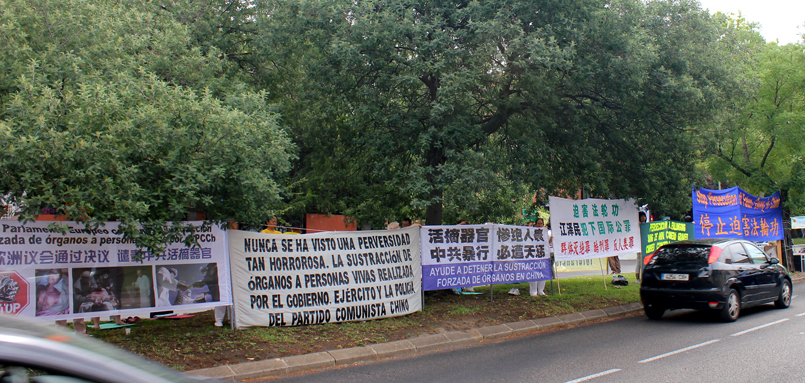 傍晚,参与“诉江”的西班牙法轮功学员手持诉状书,声援全球诉江大潮。他们其中不乏学生、教师甚至硕士,有的亲属被迫害致死,有的被冤判数年,在监狱中度过艰难岁月。之所以说艰难,那是因为数次与死亡擦肩而过,因为身陷监狱的法轮功学员随时都面临着被“活摘”的噩运。