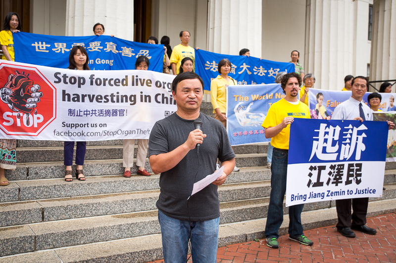 ![]() 耿飒博士在集会上发言,讲述自己控告迫害元凶江泽民的缘由 |