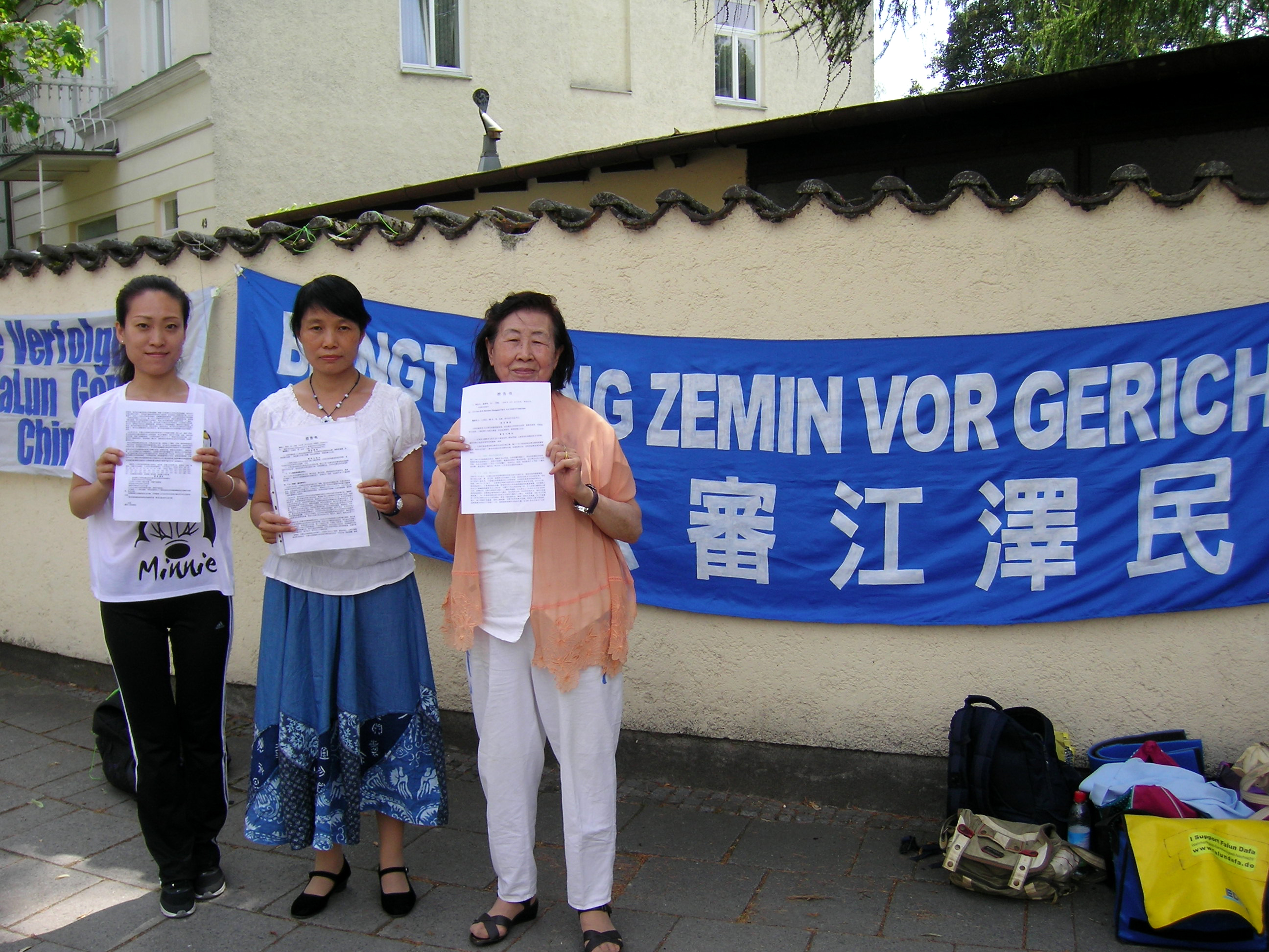 ![]() 部分巴伐利亚法轮功学员手持诉状,控告江泽民对她们的迫害 |