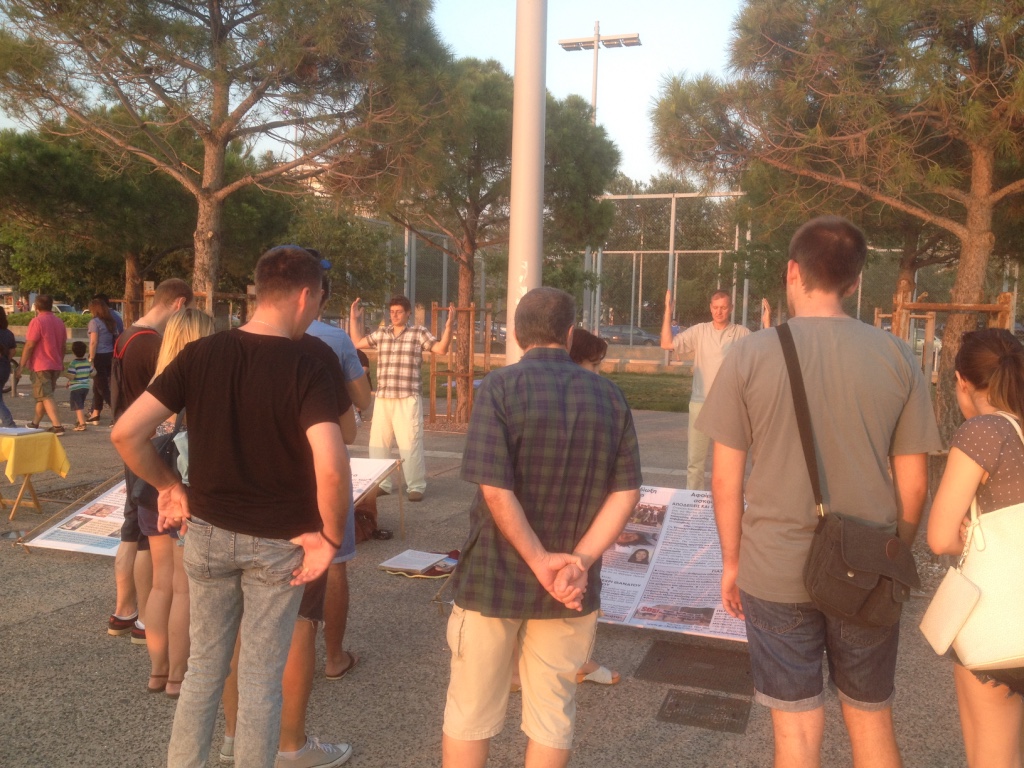 另一位女士询问:“这么好的功法为什么被迫害?”在与学员交谈后她说:“哦,我现在明白了,法轮功学员在真理前觉醒,中共用恐惧来统治,然而,一个觉醒的人绝不会受共产党的控制,无论怎么都再不会恐惧了。”