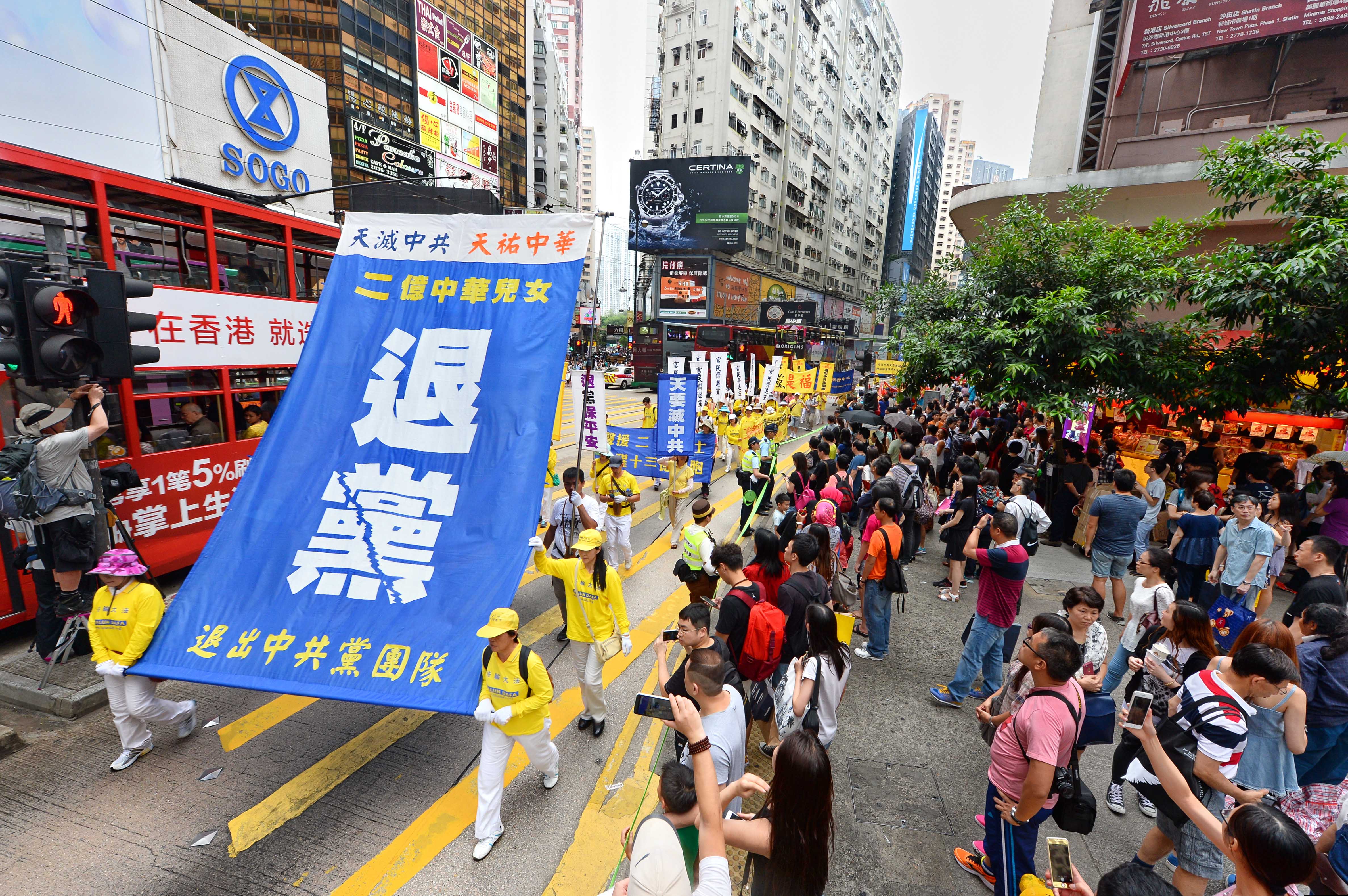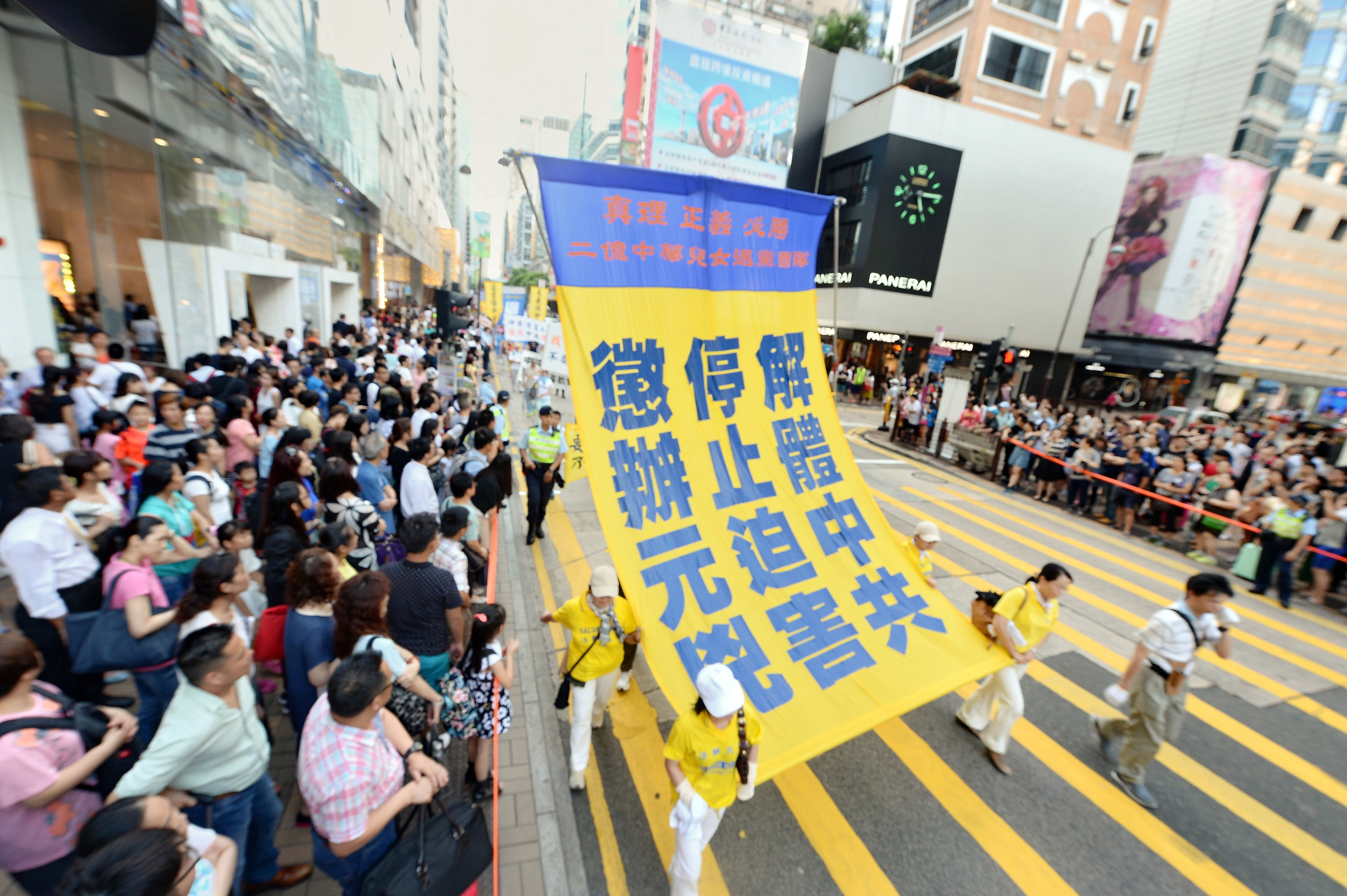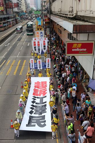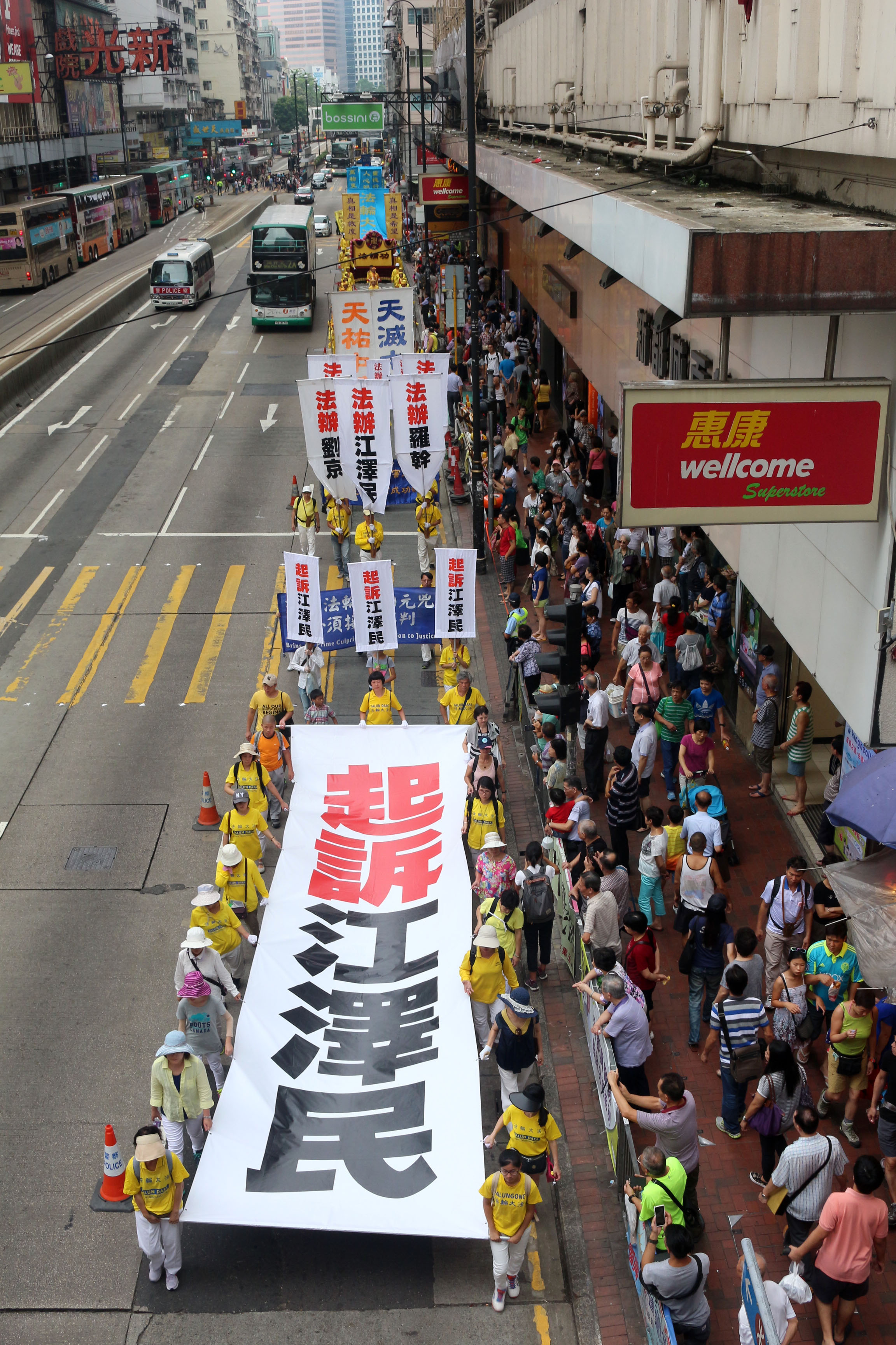 ![]() 图2-3:法轮功学员于二零一五年七月十九日,游行港岛区英皇道、轩尼诗道,途经闹市铜锣湾、湾仔、中环,最终到西环中联办,历时约四小时。 |