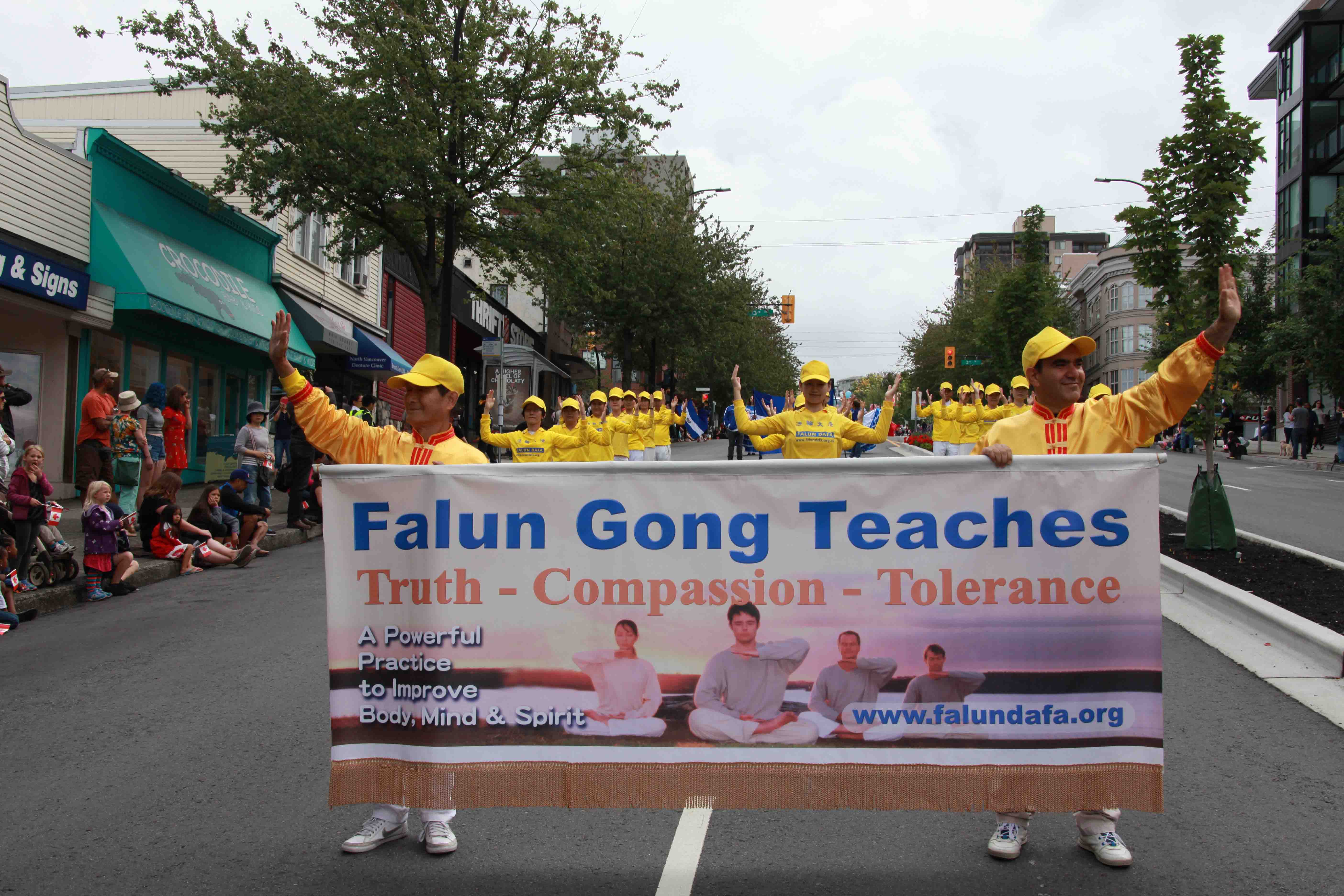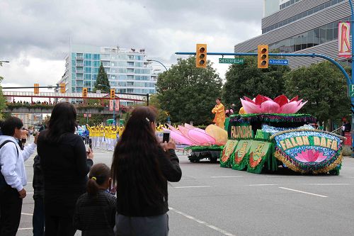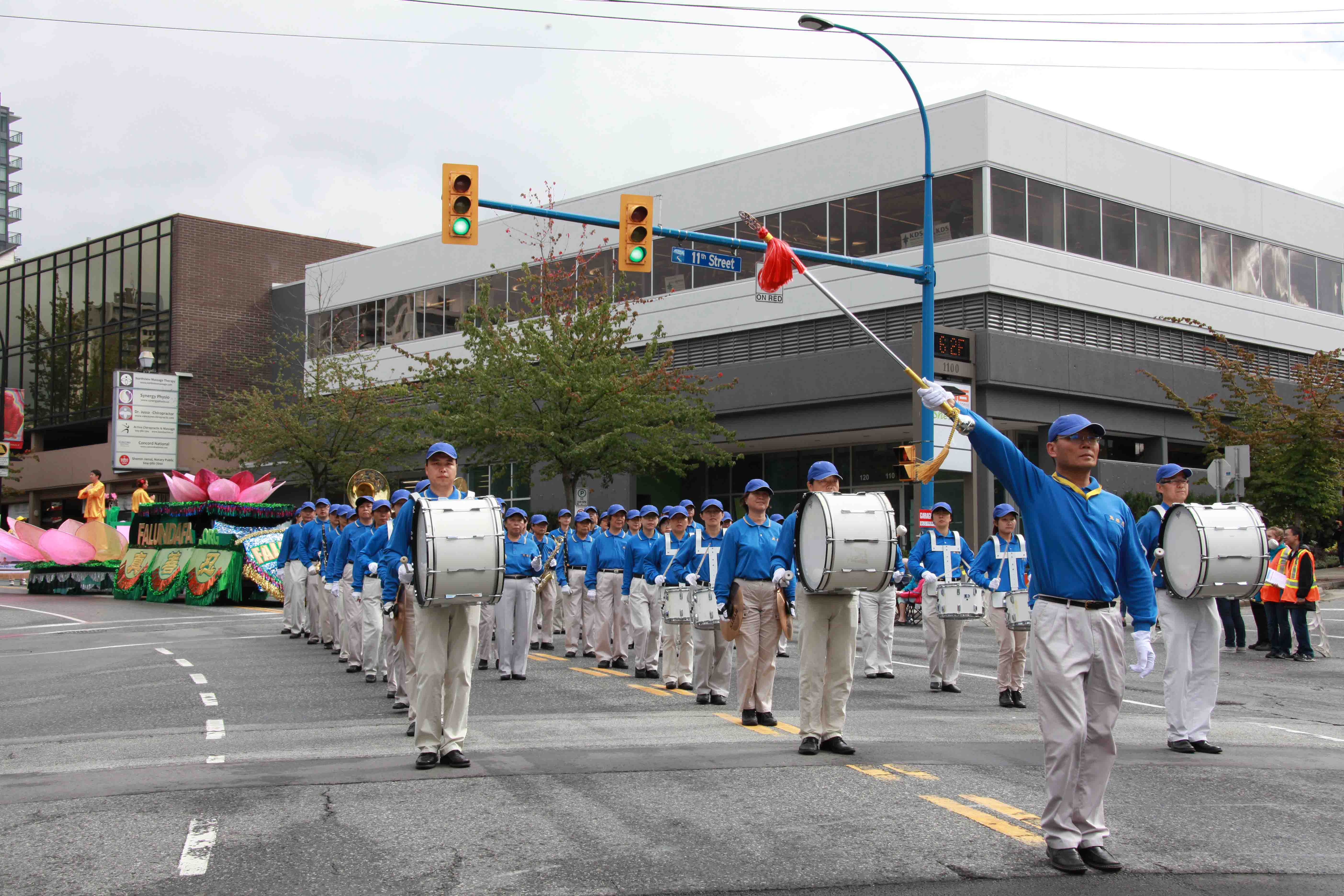北温哥华市(City of North Vancouver)位于温哥华市北部,与温哥华市中心隔海相望,有很多背山面海的豪宅,当地居民多为富裕居民。法轮大法学员的游行队伍包括,天国乐团,“真善忍”花车和法轮大法功法演示队,一路走来受到沿途市民热烈欢迎,很多民众纷纷拍摄法轮大法学员的游行队伍或与法轮大法学员的游行队伍合影留念。