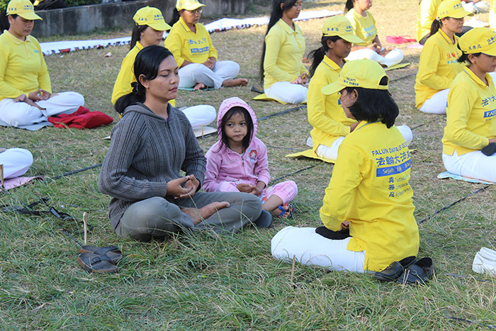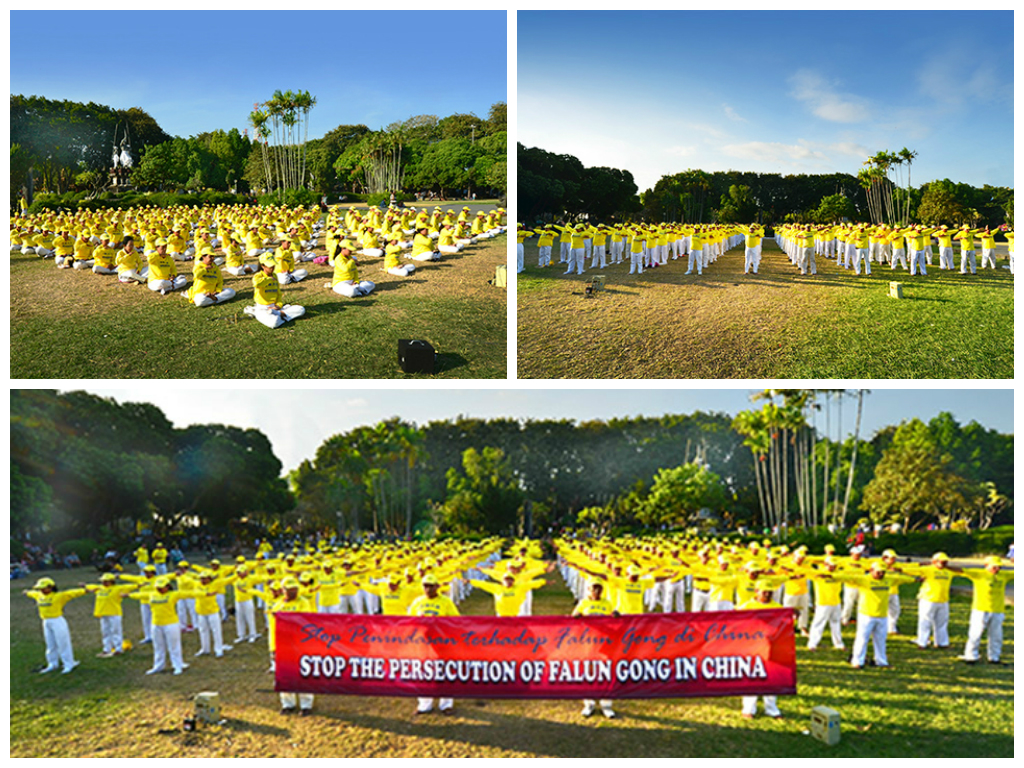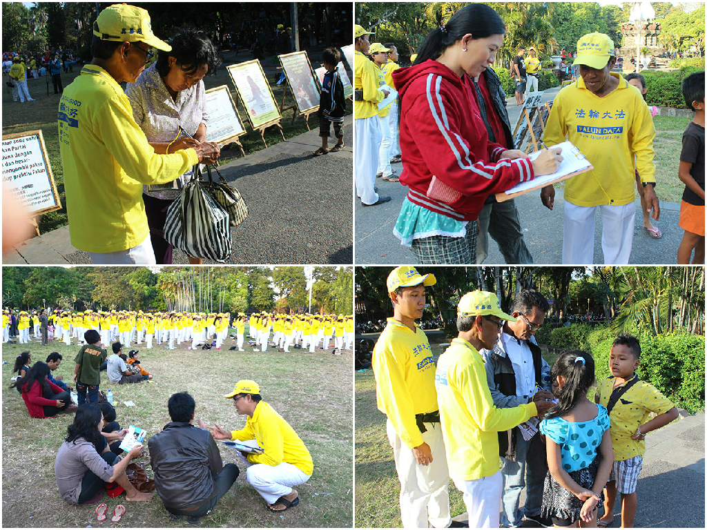 在I Gusti Ngurah Made Agung公园,丹巴萨学员集体炼功,向公园游人征签,支持中国民众控告江泽民迫害法轮功。很多游人都签上了名字,支持结束发生在中国的迫害,并把首犯江泽民绳之以法。