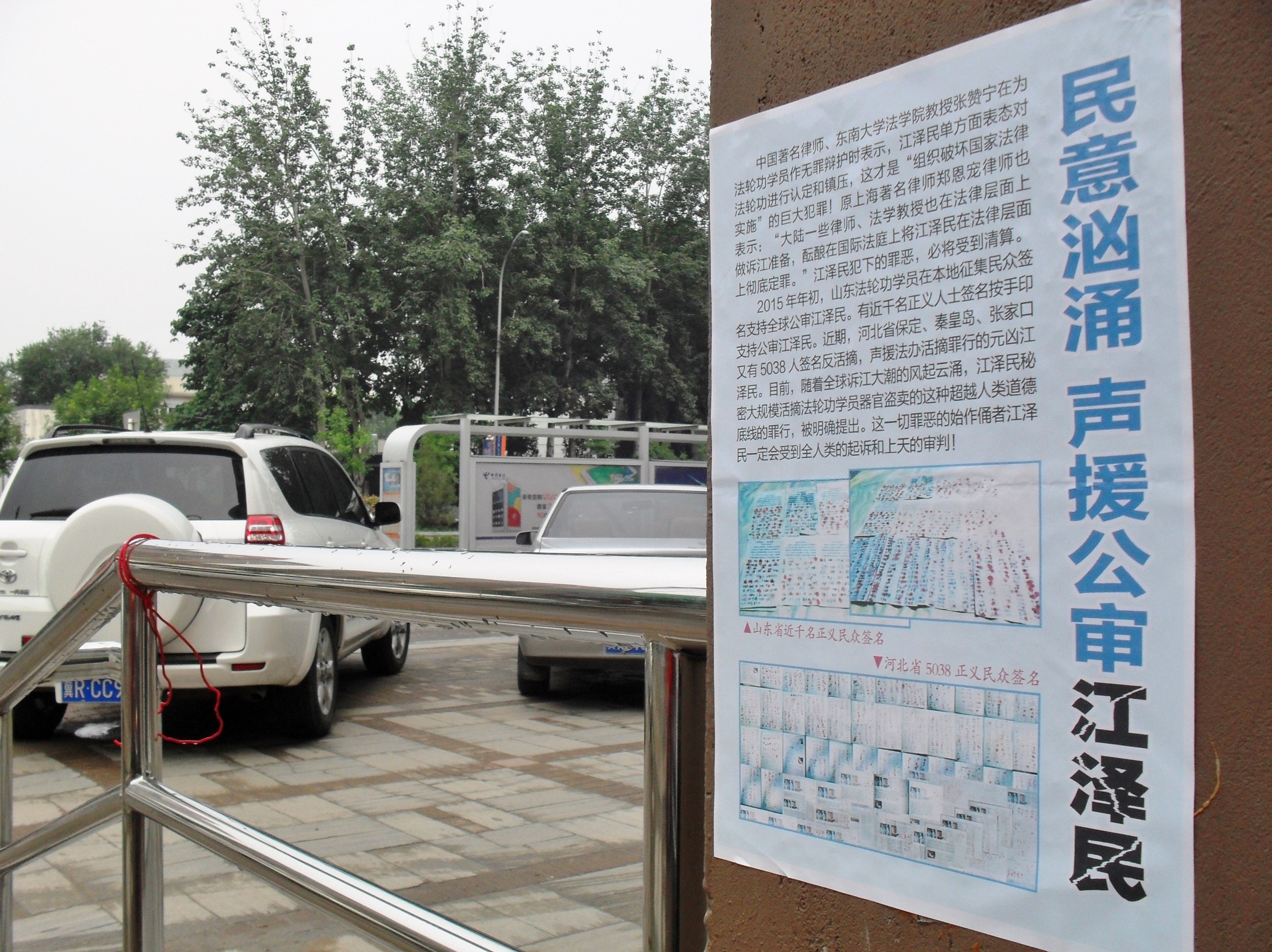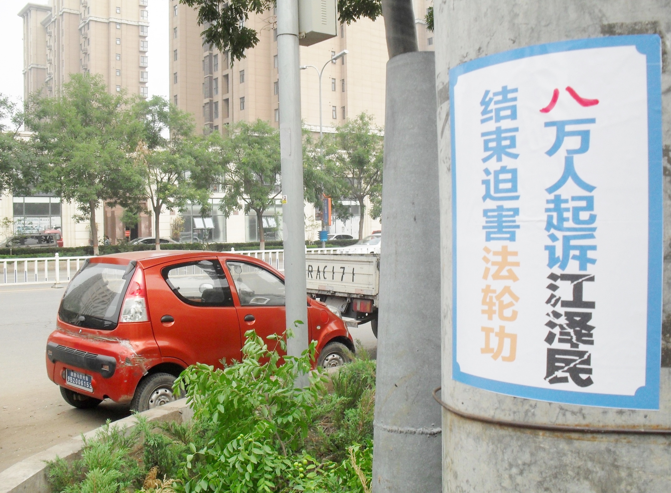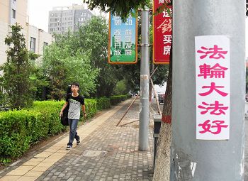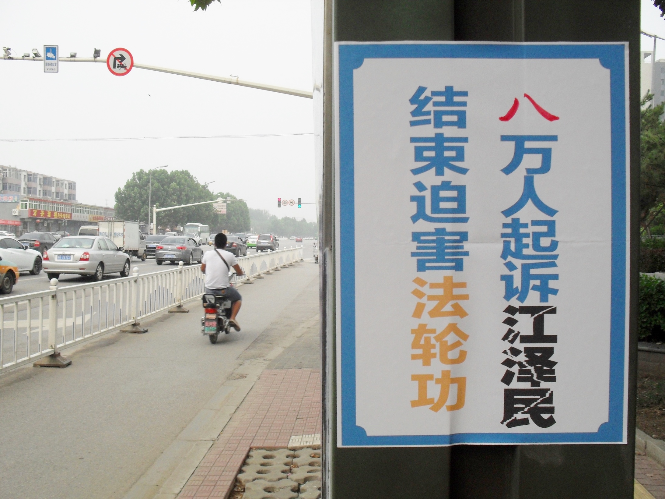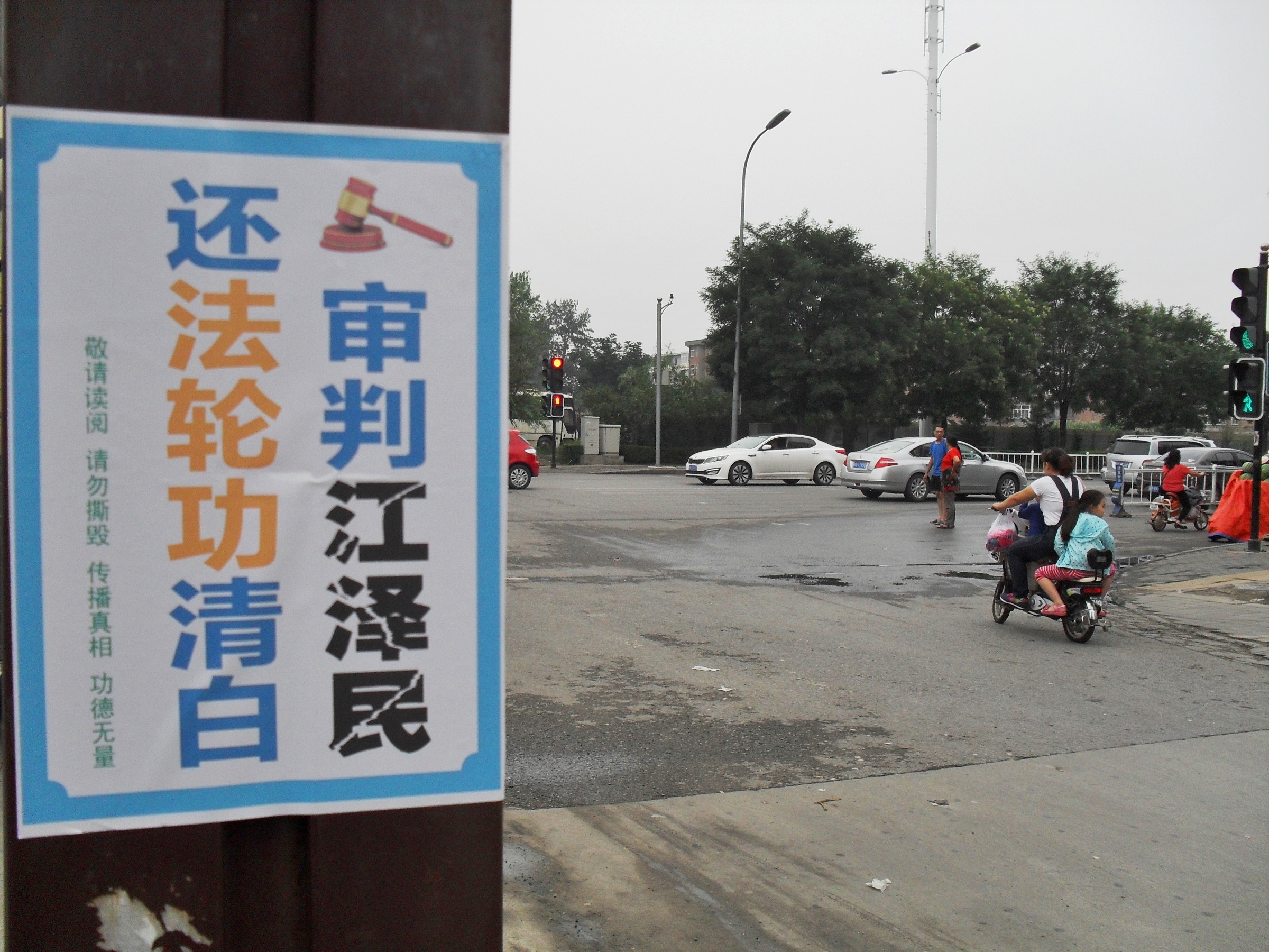 【明慧网二零一五年七月二十七日】二零一五年七月二十日,在河北省廊坊市的主要街道、十字路口、车站、停车场、公园、幼儿园、公路两旁等处,人们可以见到“全民起诉江泽民,停止迫害法轮功”、“起诉江泽民,还人间正道”、“停止迫害法轮功,把江泽民送上法庭”、“审判江泽民,还法轮功清白”、“道义法庭、人心法庭、人间法庭”、“起诉江泽民,上顺天意下应民意”、“起诉江泽民,结束迫害”、“江泽民在30多国被起诉”、“历史的审判已开始”、“民意汹涌声援公审江泽民”、“海内外纷纷控告江泽民掀起诉江潮”“法轮大法好”、“真善忍好”、“世界需要真善忍”、“天灭中共退