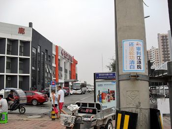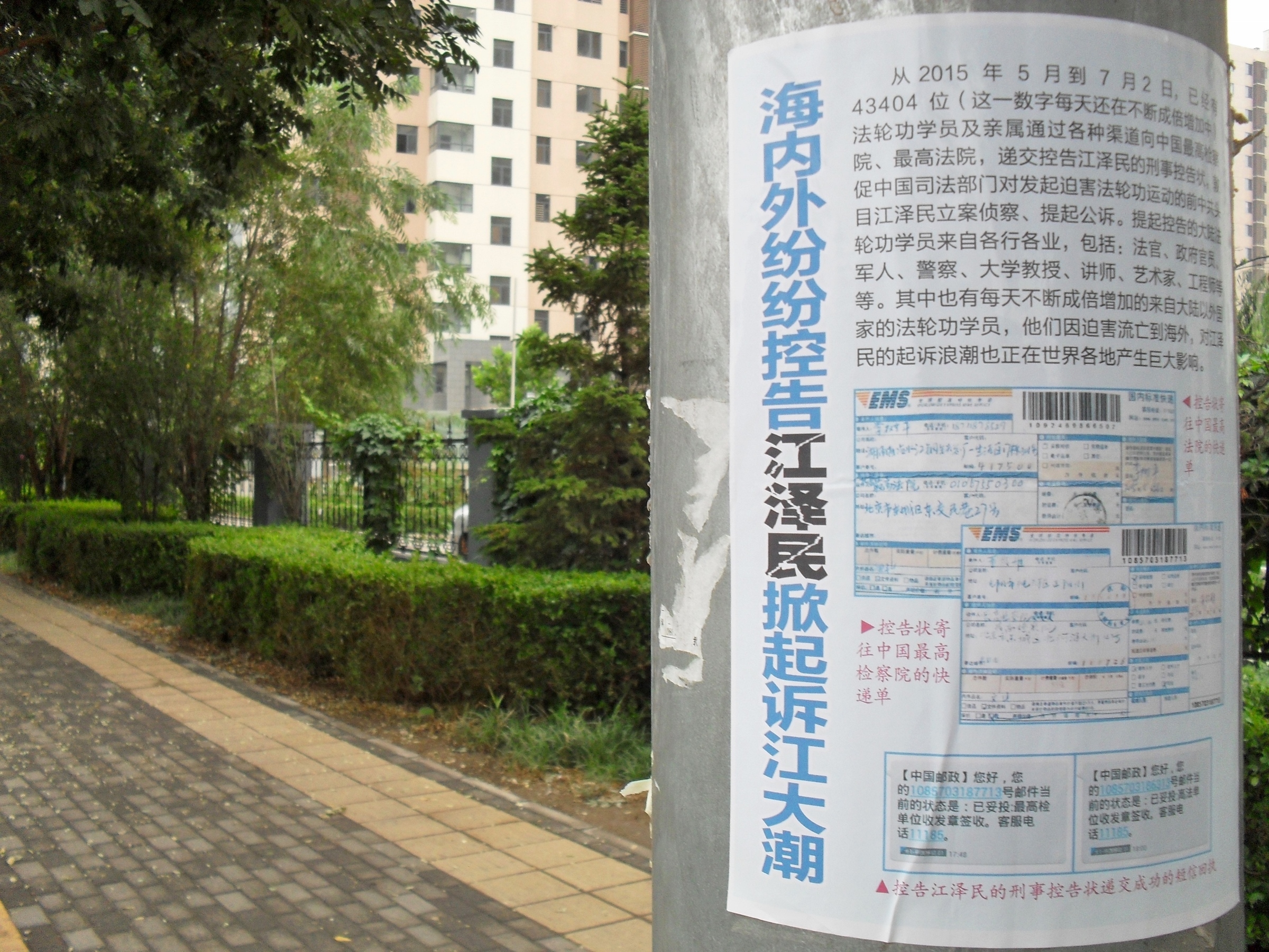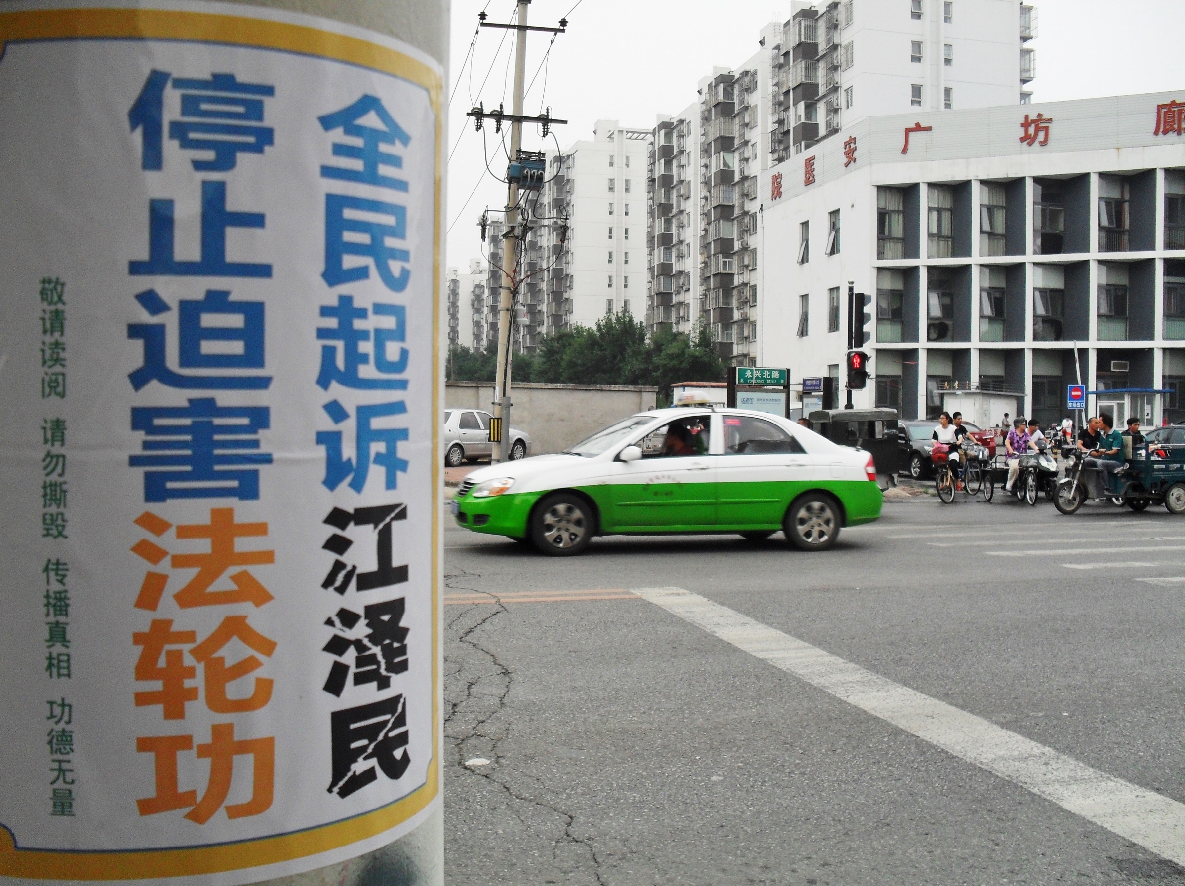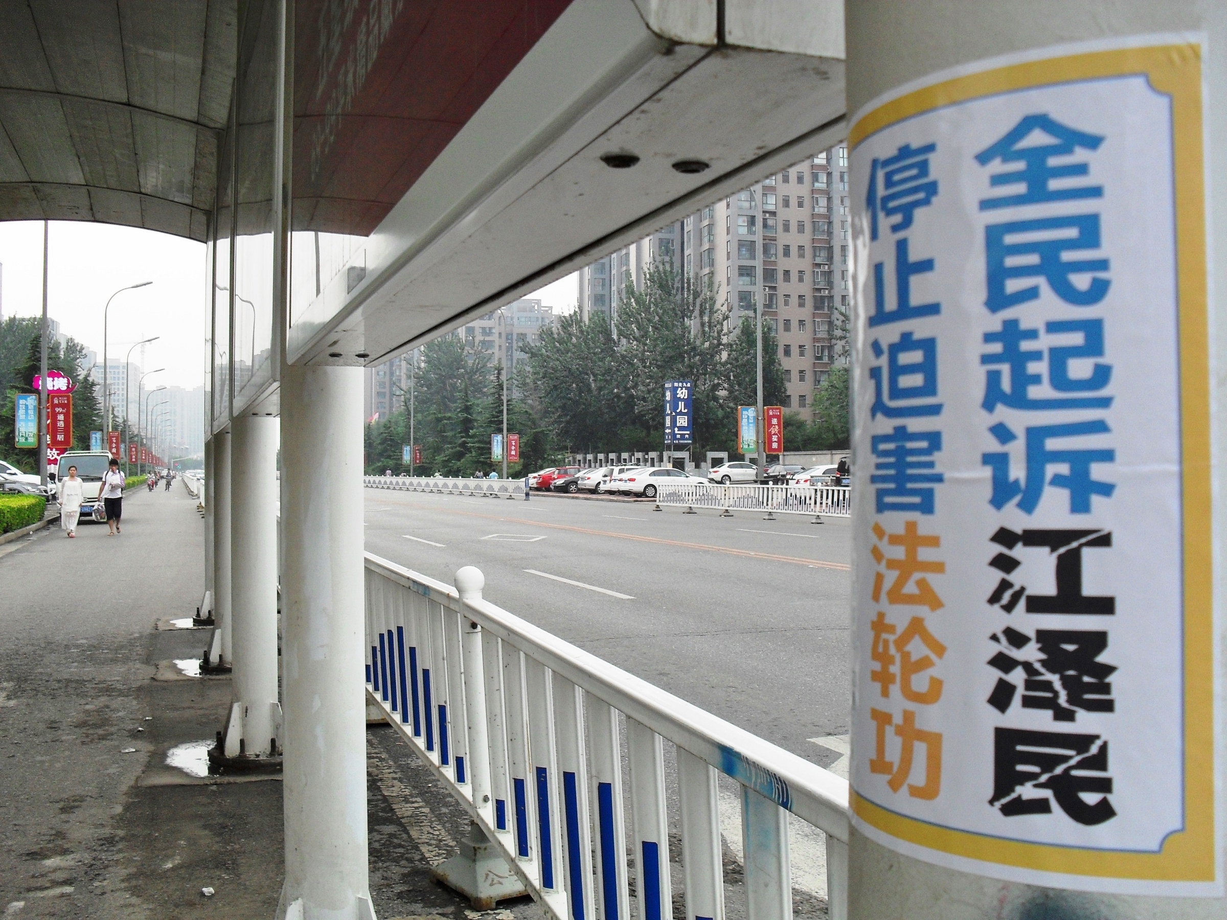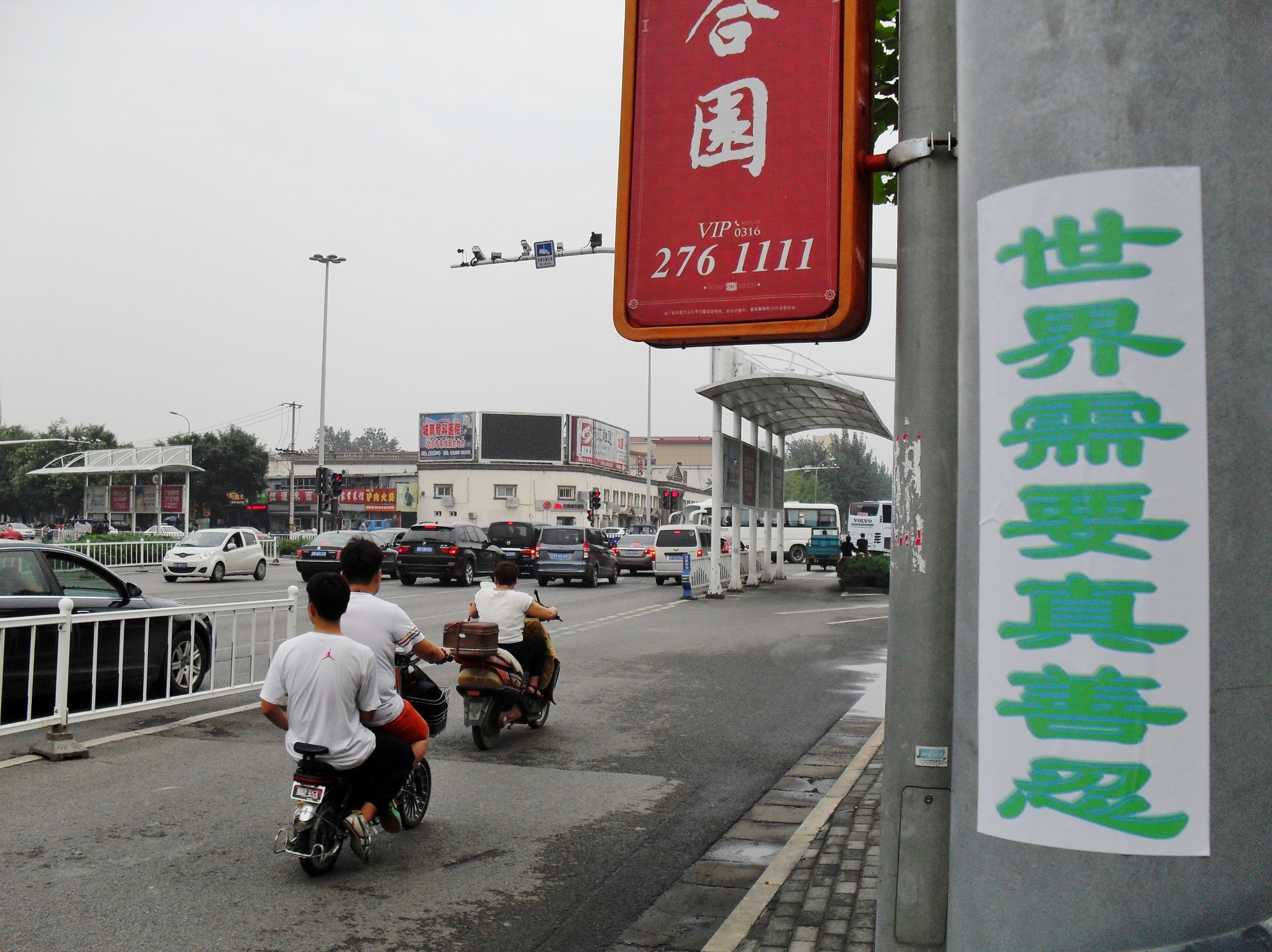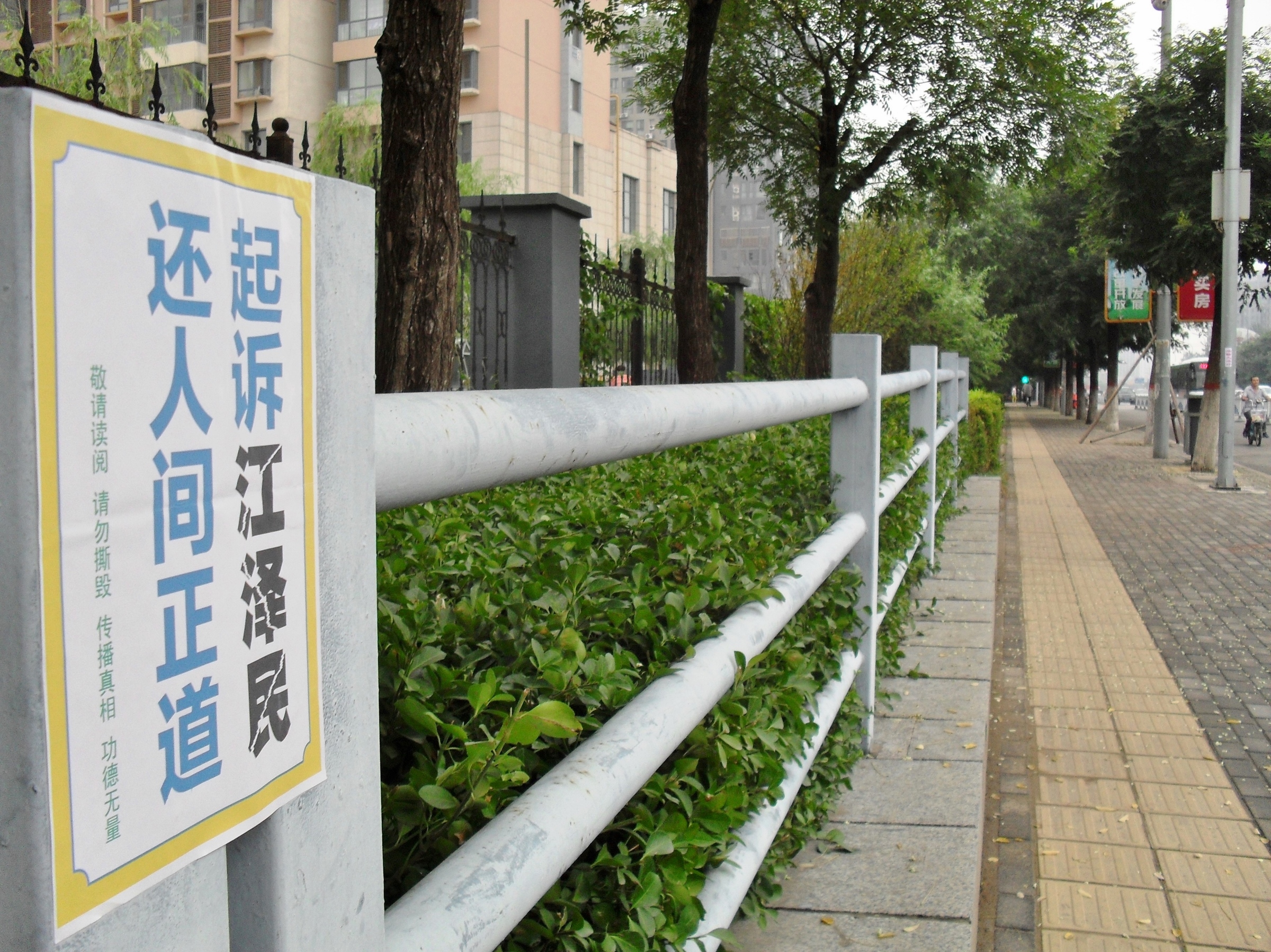 【明慧网二零一五年七月二十七日】二零一五年七月二十日,在河北省廊坊市的主要街道、十字路口、车站、停车场、公园、幼儿园、公路两旁等处,人们可以见到“全民起诉江泽民,停止迫害法轮功”、“起诉江泽民,还人间正道”、“停止迫害法轮功,把江泽民送上法庭”、“审判江泽民,还法轮功清白”、“道义法庭、人心法庭、人间法庭”、“起诉江泽民,上顺天意下应民意”、“起诉江泽民,结束迫害”、“江泽民在30多国被起诉”、“历史的审判已开始”、“民意汹涌声援公审江泽民”、“海内外纷纷控告江泽民掀起诉江潮”“法轮大法好”、“真善忍好”、“世界需要真善忍”、“天灭中共退