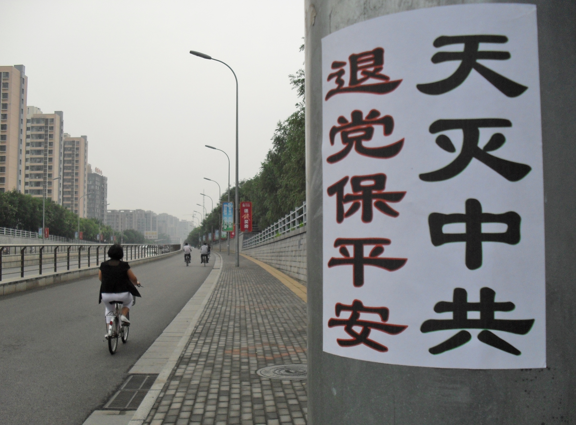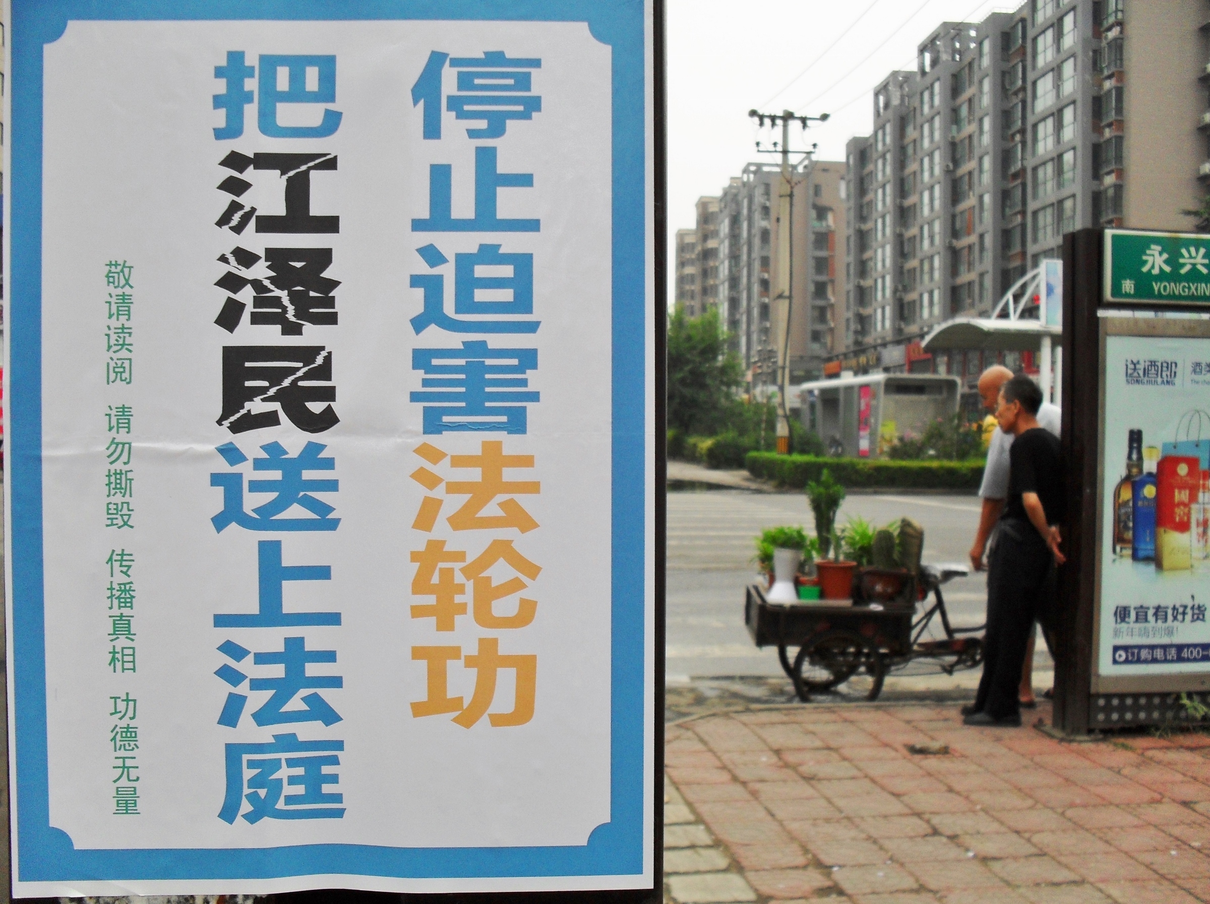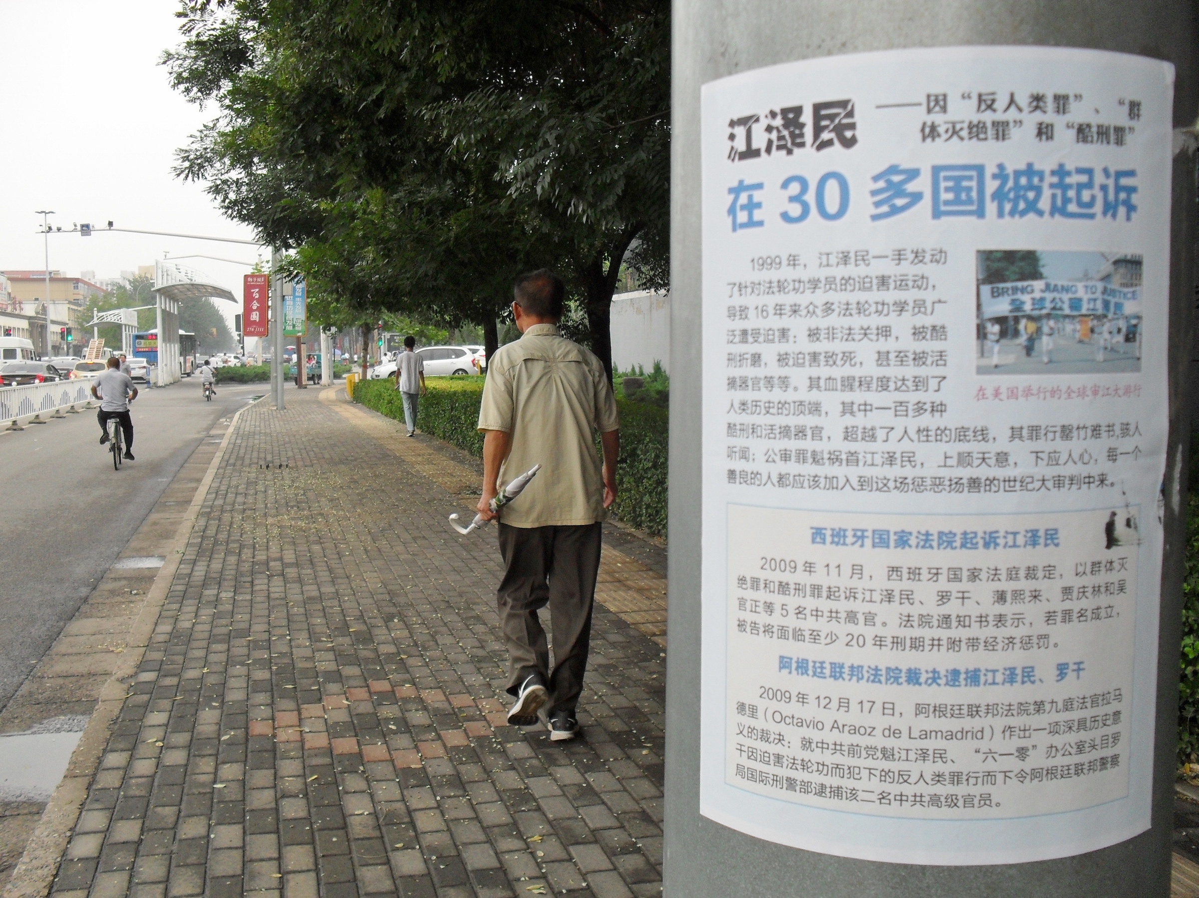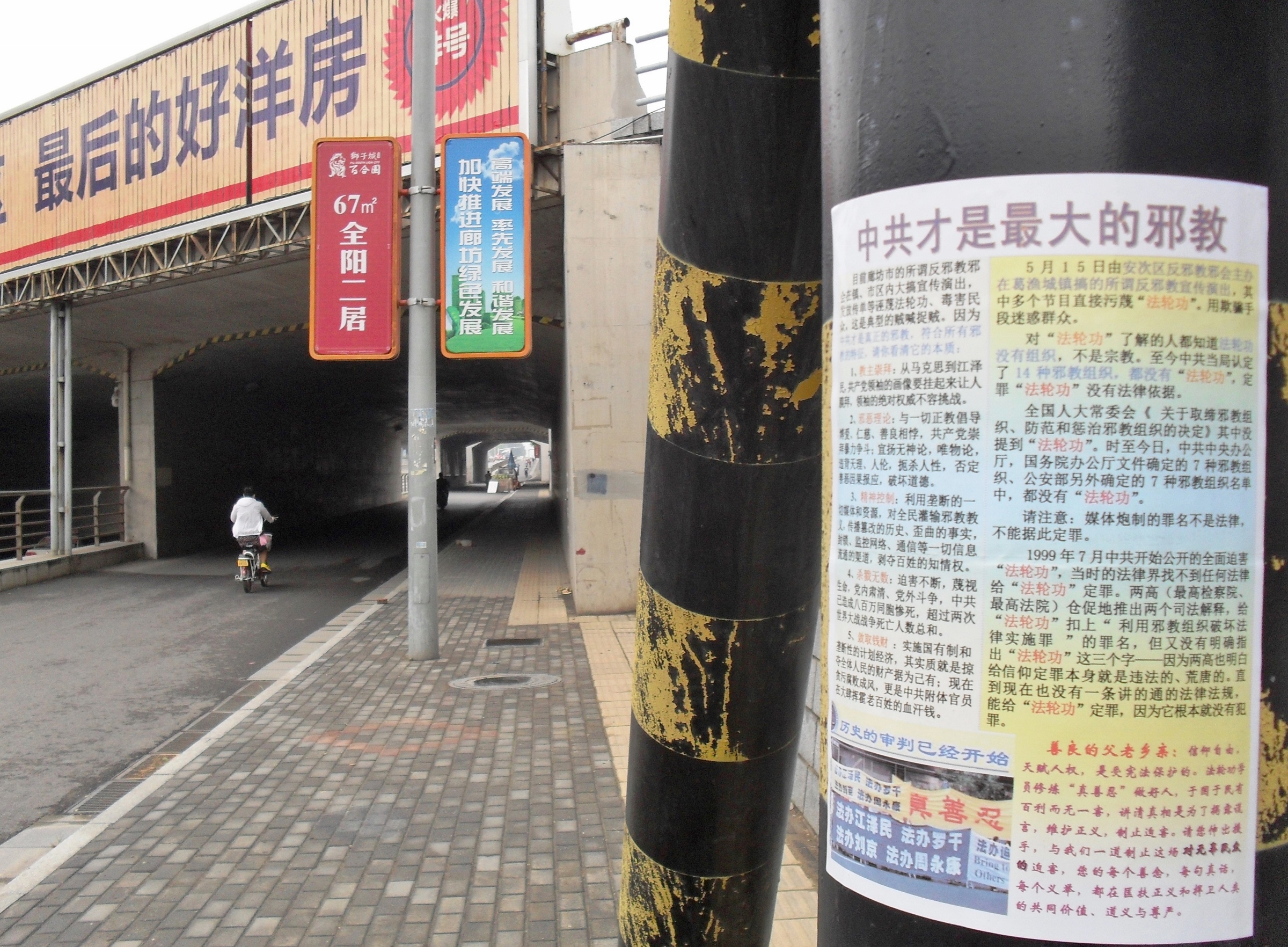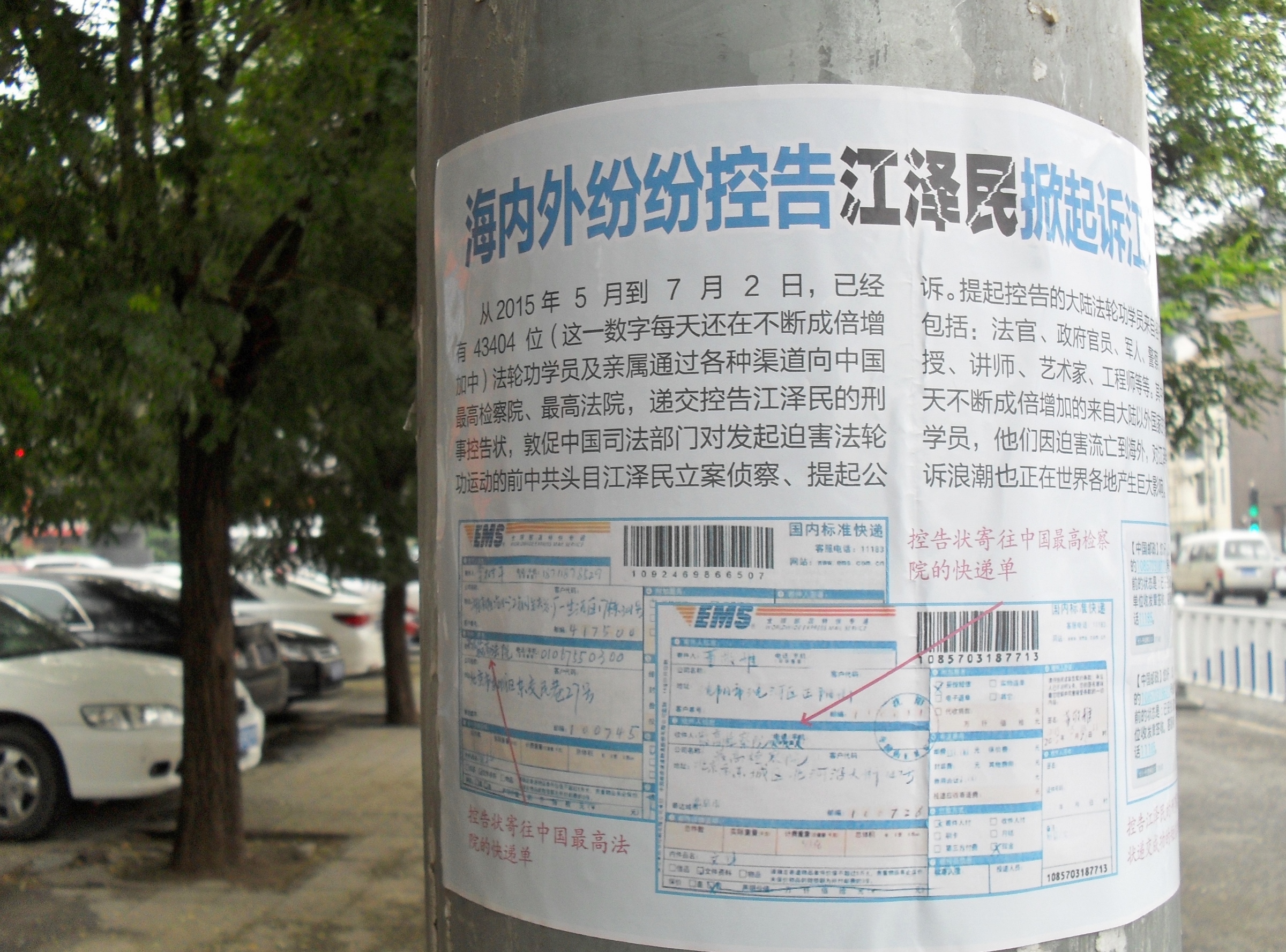 【明慧网二零一五年七月二十七日】二零一五年七月二十日,在河北省廊坊市的主要街道、十字路口、车站、停车场、公园、幼儿园、公路两旁等处,人们可以见到“全民起诉江泽民,停止迫害法轮功”、“起诉江泽民,还人间正道”、“停止迫害法轮功,把江泽民送上法庭”、“审判江泽民,还法轮功清白”、“道义法庭、人心法庭、人间法庭”、“起诉江泽民,上顺天意下应民意”、“起诉江泽民,结束迫害”、“江泽民在30多国被起诉”、“历史的审判已开始”、“民意汹涌声援公审江泽民”、“海内外纷纷控告江泽民掀起诉江潮”“法轮大法好”、“真善忍好”、“世界需要真善忍”、“天灭中共退
