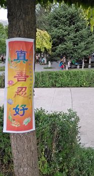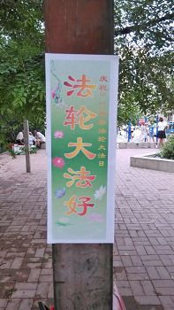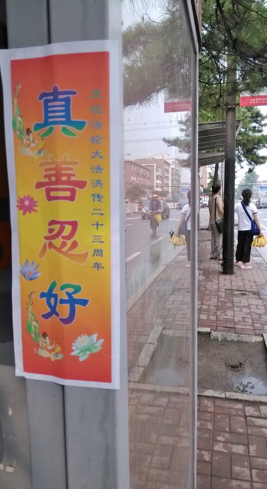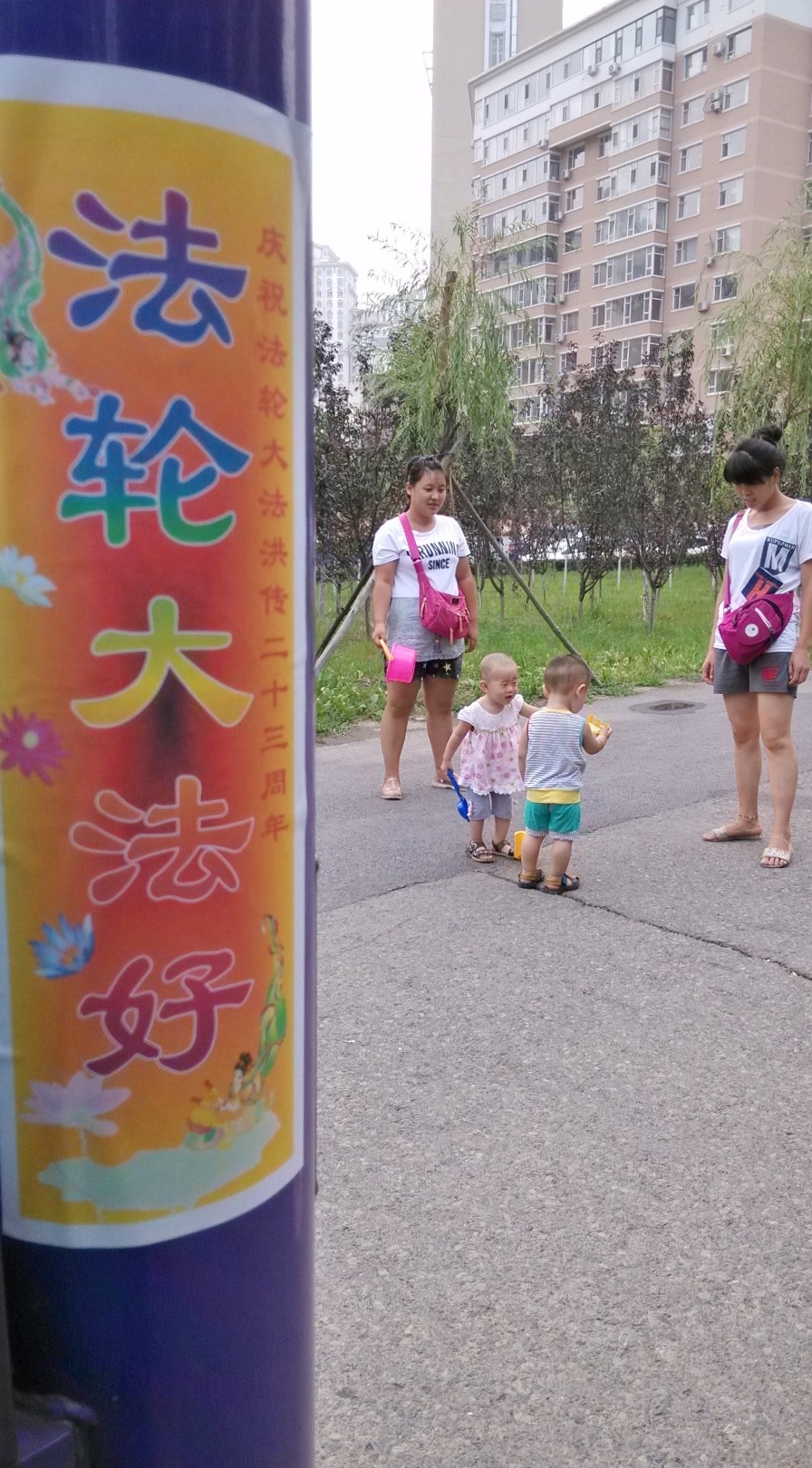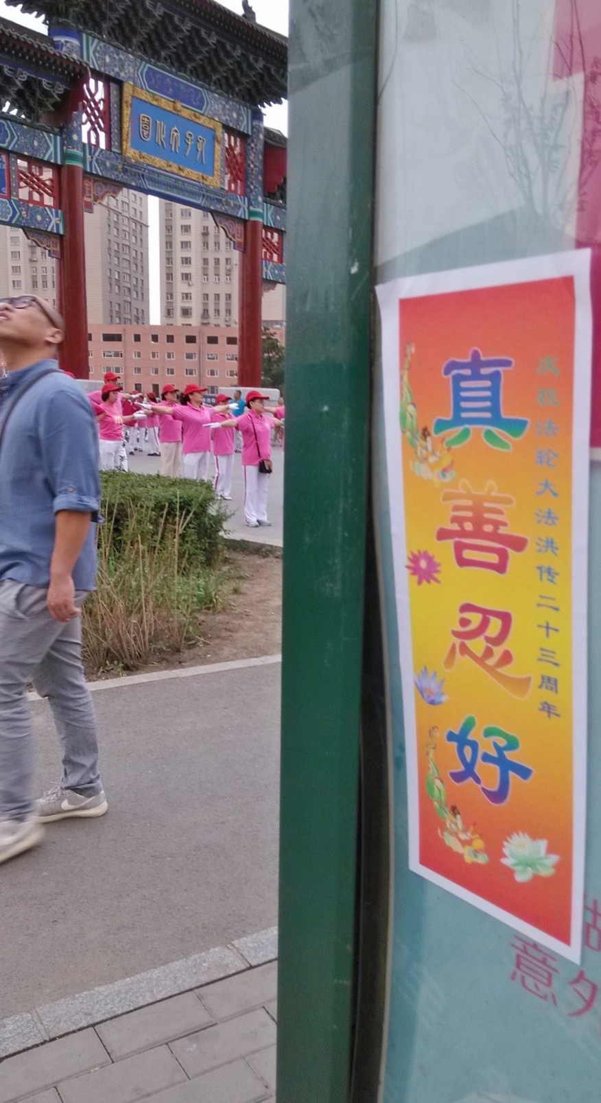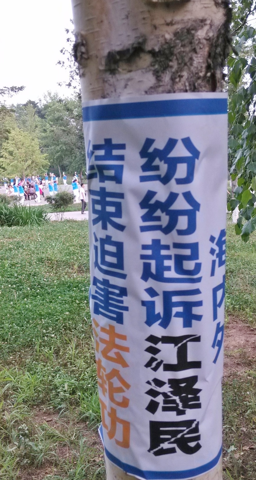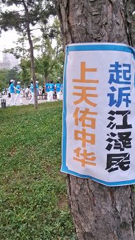 【明慧网二零一五年七月二十七日】二零一五年七月中,在长春的傍晚,散步的、乘凉的、跳广场舞的人们随处可见真相标语,标语上书写:“法轮大法好”、“真善忍好”,“起诉江泽民,匡扶正义,惩恶扬善”,“将罪魁祸首江泽民绳之以法,彰显天理公道”,“全国起诉江泽民,尽显天意民心”,“海内外纷纷起诉江泽民,结束
