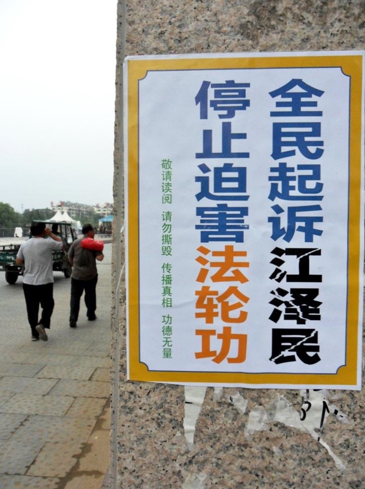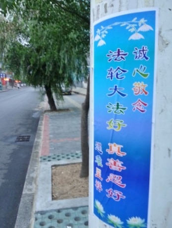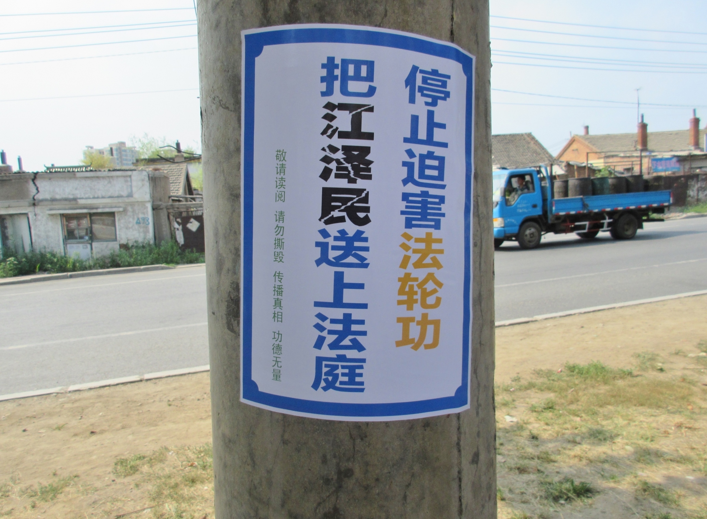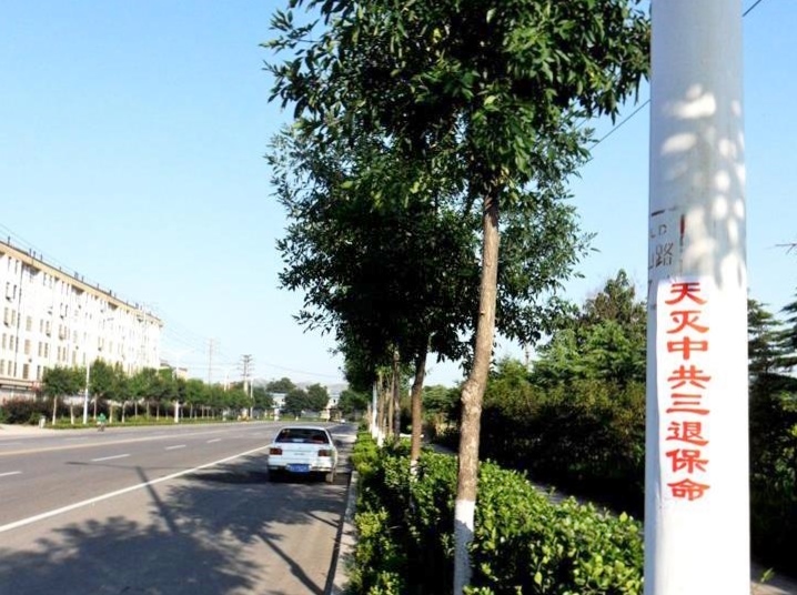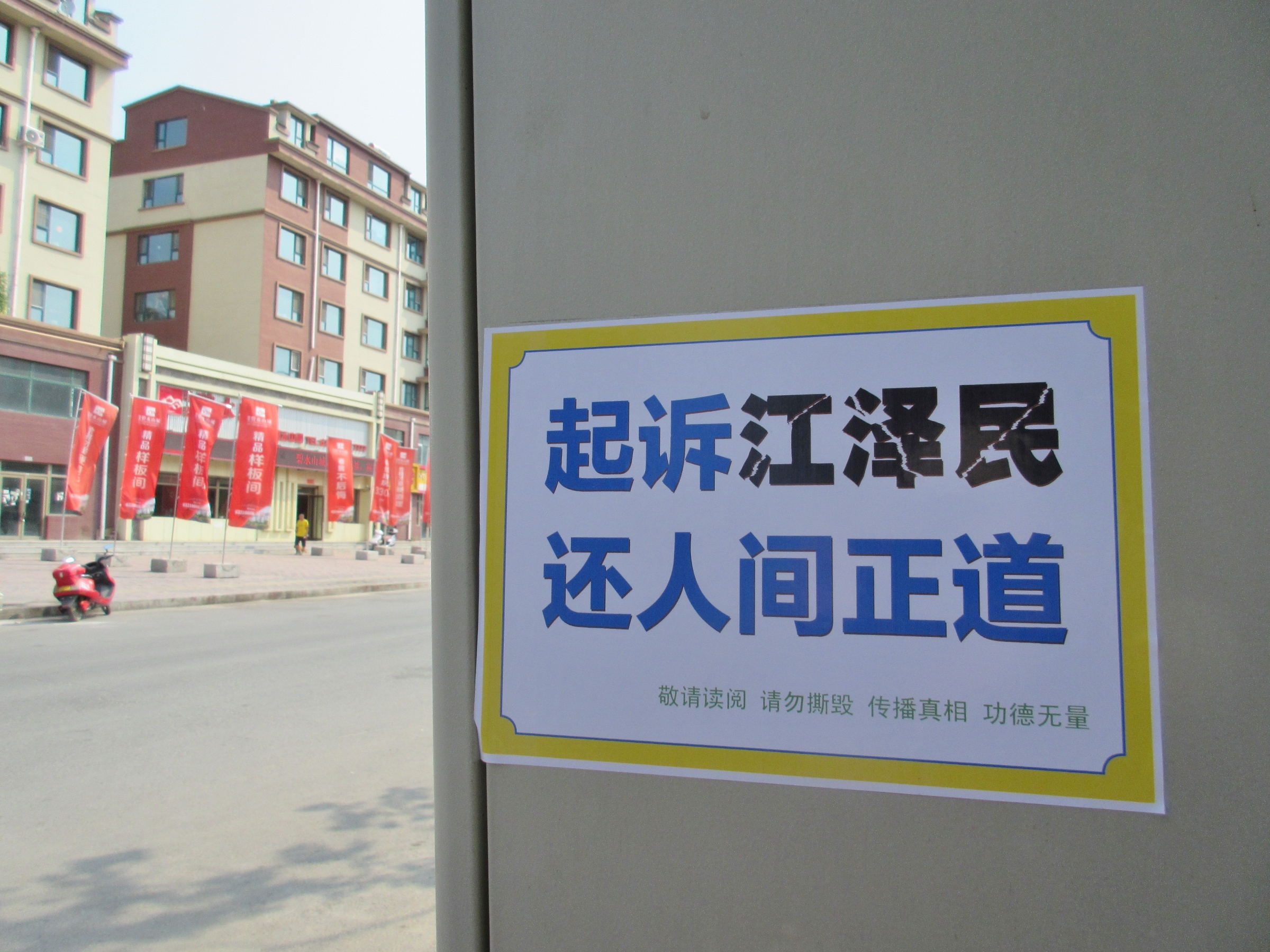 二零一五年七二零的前夕,在山东不少城乡地区随处可见“全民起诉江泽民 停止迫害法轮功”、“起诉江泽民 还人间正道”、“审判江泽民 还法轮功清白”等“诉江”标语,顺天意,应民心。“天灭中共……”、“中共是真正的邪教”。“法轮大法好 真善忍好”等真相贴,法轮功学员十六年反迫害,坚持不懈,使世人明真相,得救度,免遭淘汰。