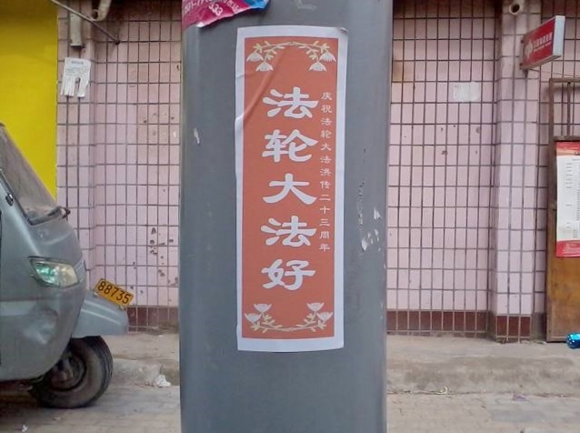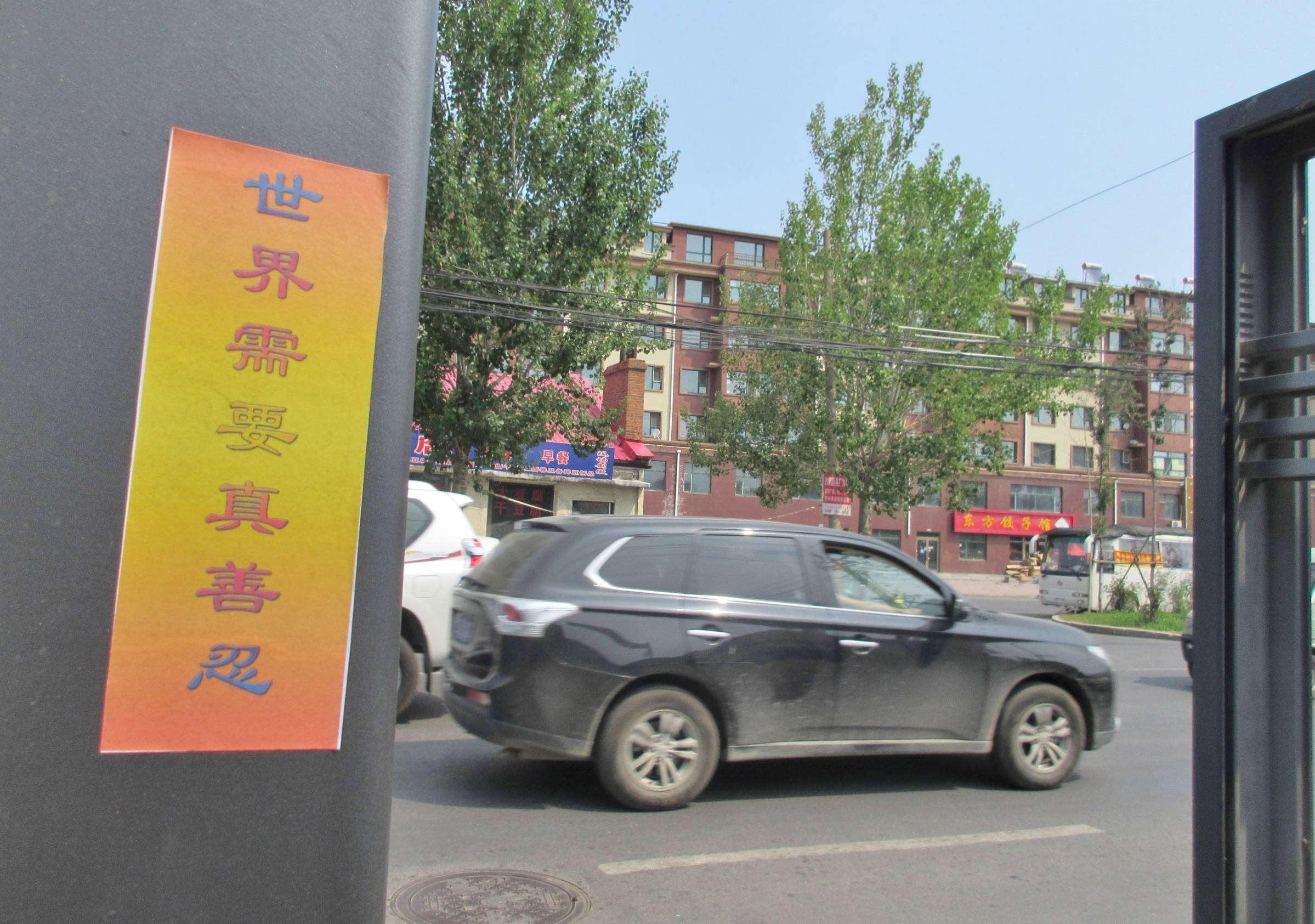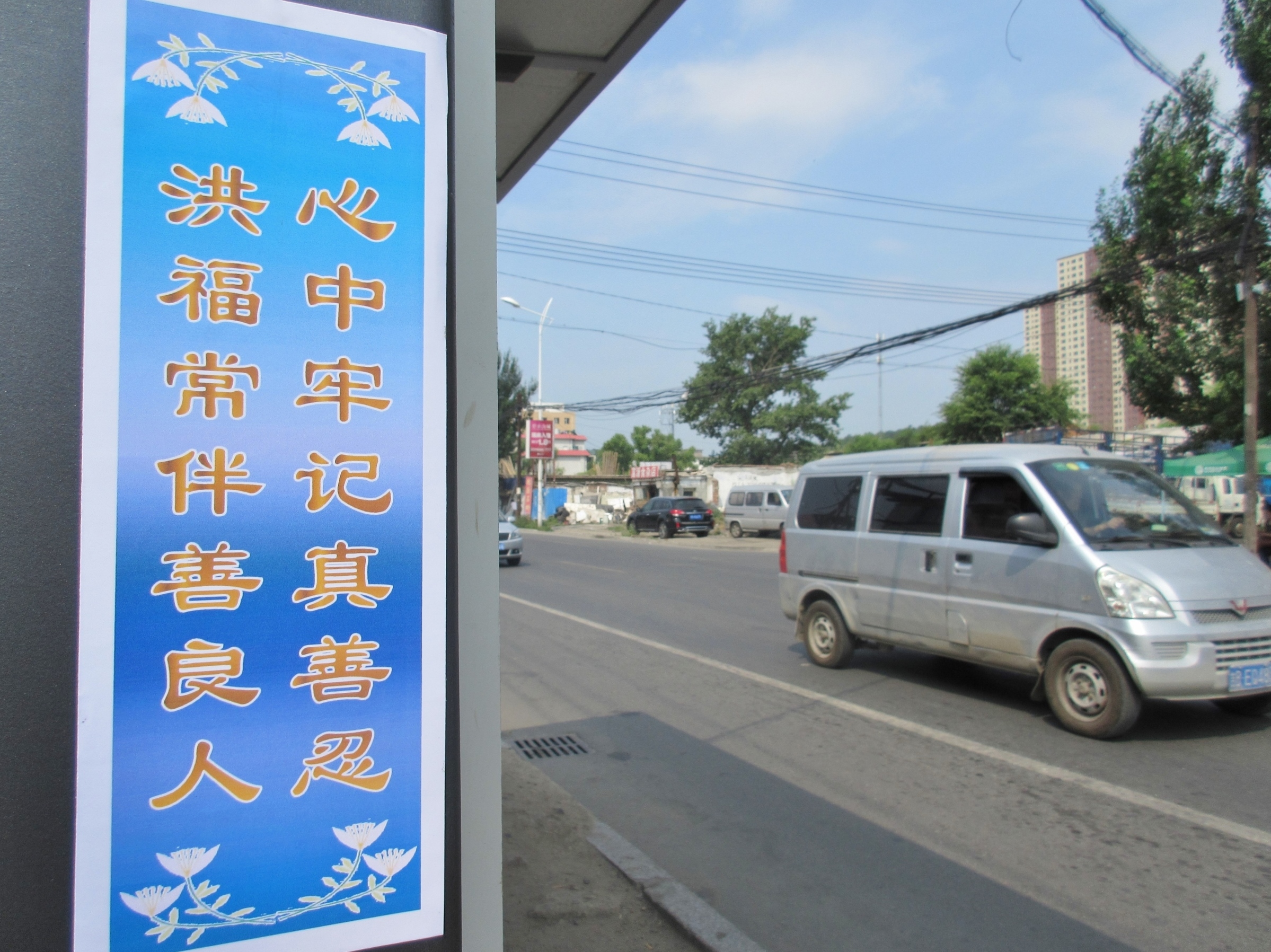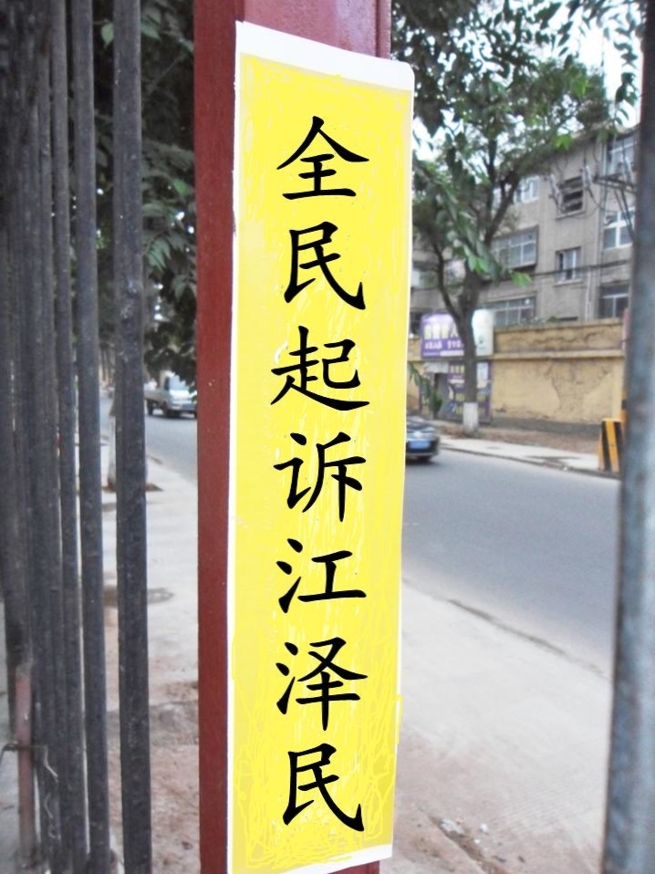 二零一五年七二零的前夕,在山东不少城乡地区随处可见“全民起诉江泽民 停止迫害法轮功”、“起诉江泽民 还人间正道”、“审判江泽民 还法轮功清白”等“诉江”标语,顺天意,应民心。“天灭中共……”、“中共是真正的邪教”。“法轮大法好 真善忍好”等真相贴,法轮功学员十六年反迫害,坚持不懈,使世人明真相,得救度,免遭淘汰。