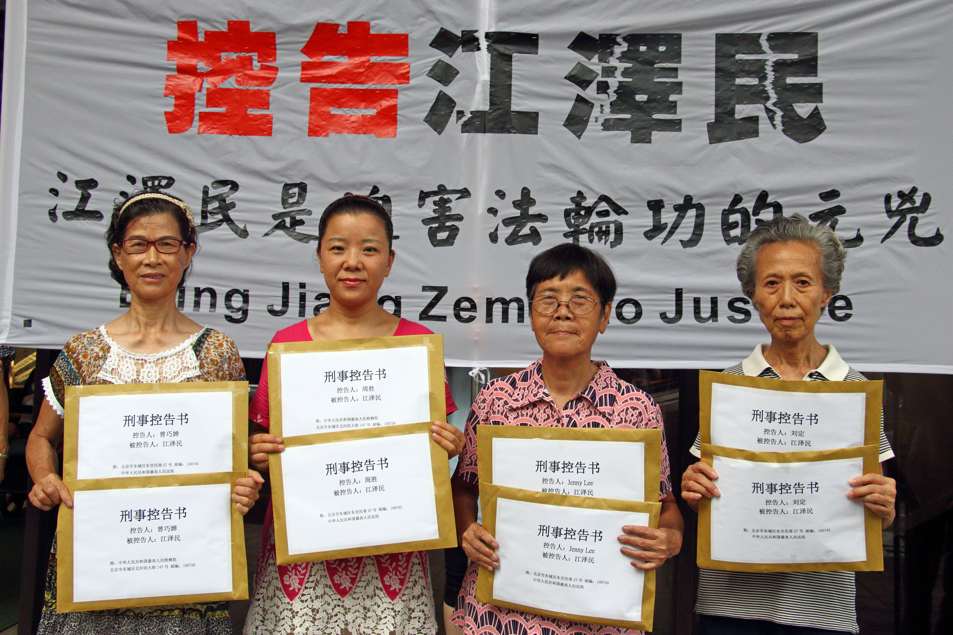 ![]() 图5. 廖蕊兰(右二)控告江泽民反人类罪、酷刑罪及群体灭绝罪。 |