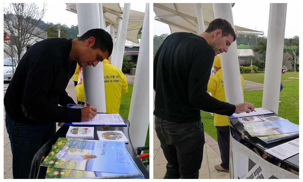 艾伦(Alan)先生在征签表上签名后说:签名很重要,但如果能够让签名的人同时也写信给他们选区的议员,让政府官员感受到社会的关注和压力,政府就会重视这件事情,并知道选民对他们的要求是什么。艾伦还建议把活摘器官和法轮功受迫害的信息提供给澳洲主流媒体,让媒体多报道。他说:这样就会有更多的澳洲人了解事实,就会有更多的人来支持(制止这罪恶)。