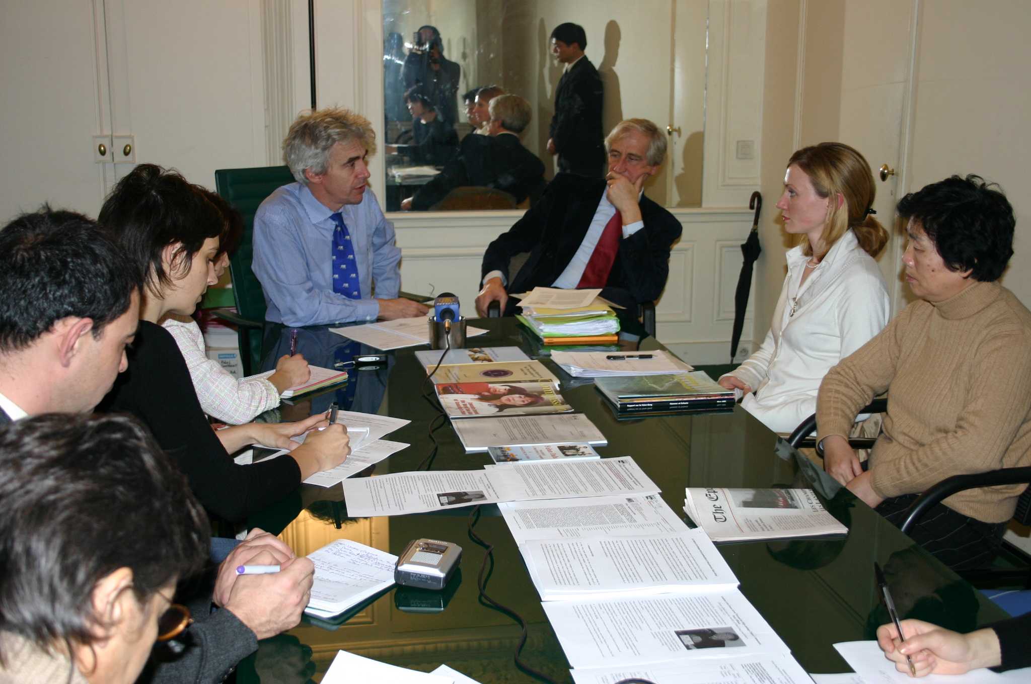 ![]() 2004年12月16日下午5点,法国法轮大法协会与法国大律师William Bourdon(后左)和比利时大律师 Georges-Henri Beauthier(后右)在William Bourdon在巴黎的律师事务所召开记者会,介绍法国预审法官要求中国有关当局配合调查李岚清和孙家正在迫害法轮功当中所犯罪行。多家大媒体到场采访。 |
