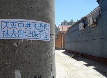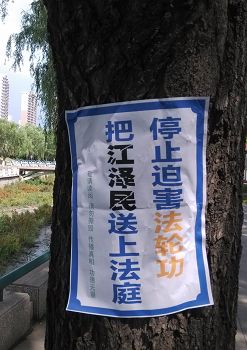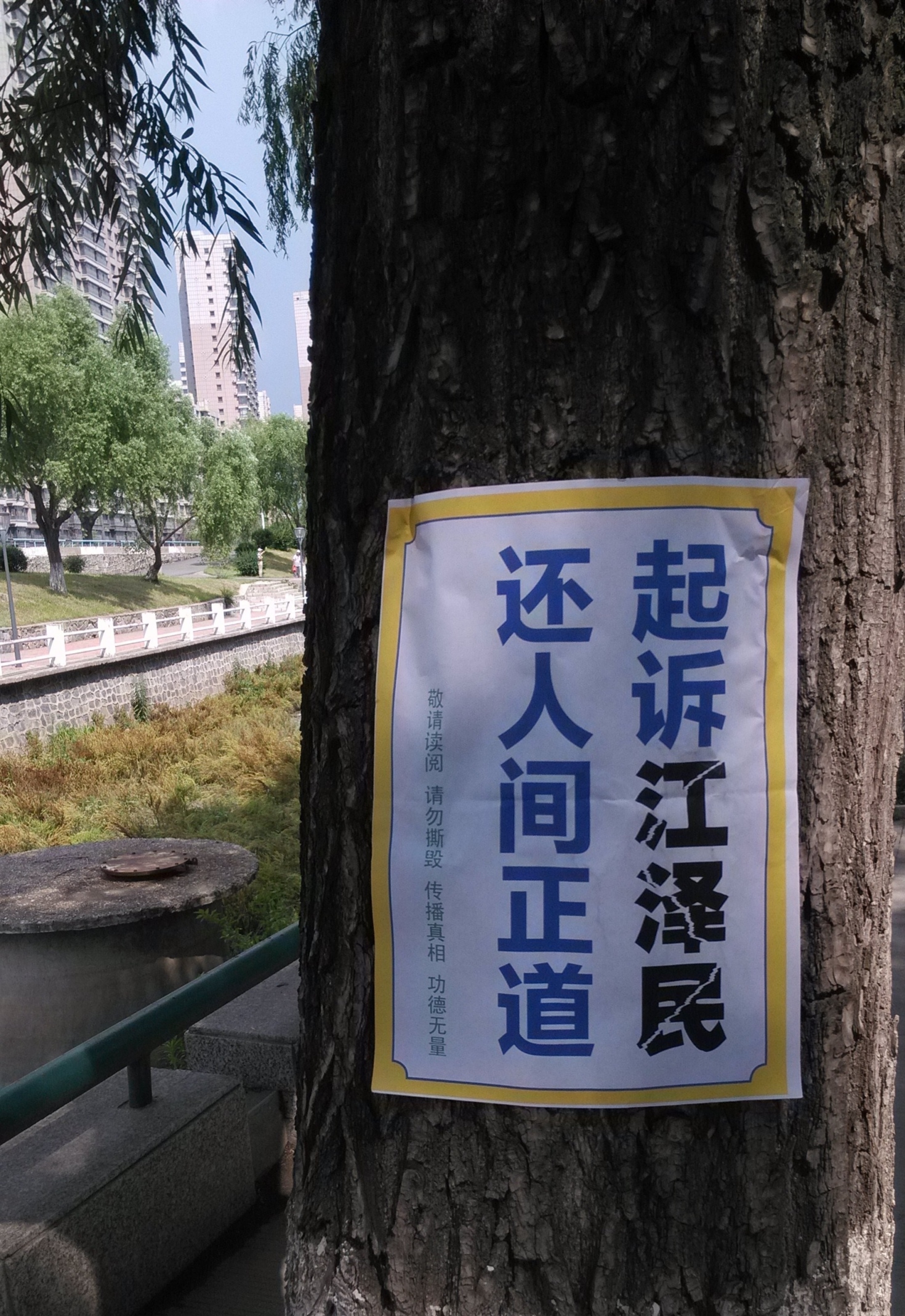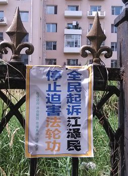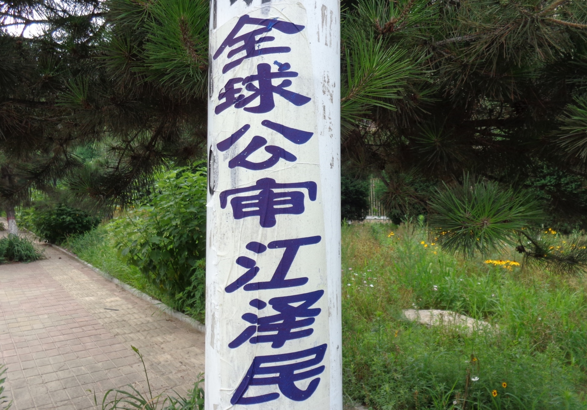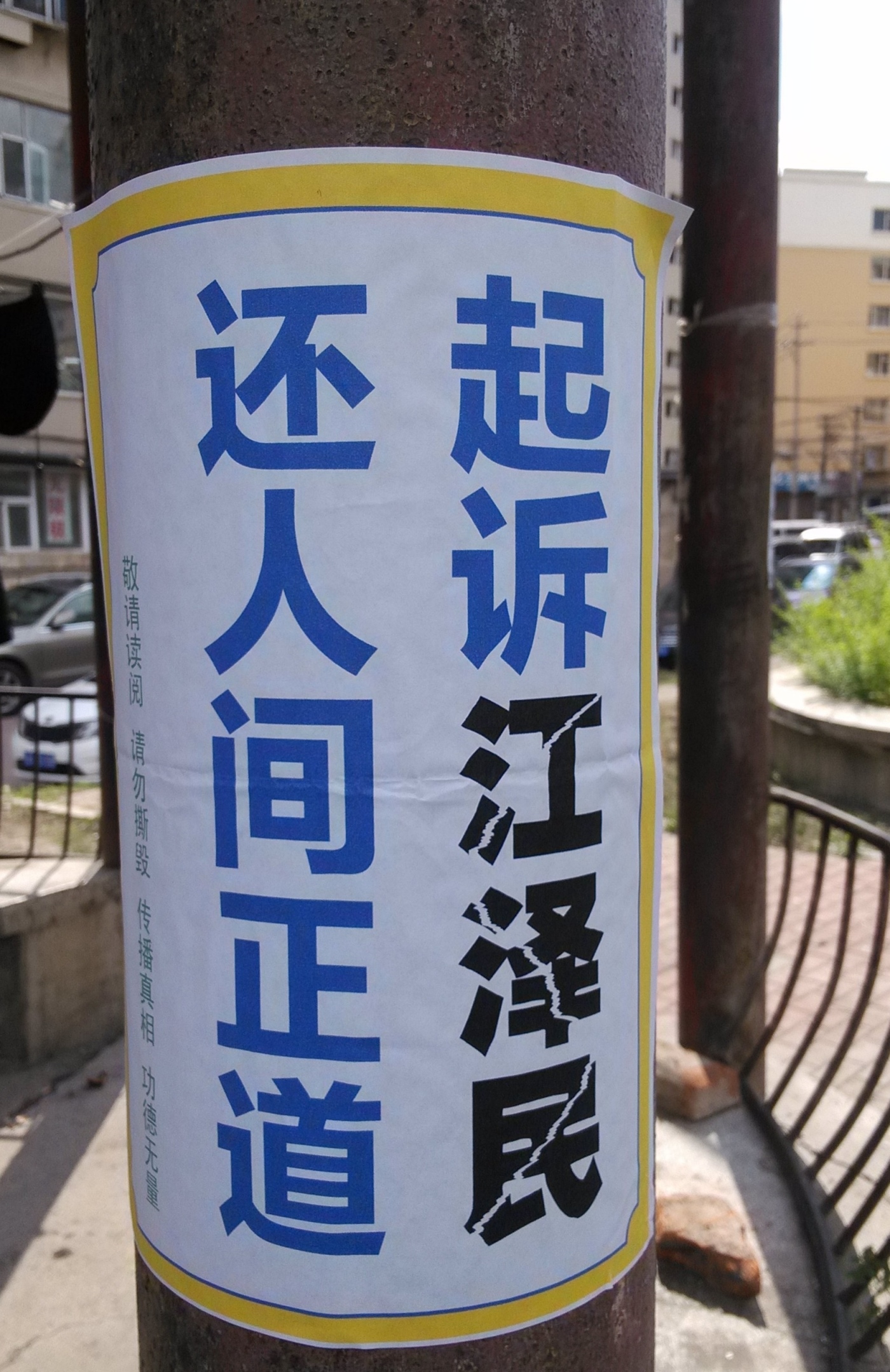 河北省秦皇岛地区在主要街道和住宅区出现“全国起诉江泽民”、“全球公审江泽民”的标语。