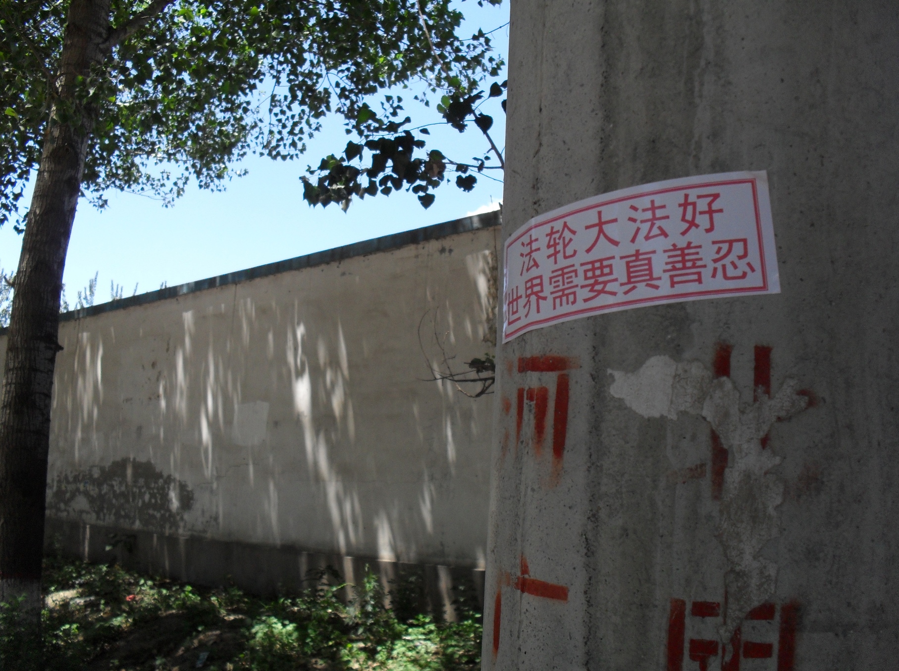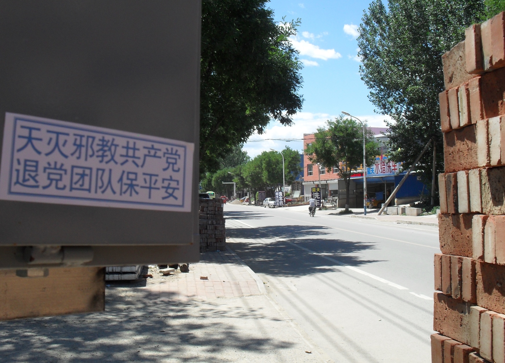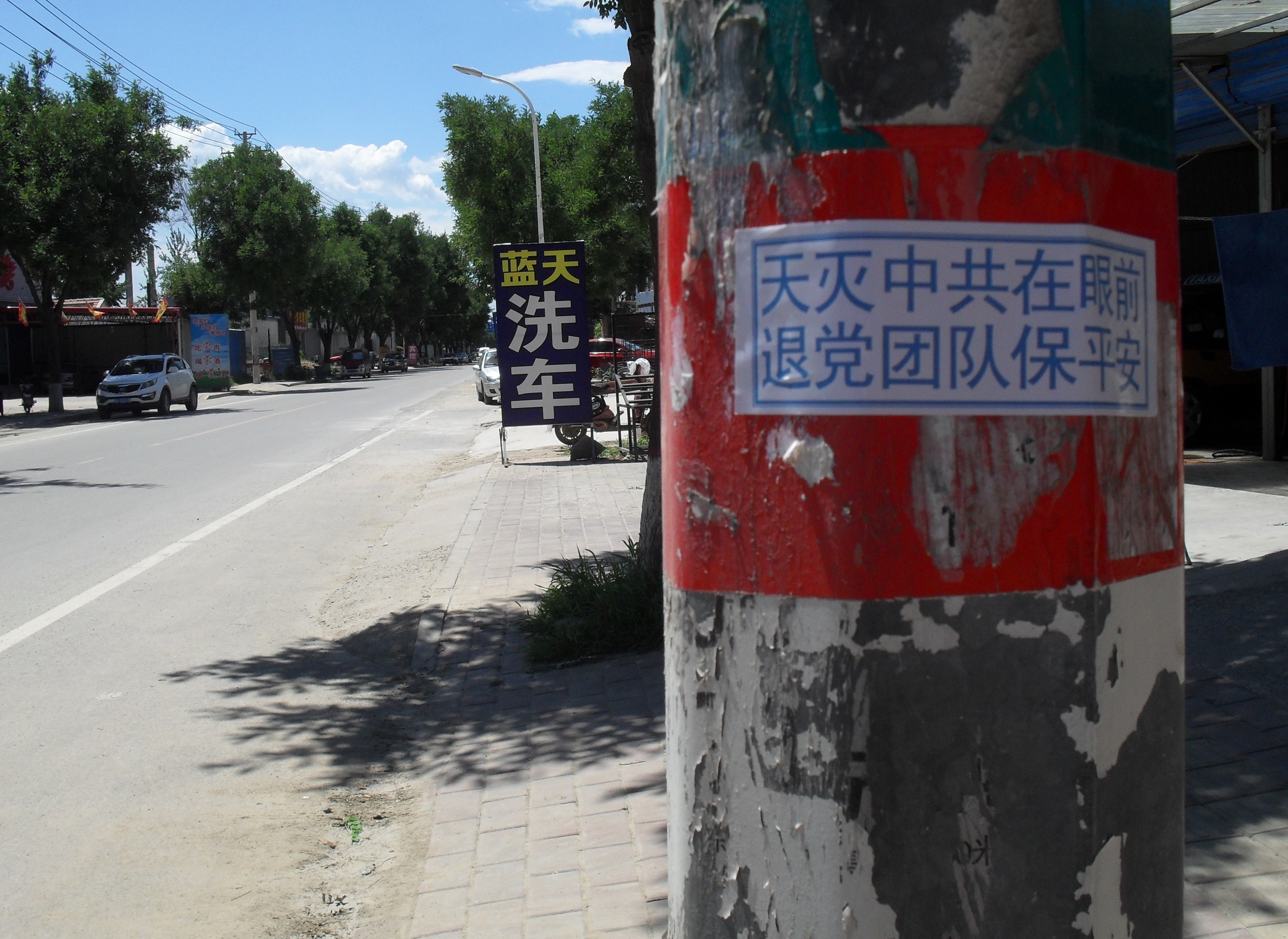在河北省三河市的街头巷尾可以看到“法轮大法好”、“世界需要真善忍”、“天灭中共在眼前,退!党!团队保平安”的真相粘贴。