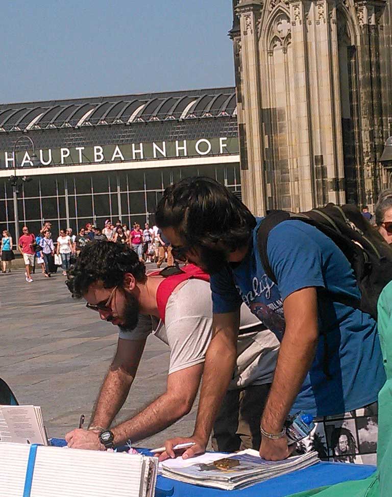 ![]() 法轮功学员在德国科隆大教堂前举办活动,传播真相 |