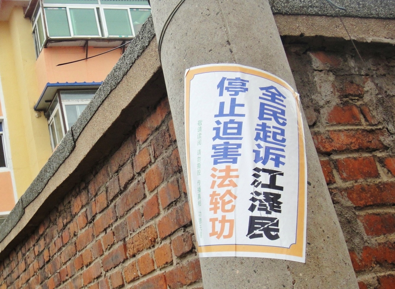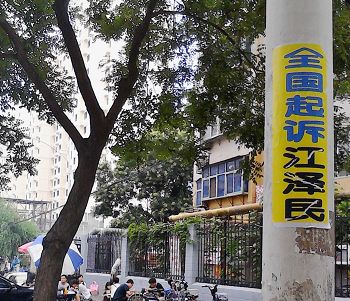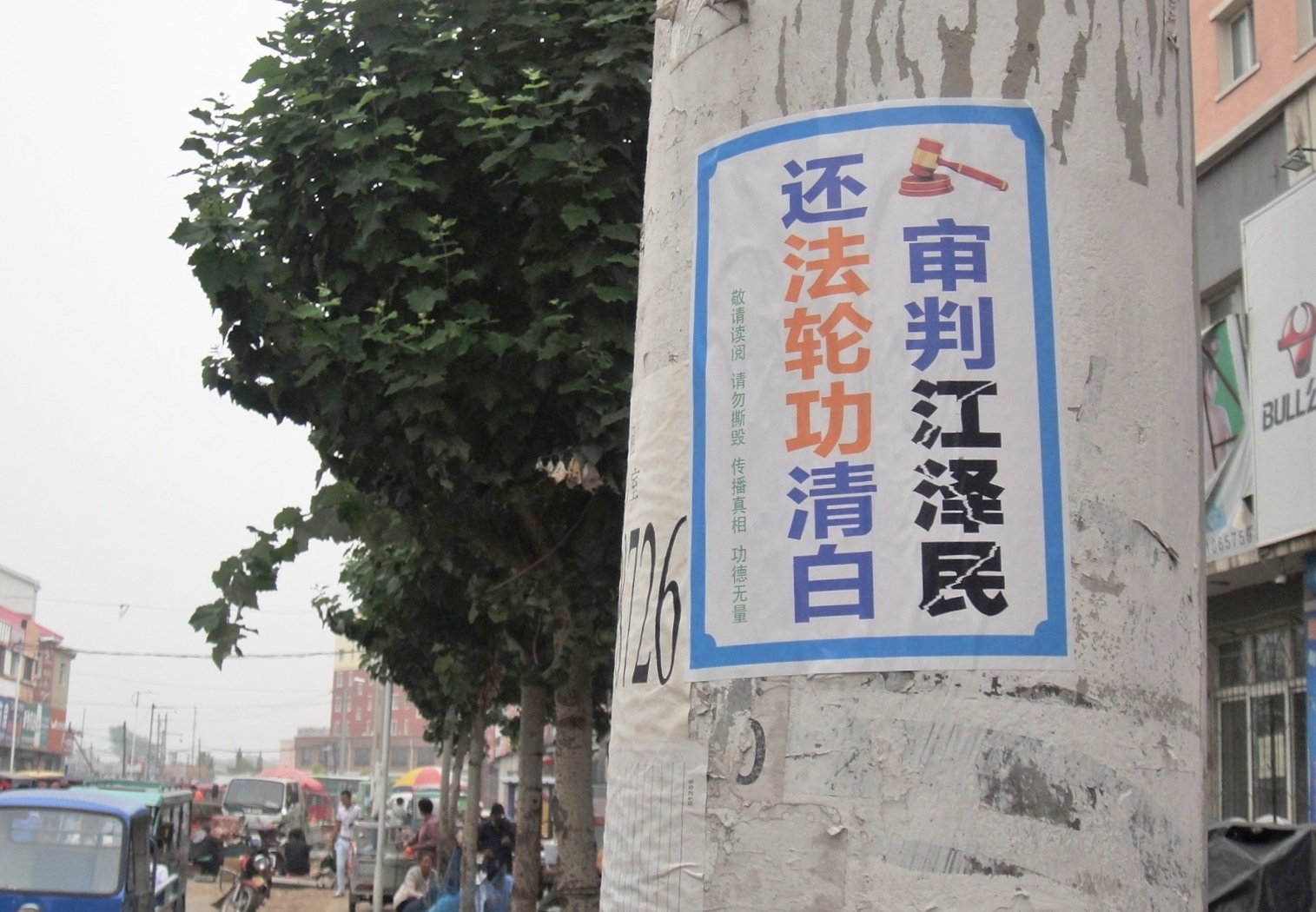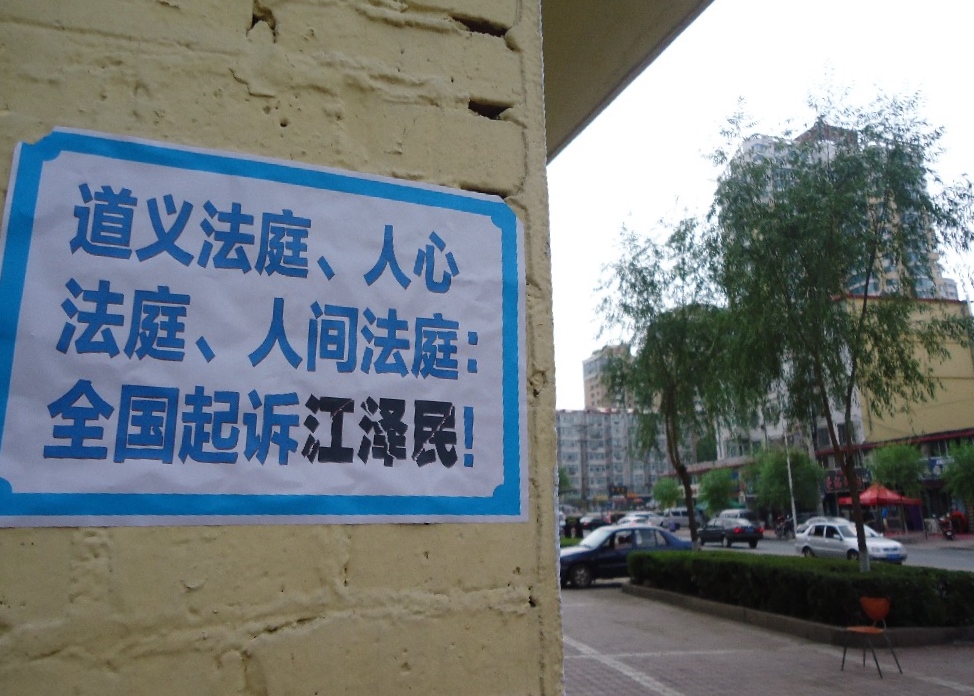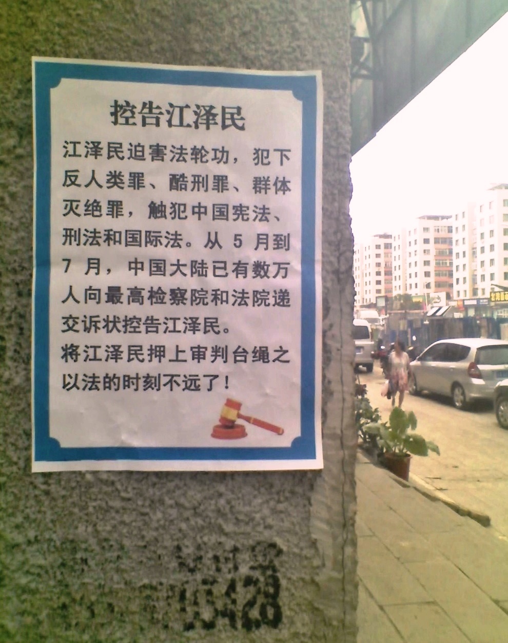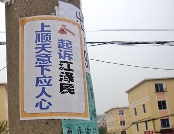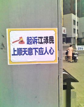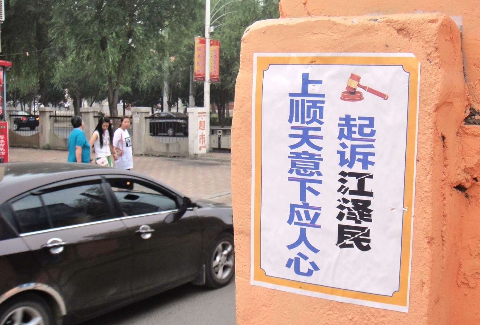 东北、河北、山东、内蒙、江西、云南以及甘肃等地,人们在大街小巷、住宅区、公园、闹市区等处都能见到“起诉江泽民”的标语、不干胶,以及书写“法轮大法好”的标语等。