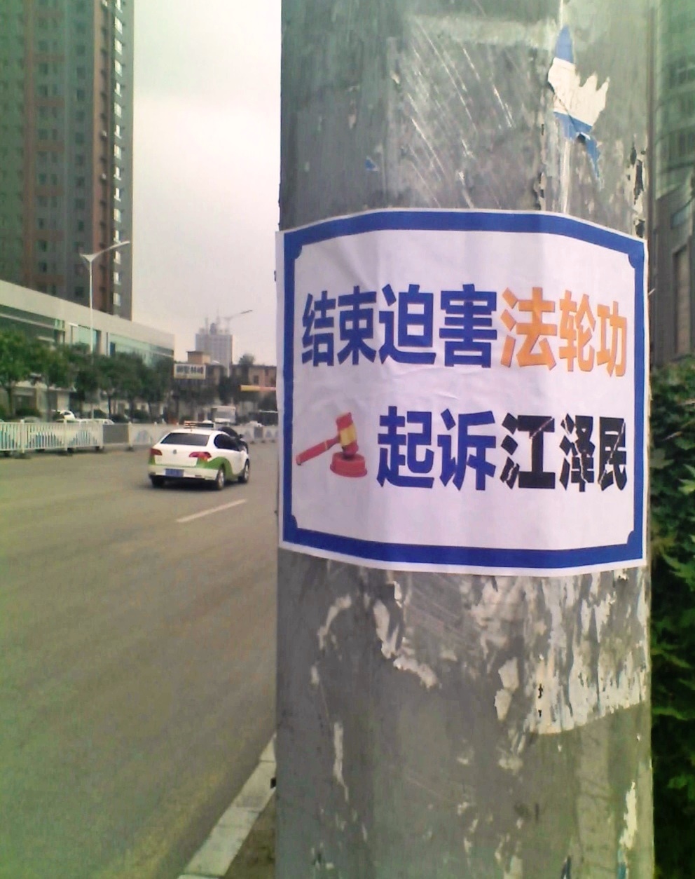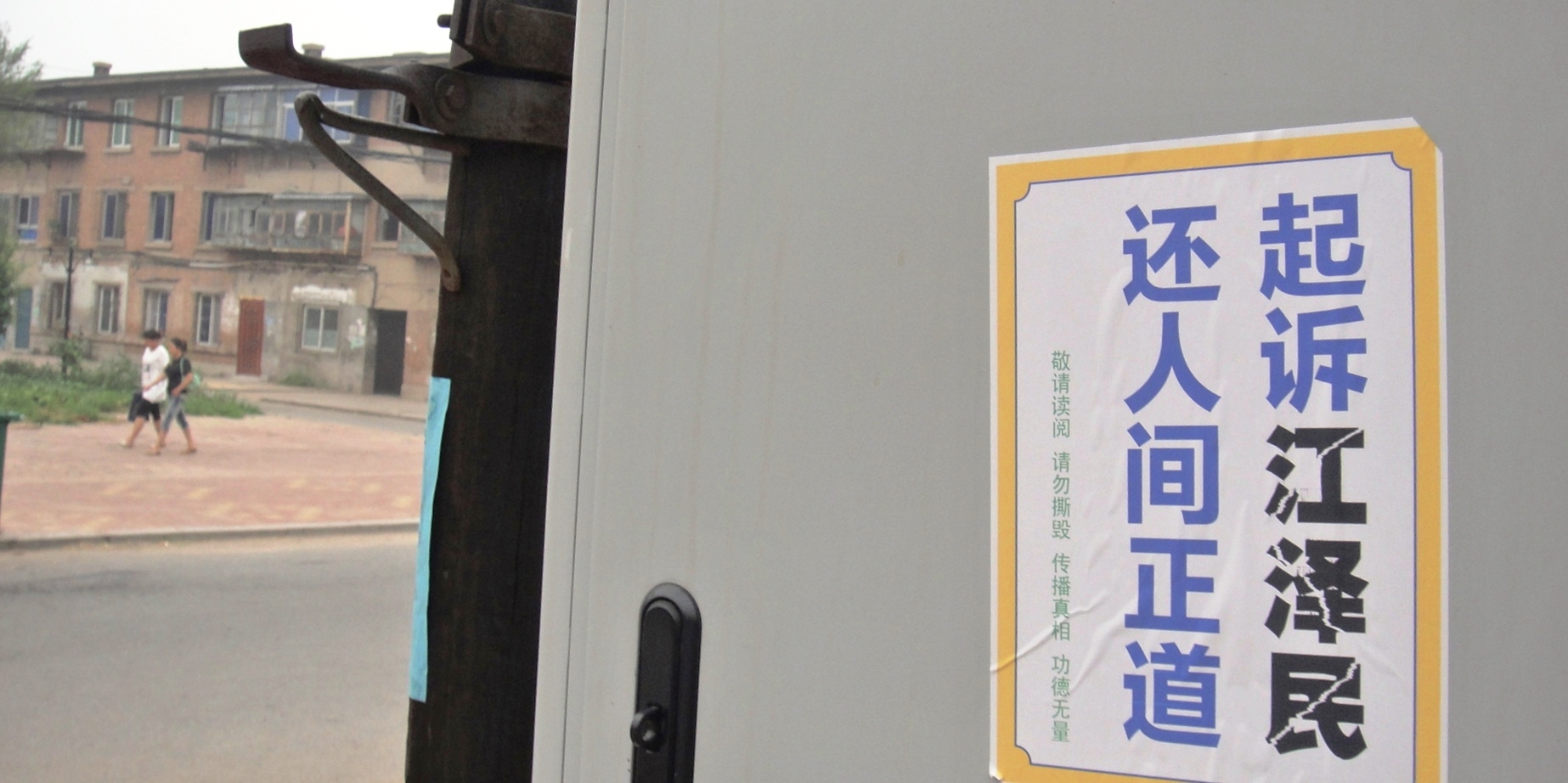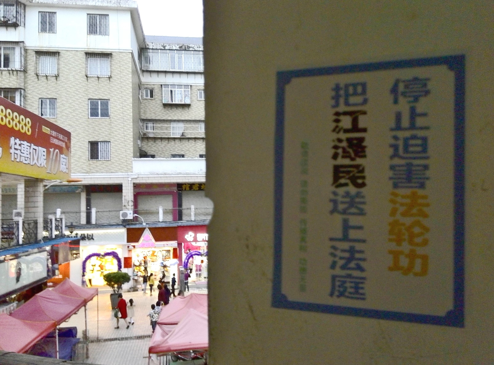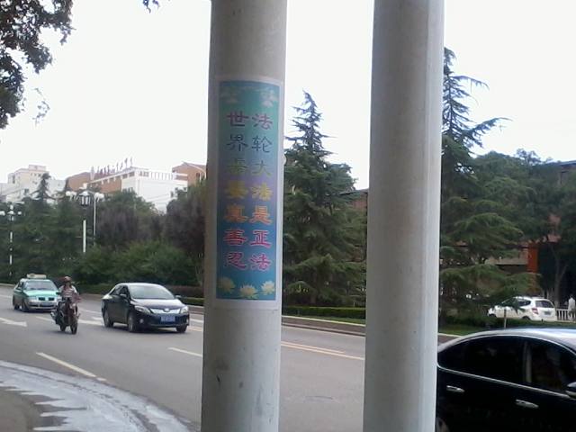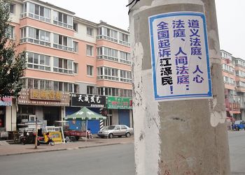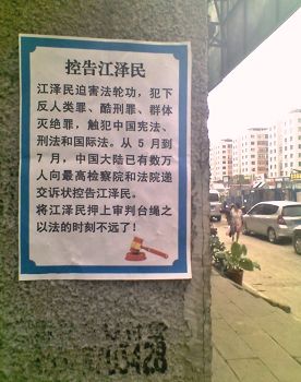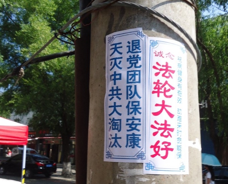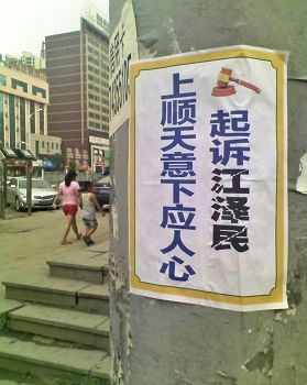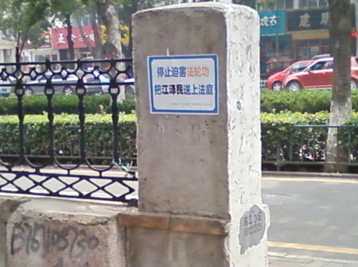 东北、河北、山东、内蒙、江西、云南以及甘肃等地,人们在大街小巷、住宅区、公园、闹市区等处都能见到“起诉江泽民”的标语、不干胶,以及书写“法轮大法好”的标语等。