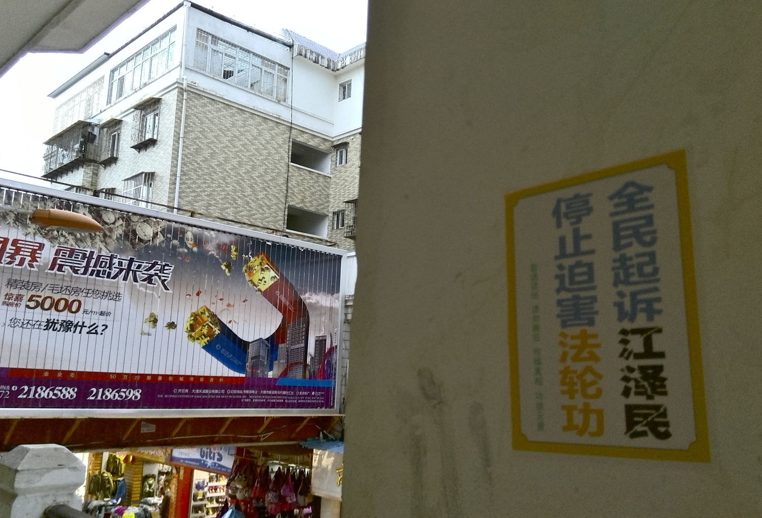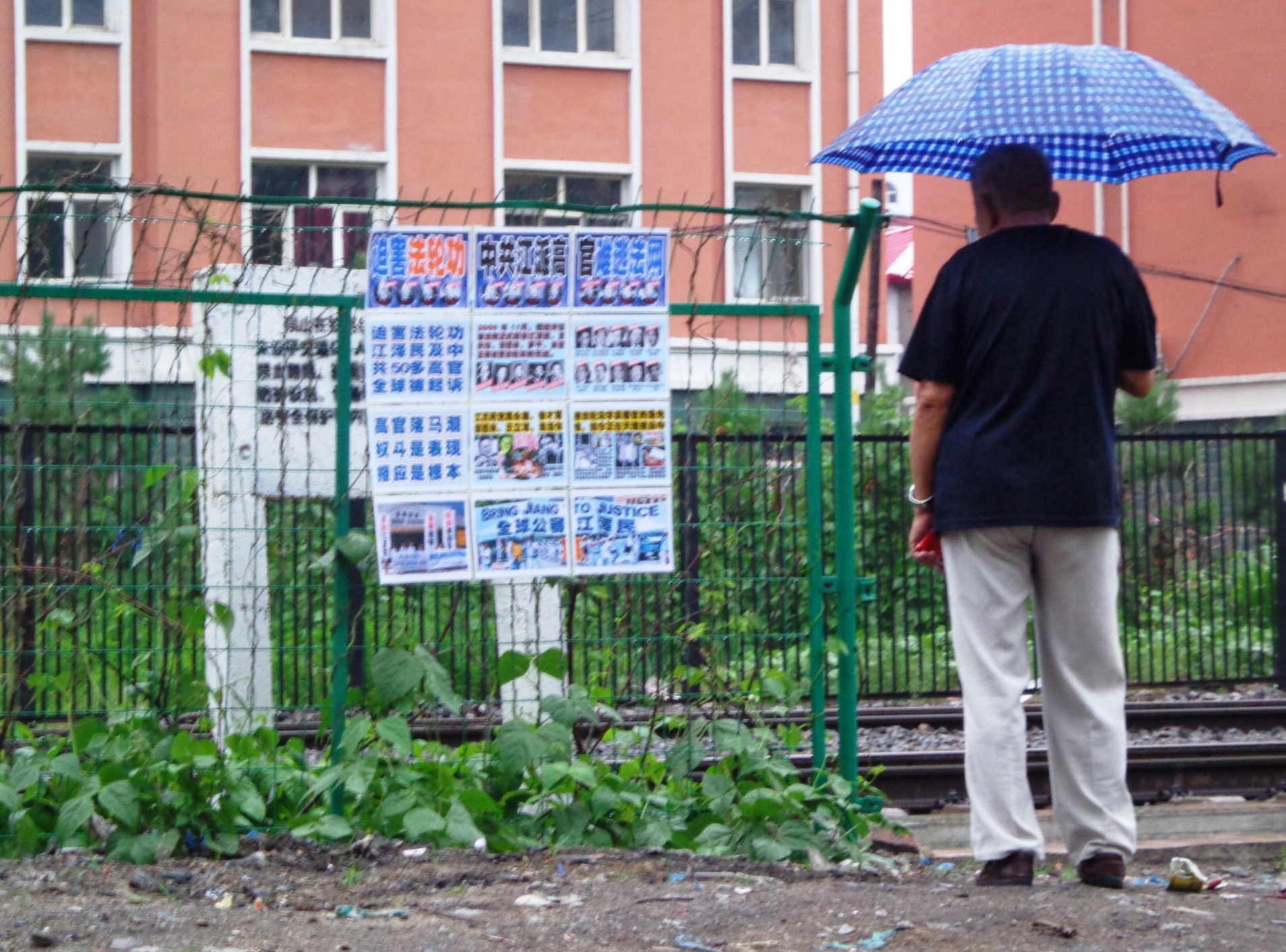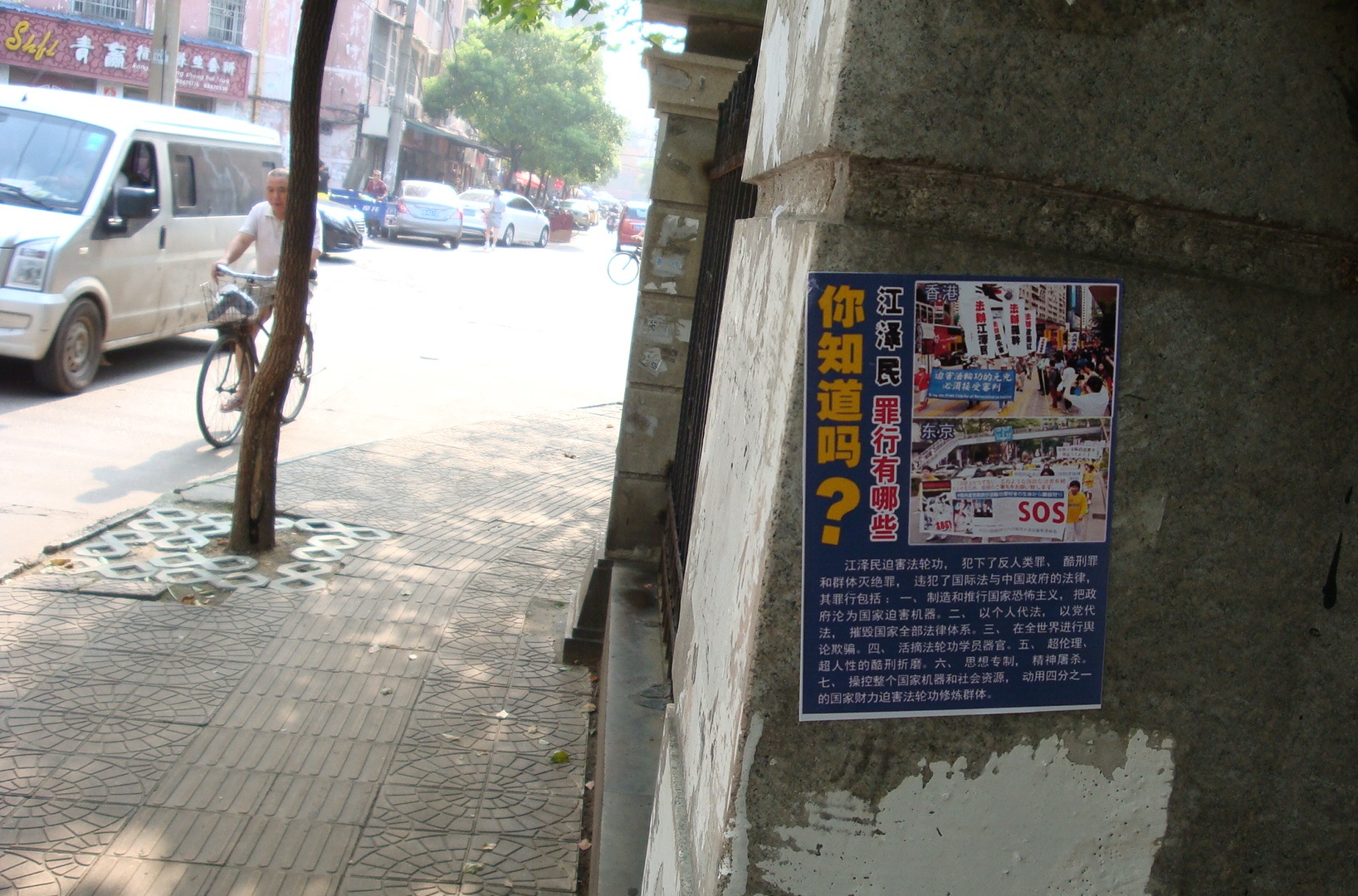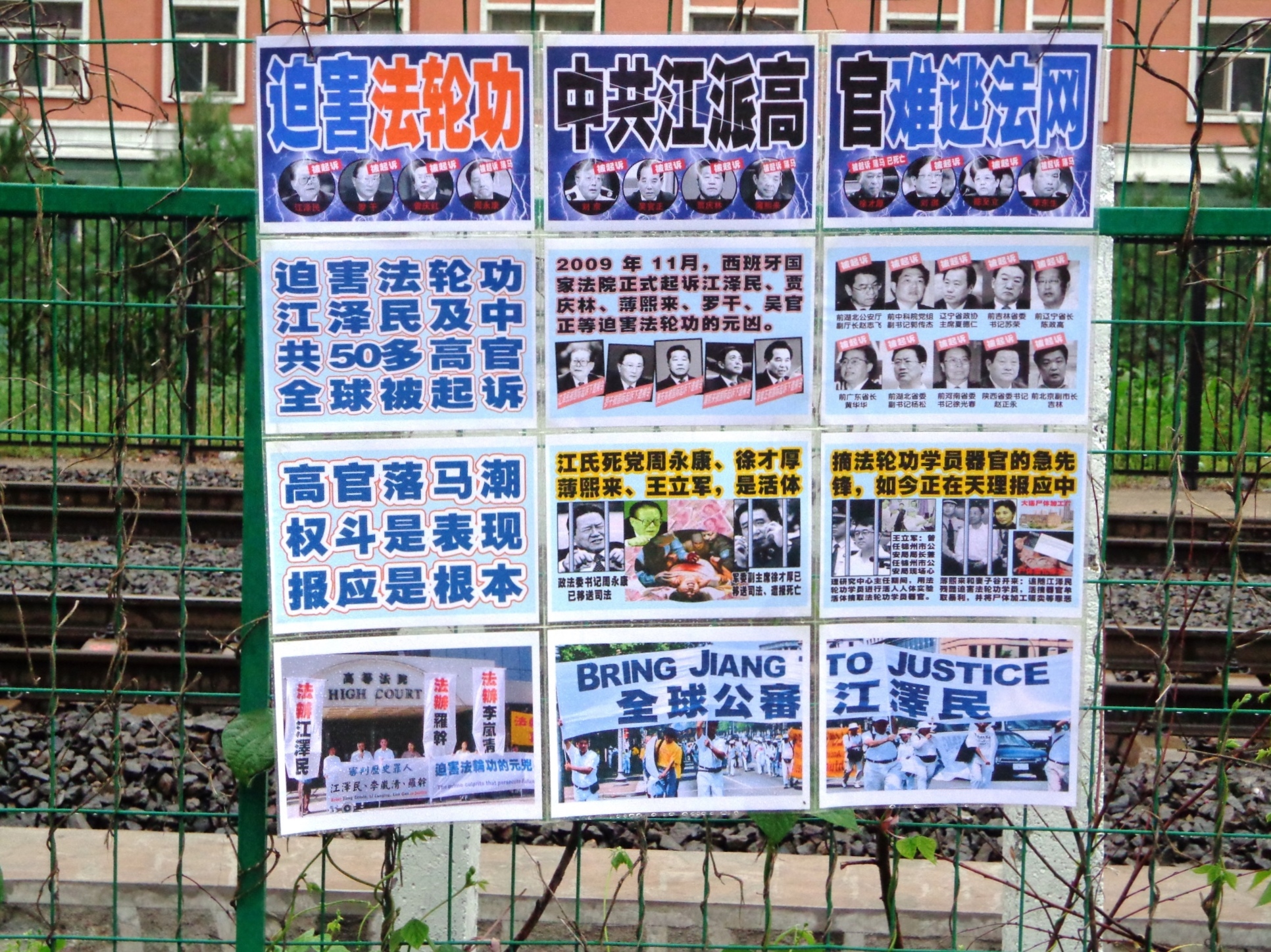 东北、河北、山东、内蒙、江西、云南以及甘肃等地,人们在大街小巷、住宅区、公园、闹市区等处都能见到“起诉江泽民”的标语、不干胶,以及书写“法轮大法好”的标语等。