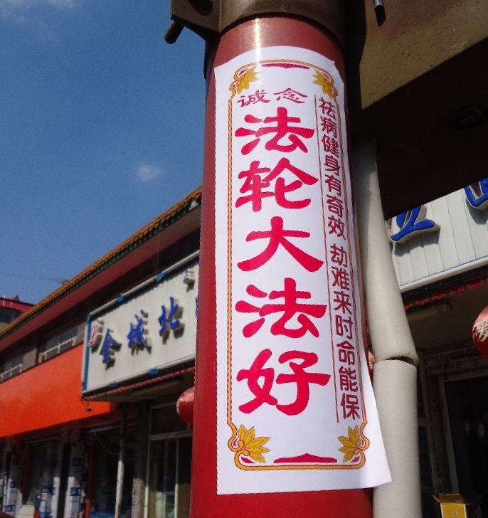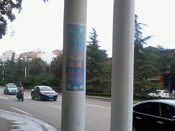 辽宁西部某市多处可见“法轮大法好”条幅和诉江标语