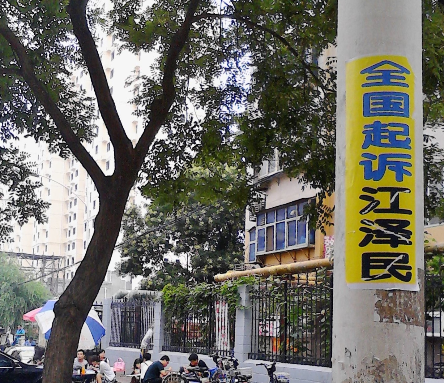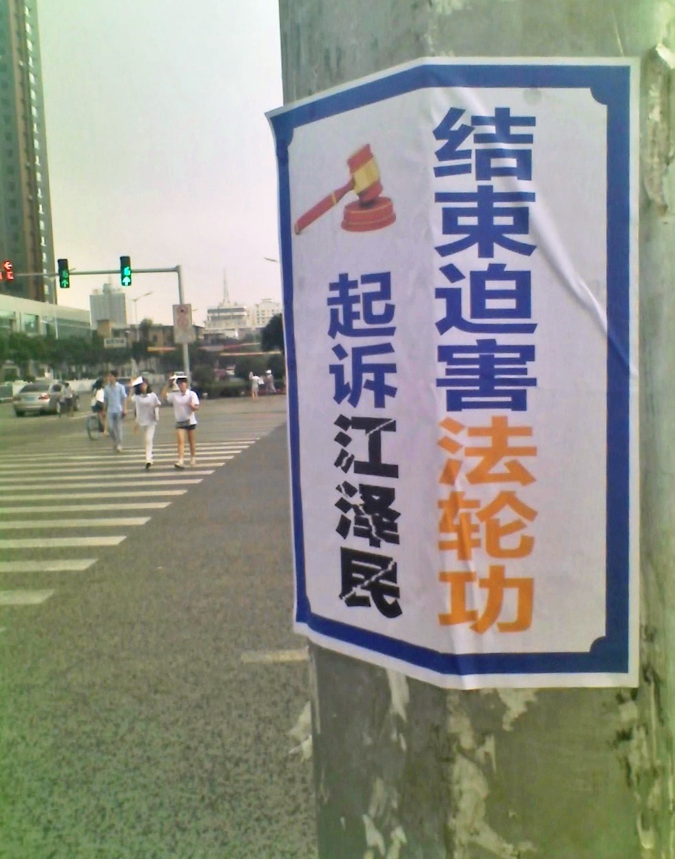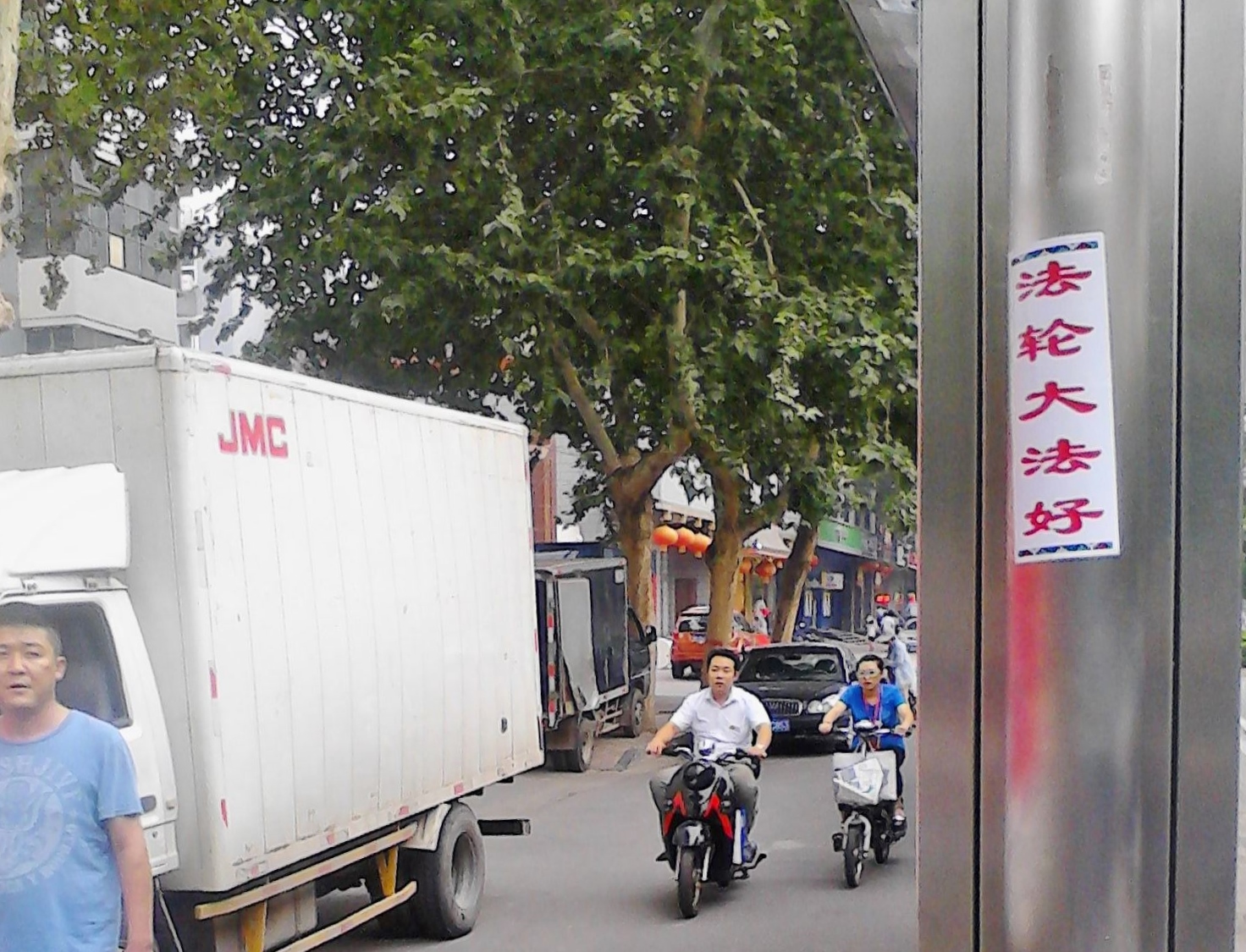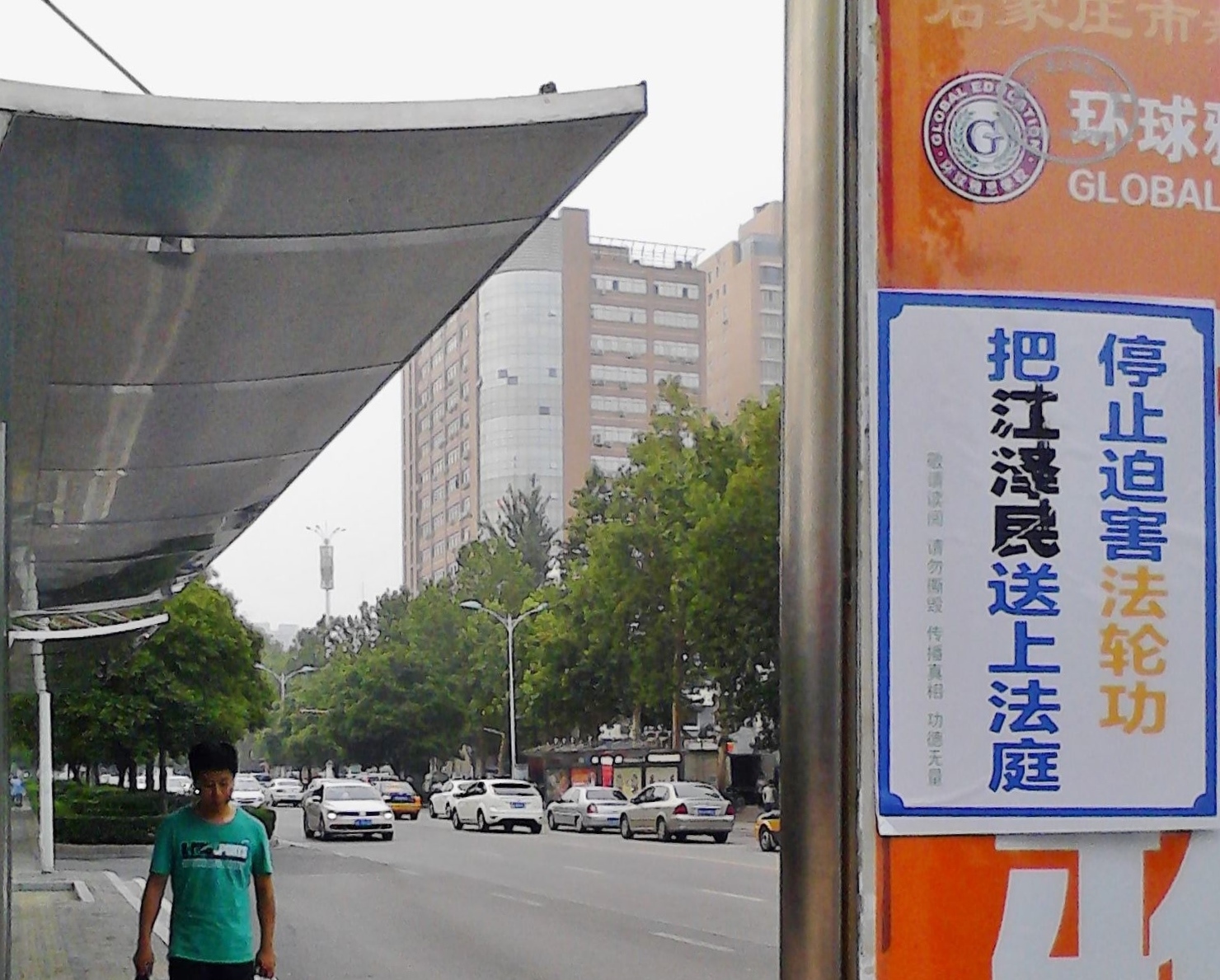 2015年7月19日,石家庄市区到处贴上了“全国起诉江泽民”、“法轮大法好”、“停止迫害法轮功 把江泽民送上法庭”等不干胶粘贴,让民众了解起诉江泽民的大潮风起云涌。