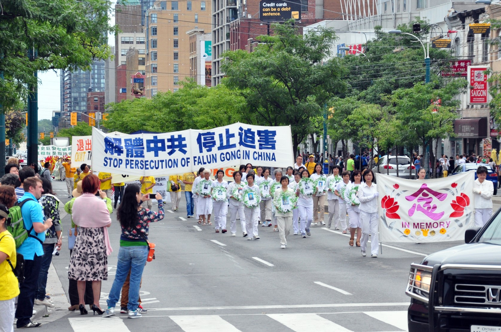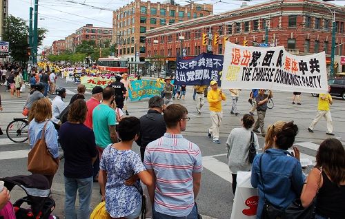![]() 八月八日,加拿大多伦多法轮功学员在市中心举行声援全球诉江游行 |