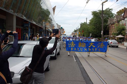 来自于大陆的Debora女士来多伦多访问,在多伦多第一次听说法轮功在中国受迫害,今天看到游行队伍时感到非常震撼,她照了很多照片。当被问及为什么照照片时,Debora女士说:“我要把这个游行都照下来,回国后给家人和朋友看!” Debora女士对法轮功功法也很感兴趣,拿了传单后说要好好看一看。