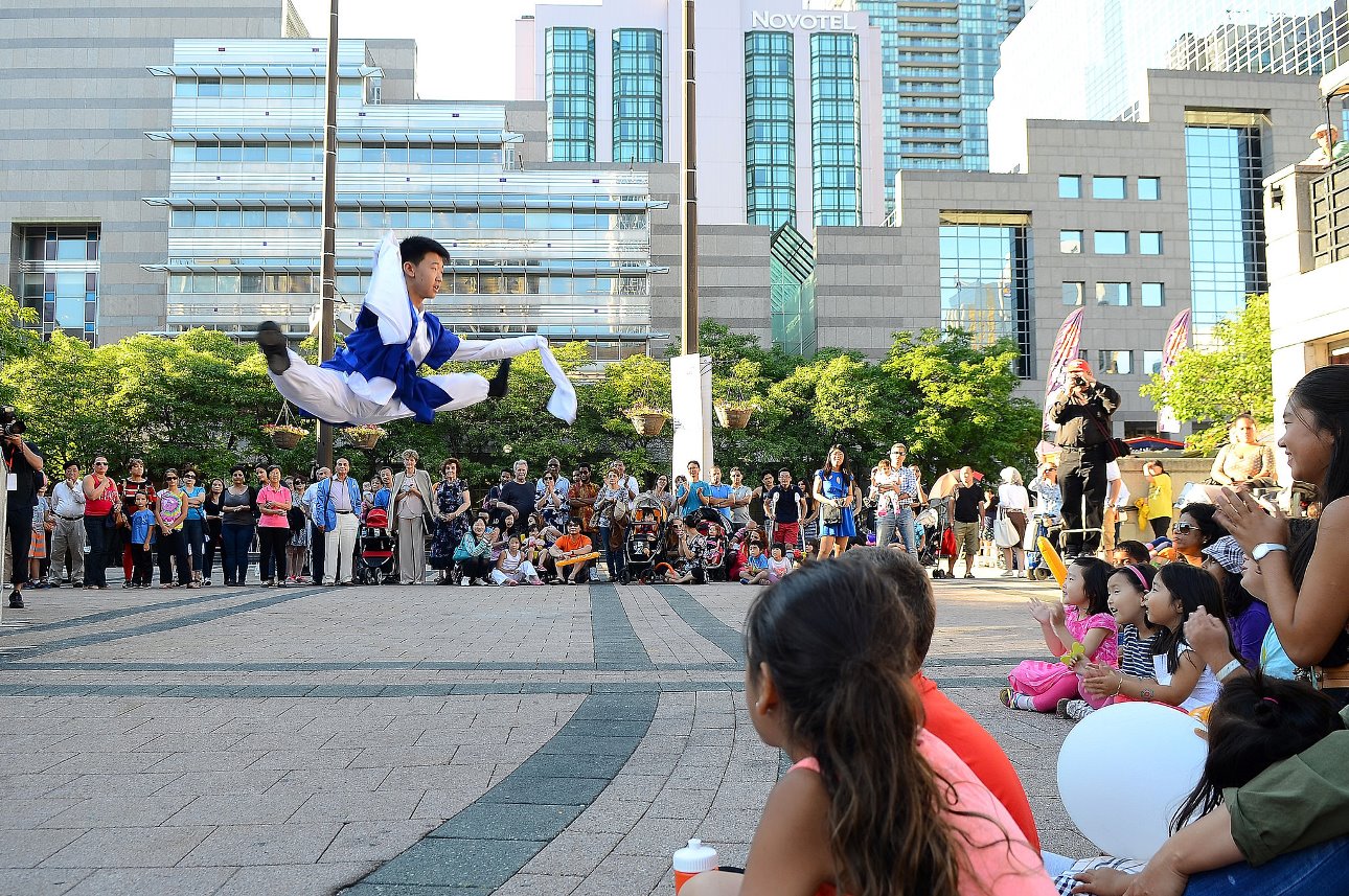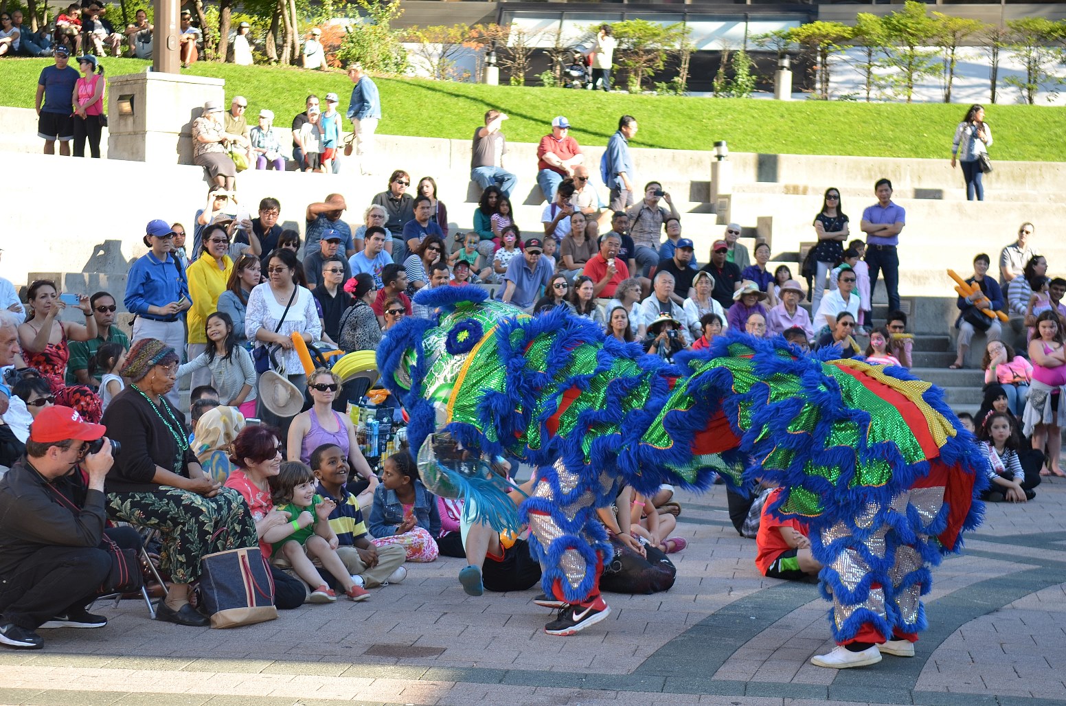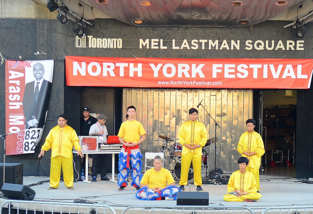 【明慧网二零一五年八月十日】二零一五年八月八日,多伦多法轮功学员应邀参加了在多伦多市梅尔拉斯特曼广场(Mel Lastman Square)举办的北约克节。多伦多法轮功学员及莲花艺术团在北约克节上进行了舞蹈表演、舞狮表演和法轮功功法演示并广泛传播法轮功真相,受到民众的欢迎。