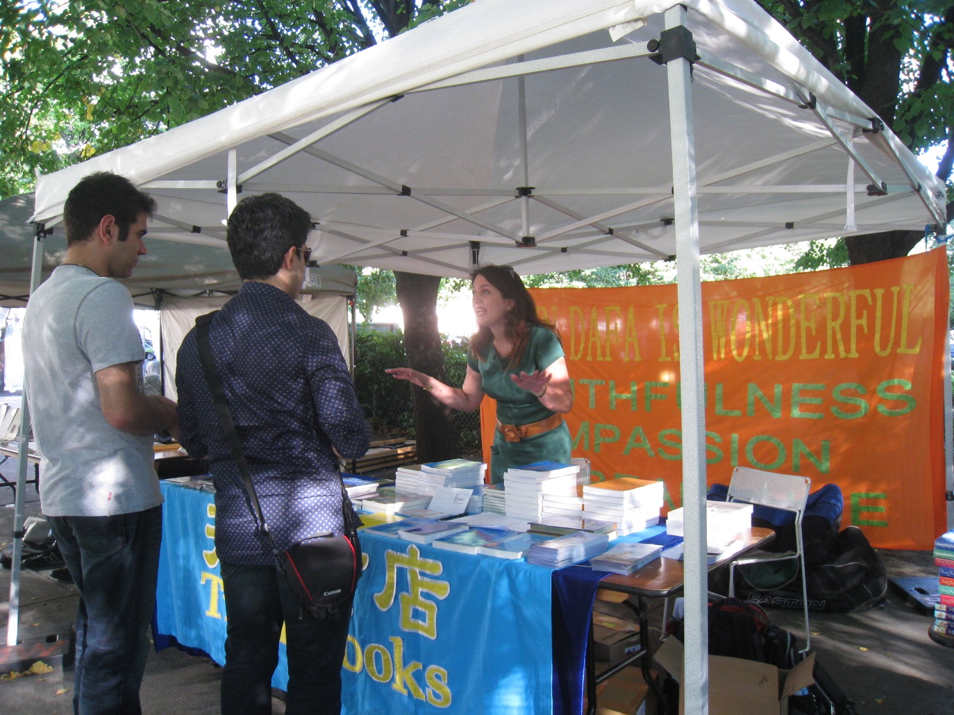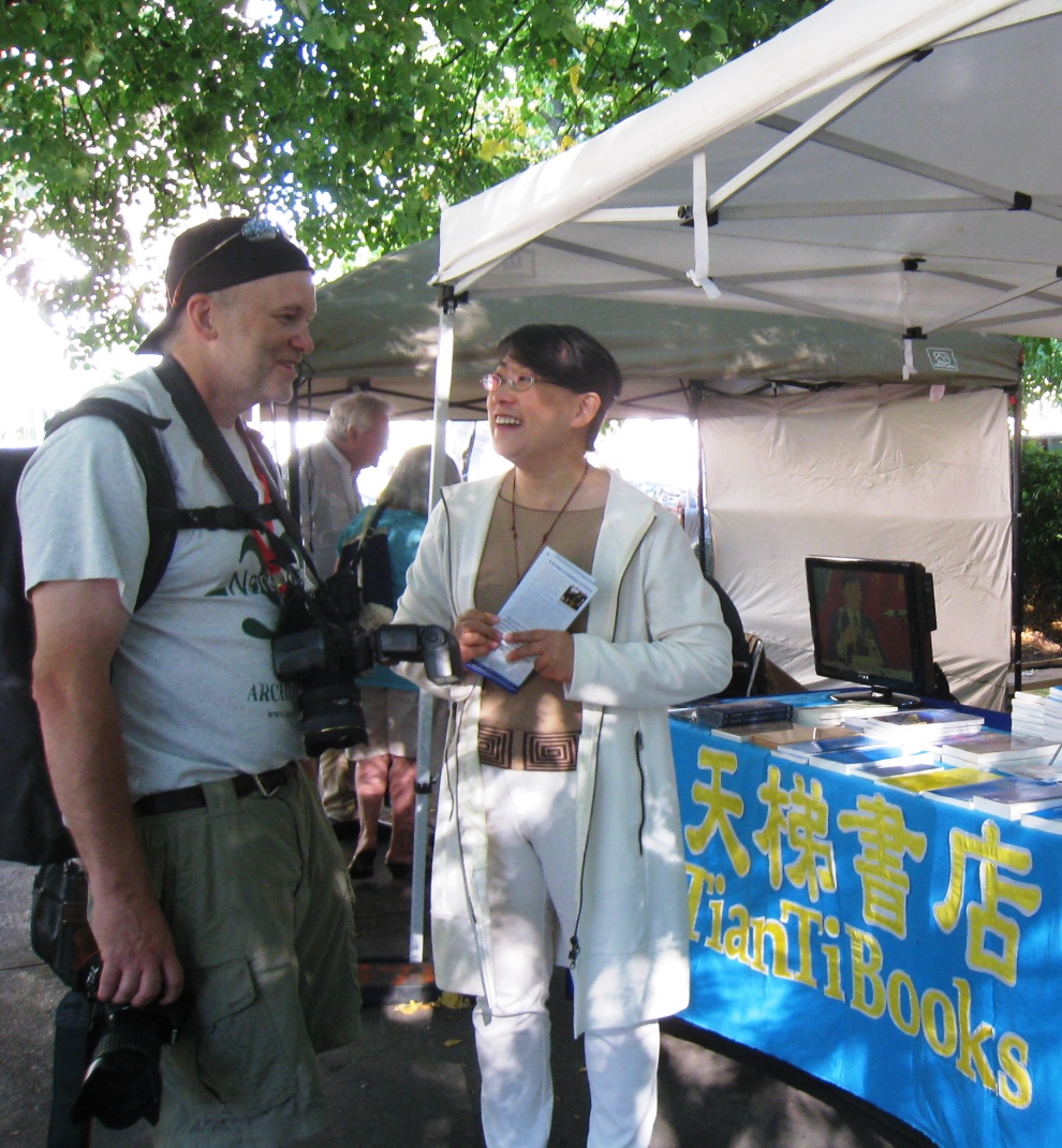 来自于大陆的梁先生是个研究佛教的学者,他对法轮功不太了解。当经过法轮大法展位时,他向法轮功学员问了好几个问题,比如说在中国为什么中共对法轮功进行迫害,而对佛教没有迫害。法轮功学员对梁先生提出的问题都一一做了回答,并告诉梁先生在中国所发生的对法轮功学员的所有迫害都来自于前中共党魁江泽民一人对法轮功创始人李洪志先生的嫉妒。