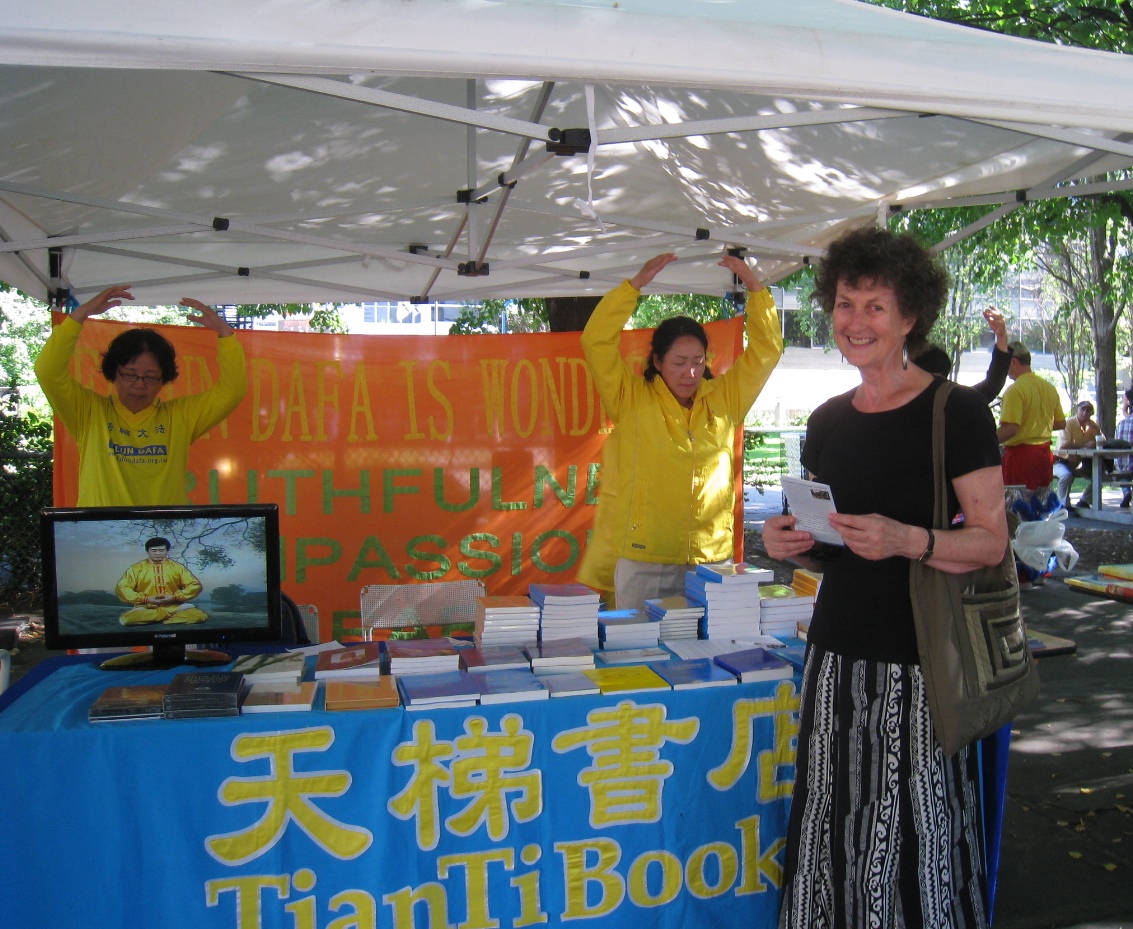 来自于伊朗现在多伦多工作的电气工程师Neda Mol女士非常喜欢法轮功的功法和真善忍原理。她说:“这是一个非常好的功法,我愿意去学习这个功法,我要遵循真、善、忍去做人!”当了解到这个功法已经传到了世界上100多个国家,但只有在中国这个功法被禁止而且法轮功学员被中共所迫害时,Neda Mol女士说:“中共对法轮功学员的迫害违背了人权,人们应该自由地在中国修炼法轮功。”