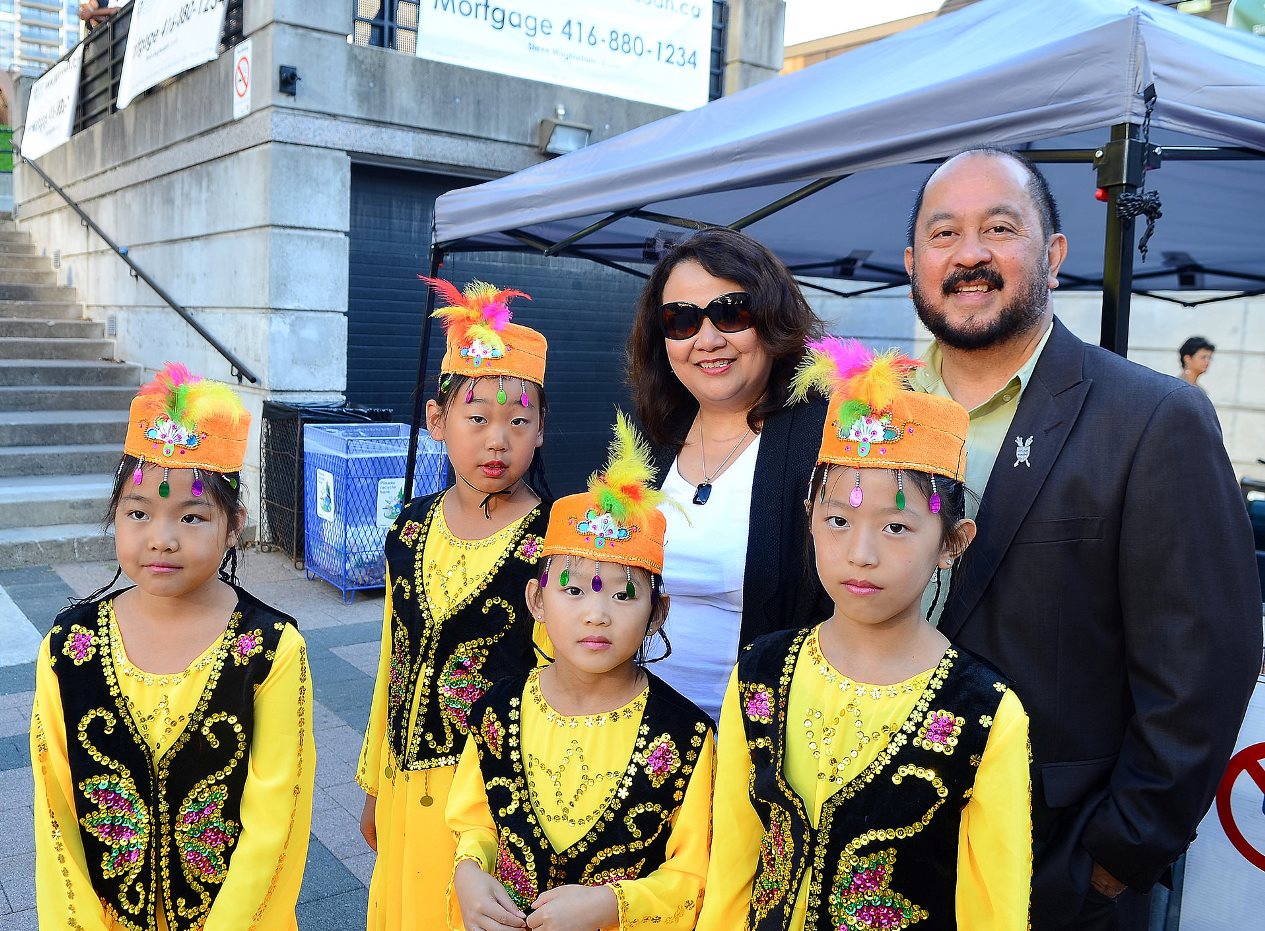 加拿大联邦参议员Tobias Enverga 应邀参加了这次活动,他表示各社区文化交流很重要,他观看完莲花艺术团的孩子们表演后,高兴地和小演员们合影。