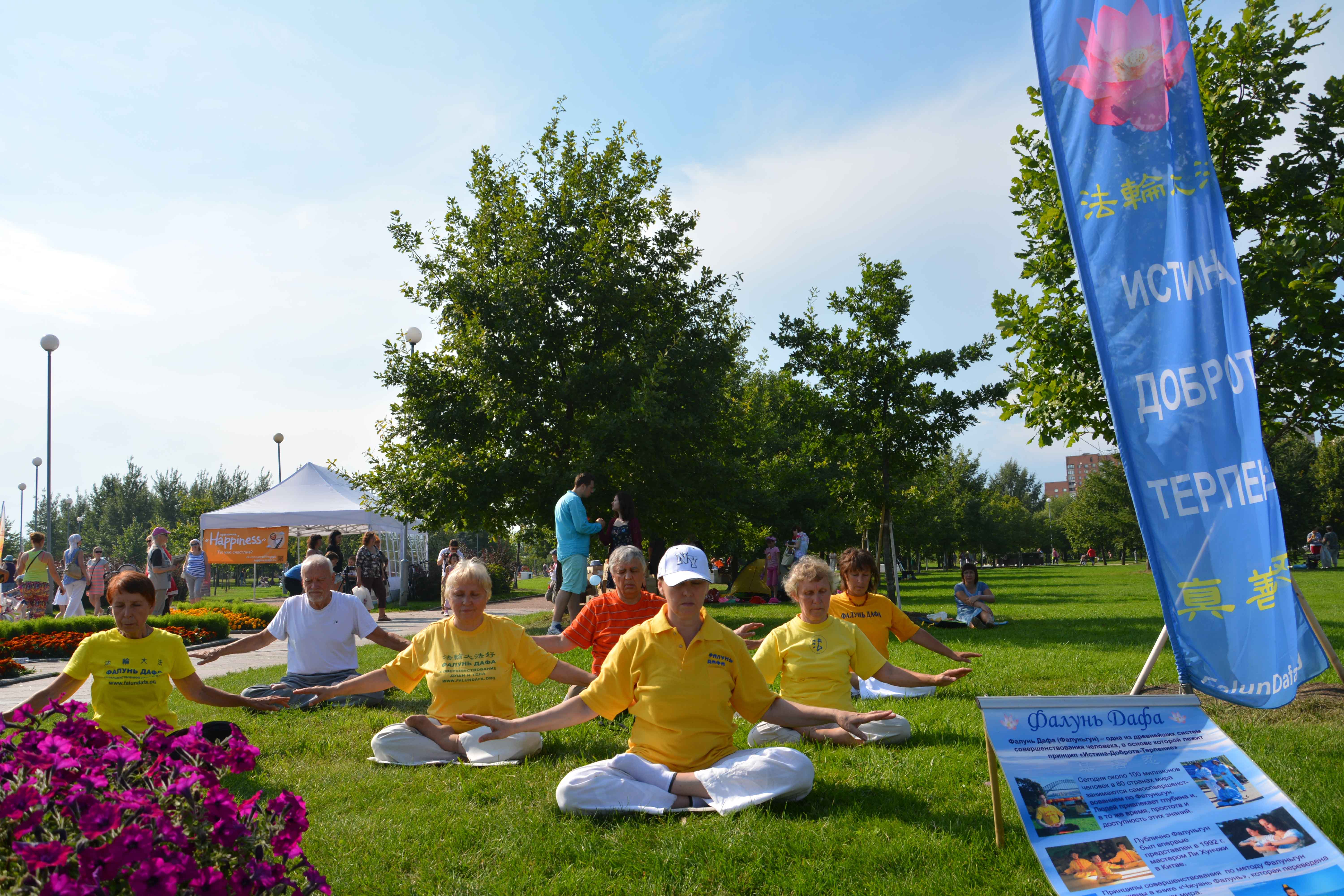二零一五年八月八日,“家庭节”(Family Fest)在海边纪念圣彼得堡三百年的大型新公园里举行。当天的活动有丰富的手工艺、卫生和儿童娱乐教育教学计划,法轮功学员也前来参加,有的演示法轮功的功法,有的告诉人们真相。