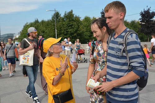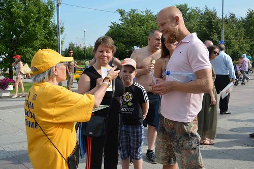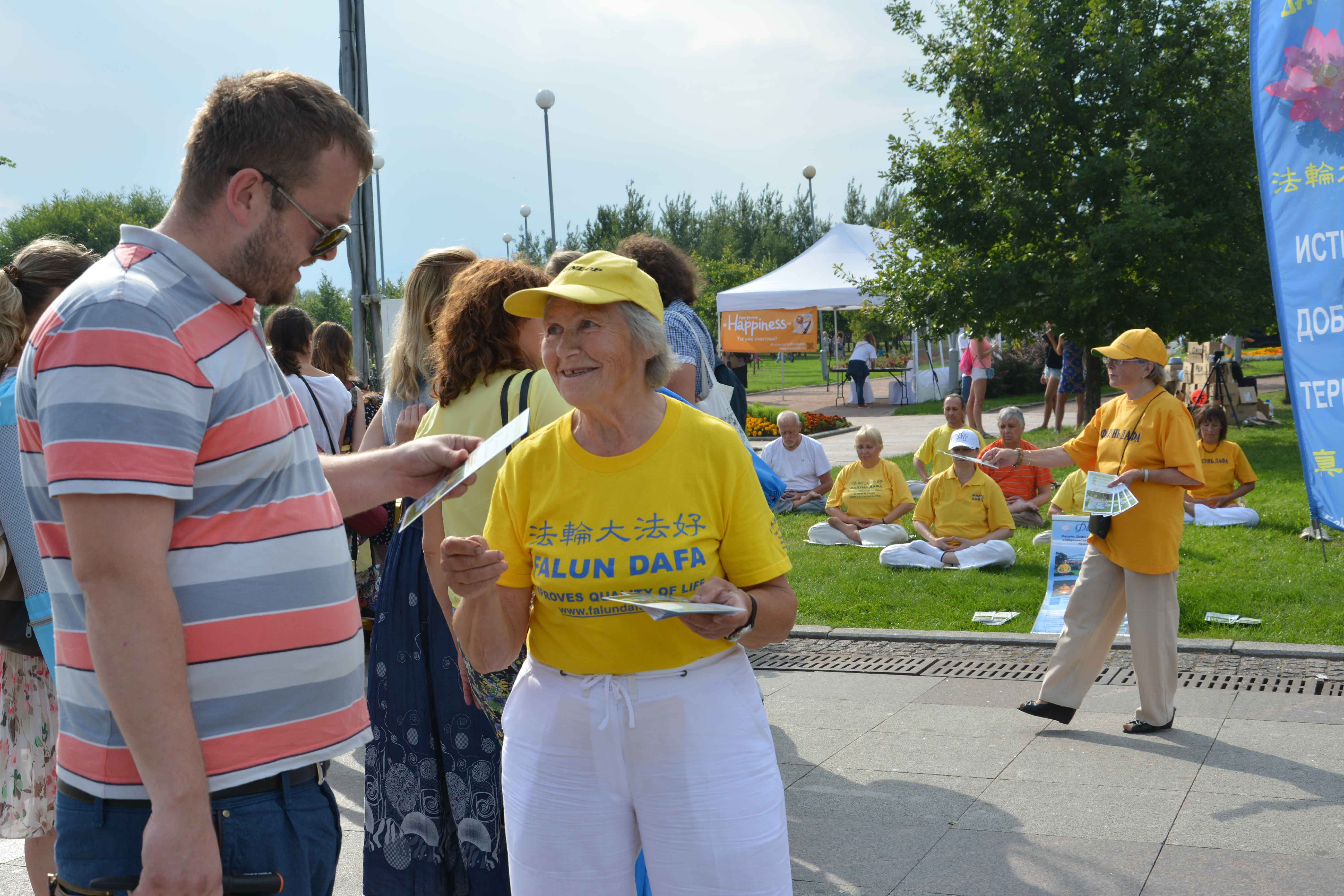 这次有数千来自俄罗斯各地的民众前来参加这个活动,其中包括诺夫哥罗德、奥廖尔、库尔斯克、西伯利亚、伊尔库茨克、克拉斯诺亚尔斯克等地。他们有的表示已经听说过法轮功,有的询问在自己所在城市是否有法轮功修炼者以及如何学习功法。也有的民众想了解中共为何如此残酷迫害法轮功学员。
