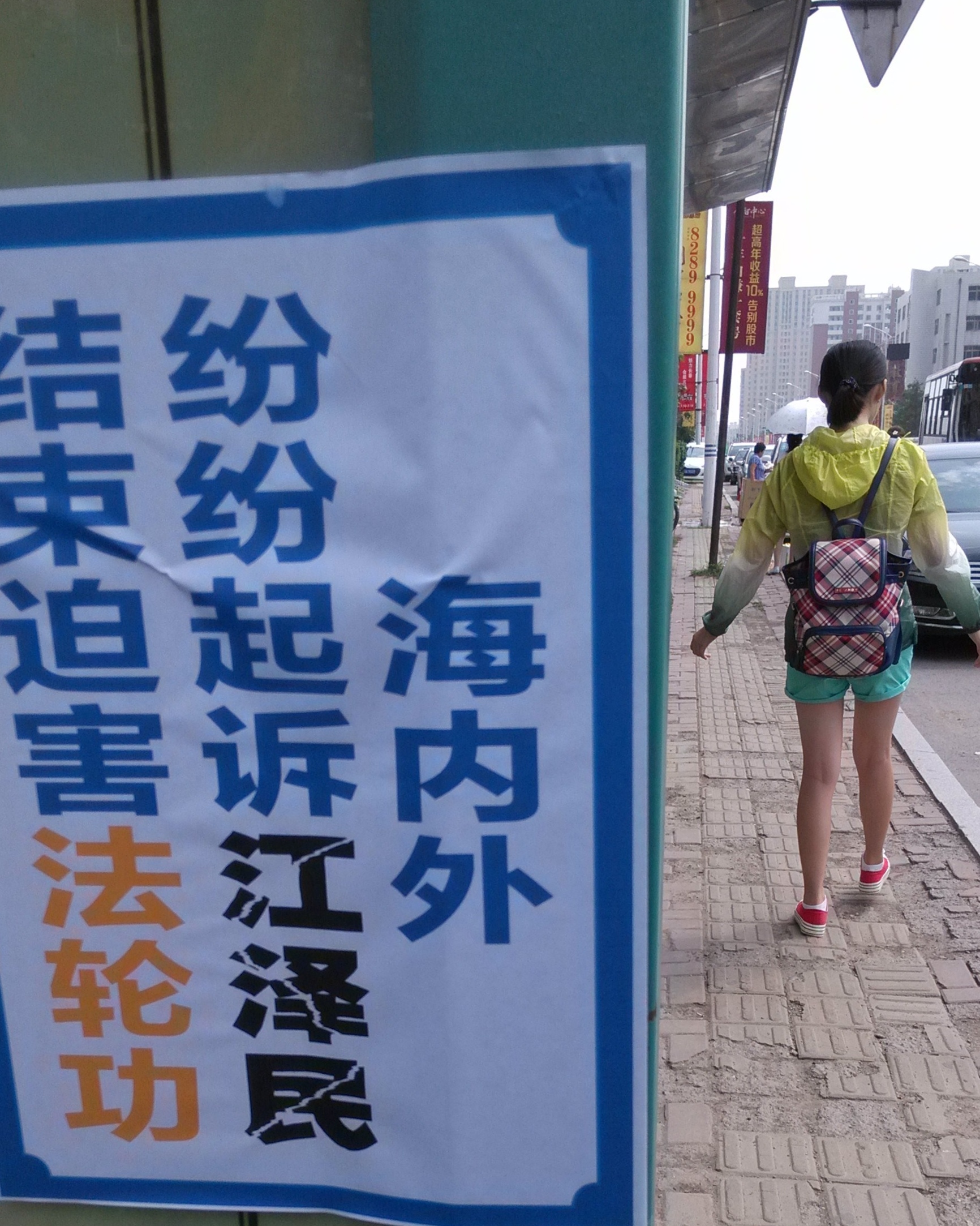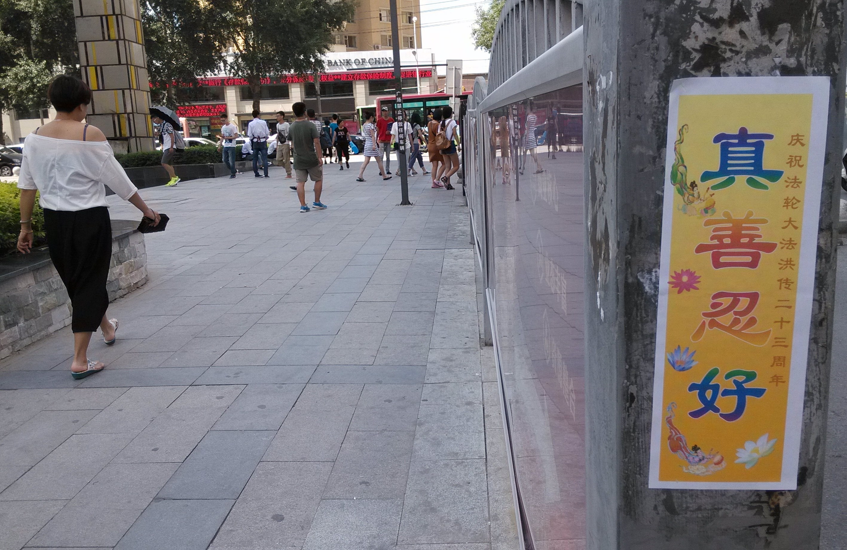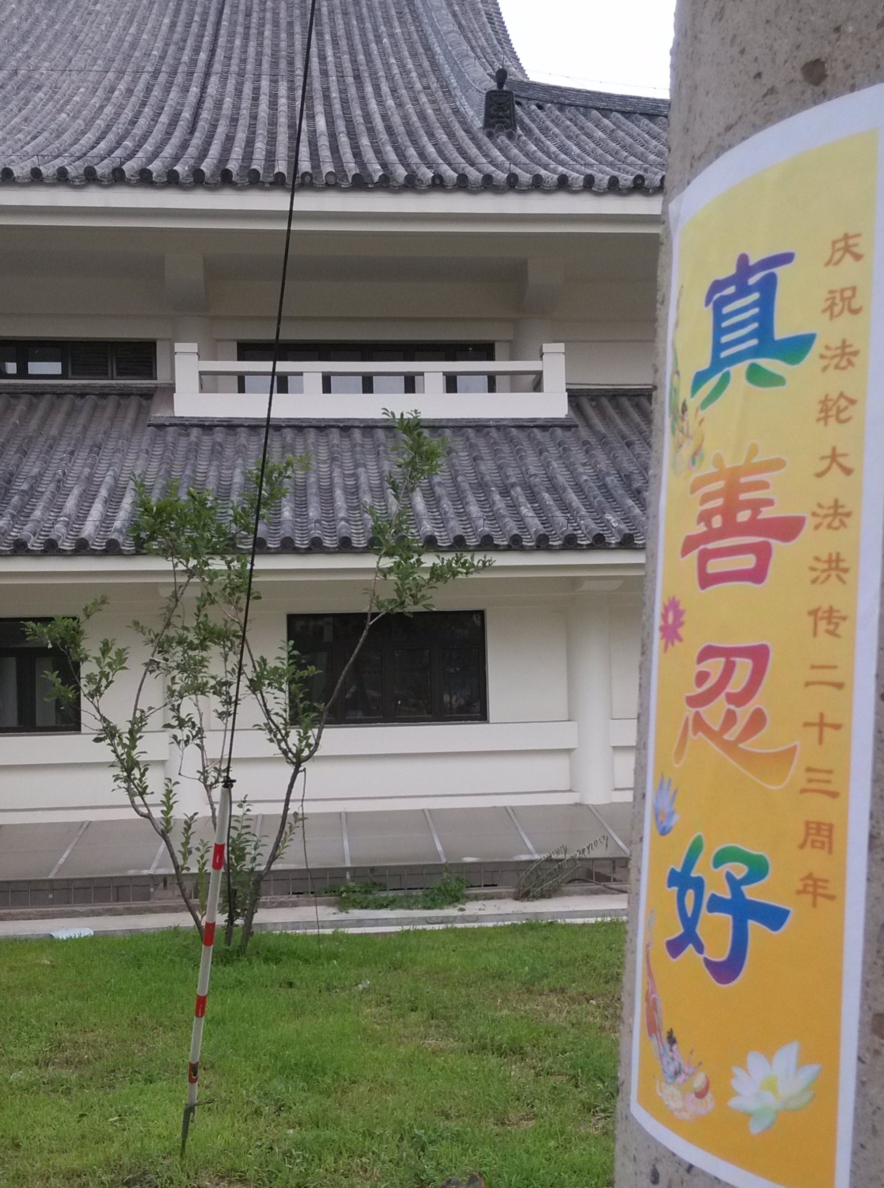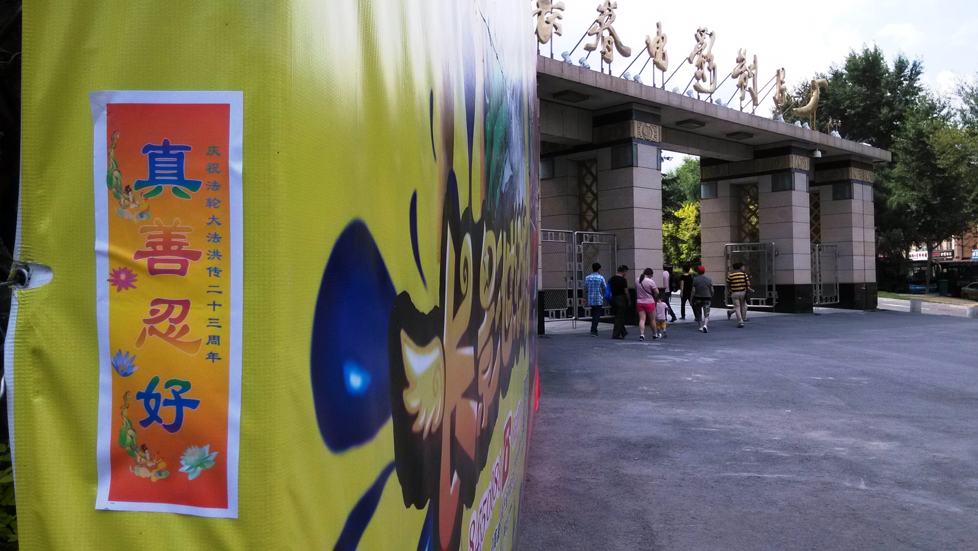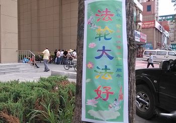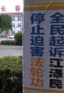 【明慧网二零一五年八月十八日】二零一五年七月底、八月初,在吉林省长春市的景阳大路(法轮功创始人李洪志先生在长春的故居所在地)、吉林大学礼堂(法轮功创始人曾经讲法的礼堂),以及长春的伪皇宫、长春电影制片厂这两个参观景点及周边的车站、广告牌、林荫小路等处,随处可见真相标语,将在中国兴起的起诉江泽民大潮以及法轮大法好的信息传递给长春的百姓。
