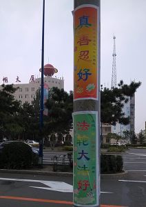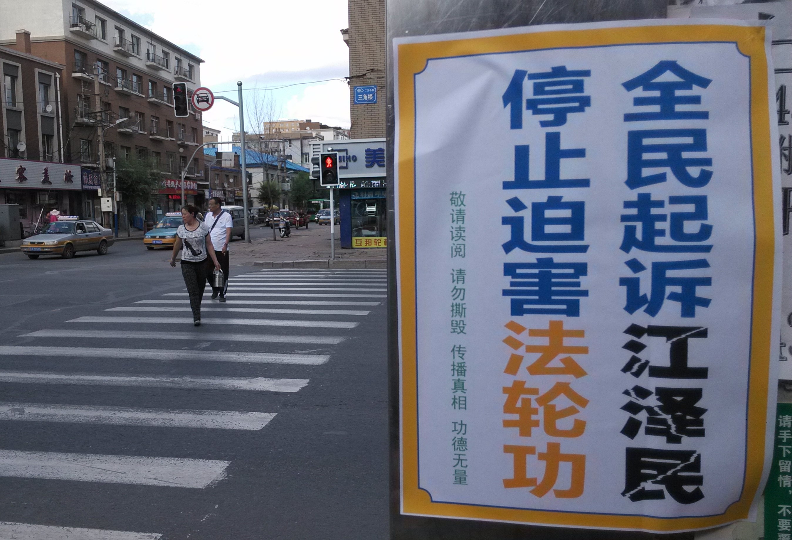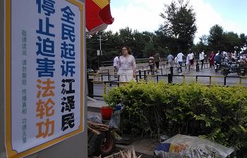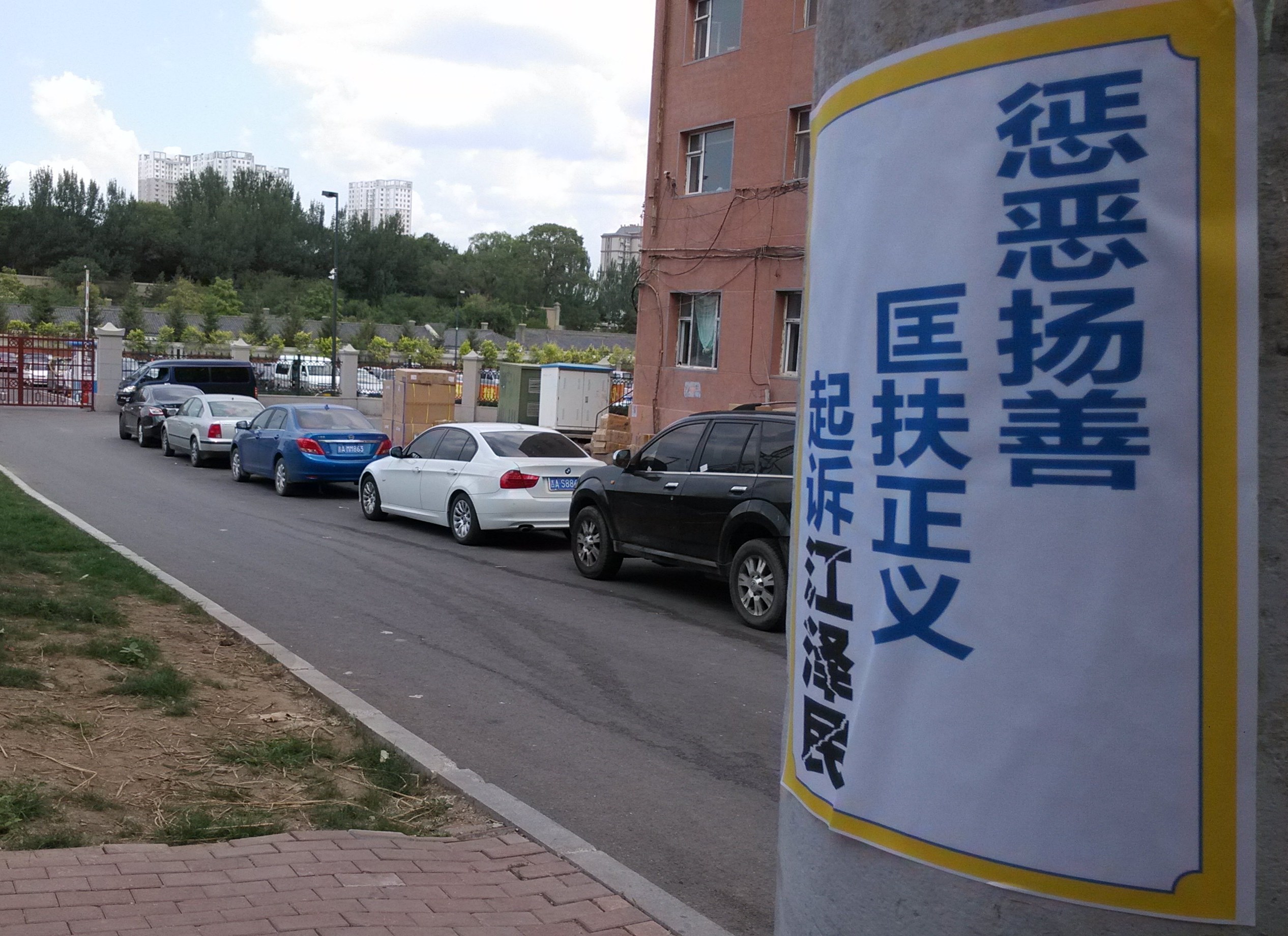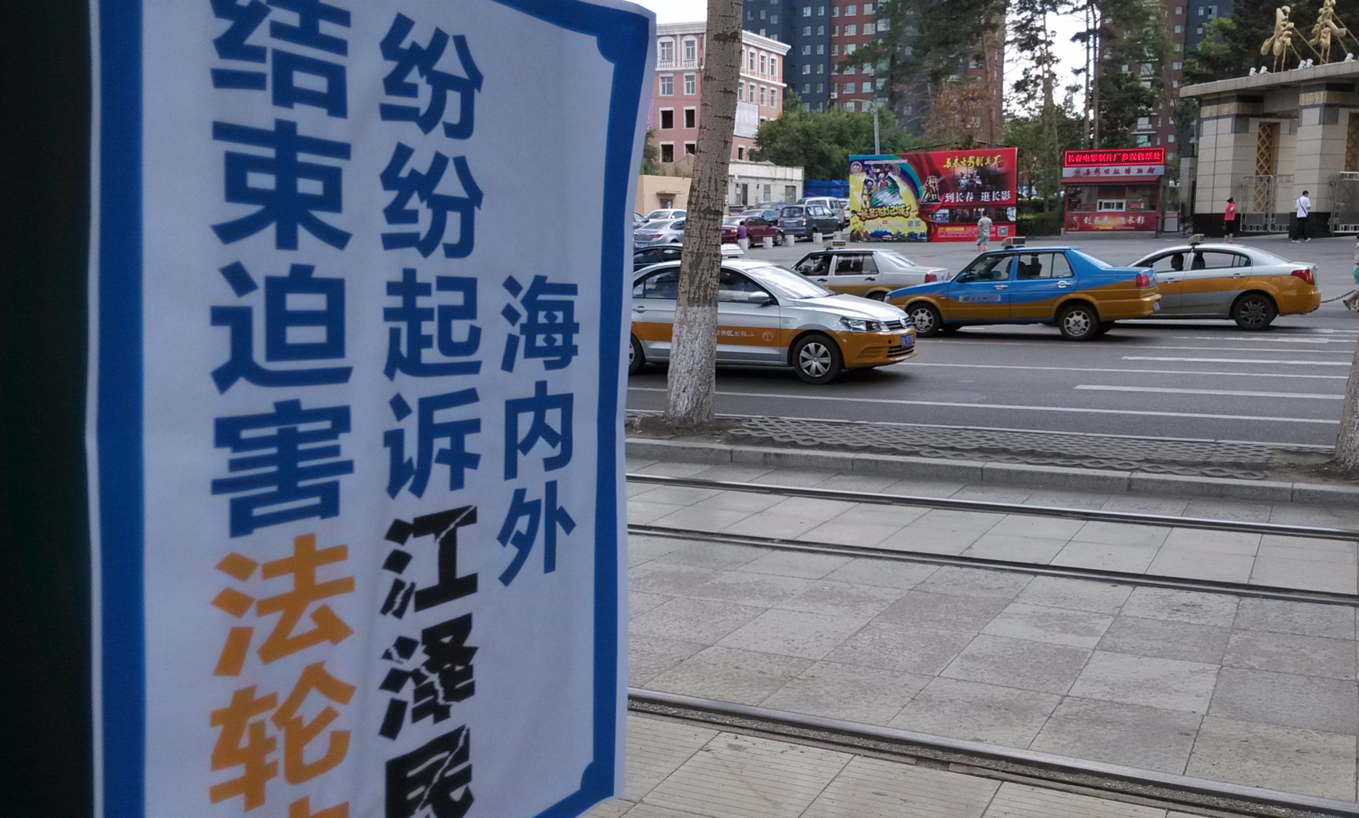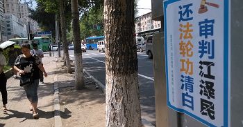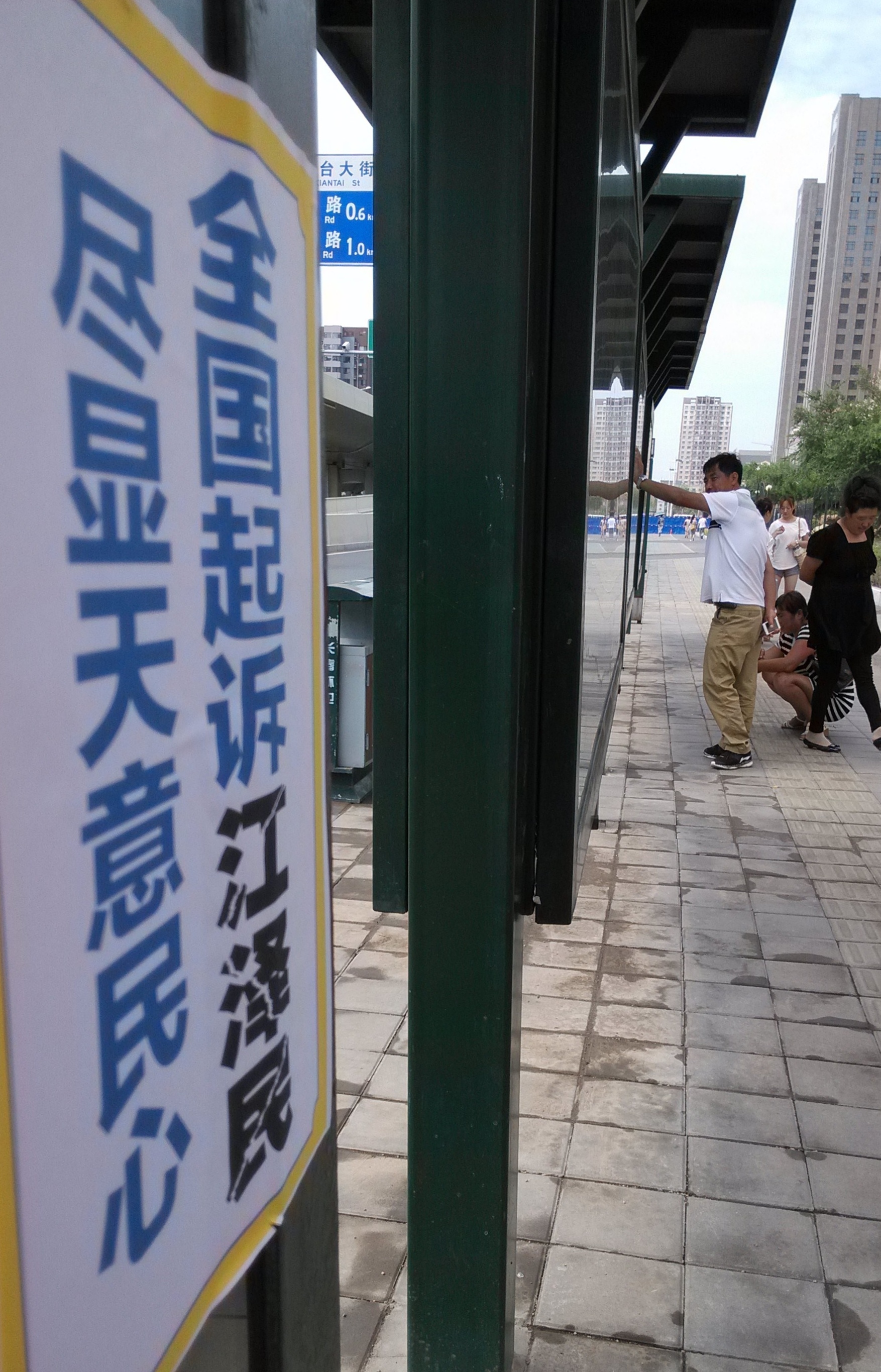 【明慧网二零一五年八月十八日】二零一五年七月底、八月初,在吉林省长春市的景阳大路(法轮功创始人李洪志先生在长春的故居所在地)、吉林大学礼堂(法轮功创始人曾经讲法的礼堂),以及长春的伪皇宫、长春电影制片厂这两个参观景点及周边的车站、广告牌、林荫小路等处,随处可见真相标语,将在中国兴起的起诉江泽民大潮以及法轮大法好的信息传递给长春的百姓。
