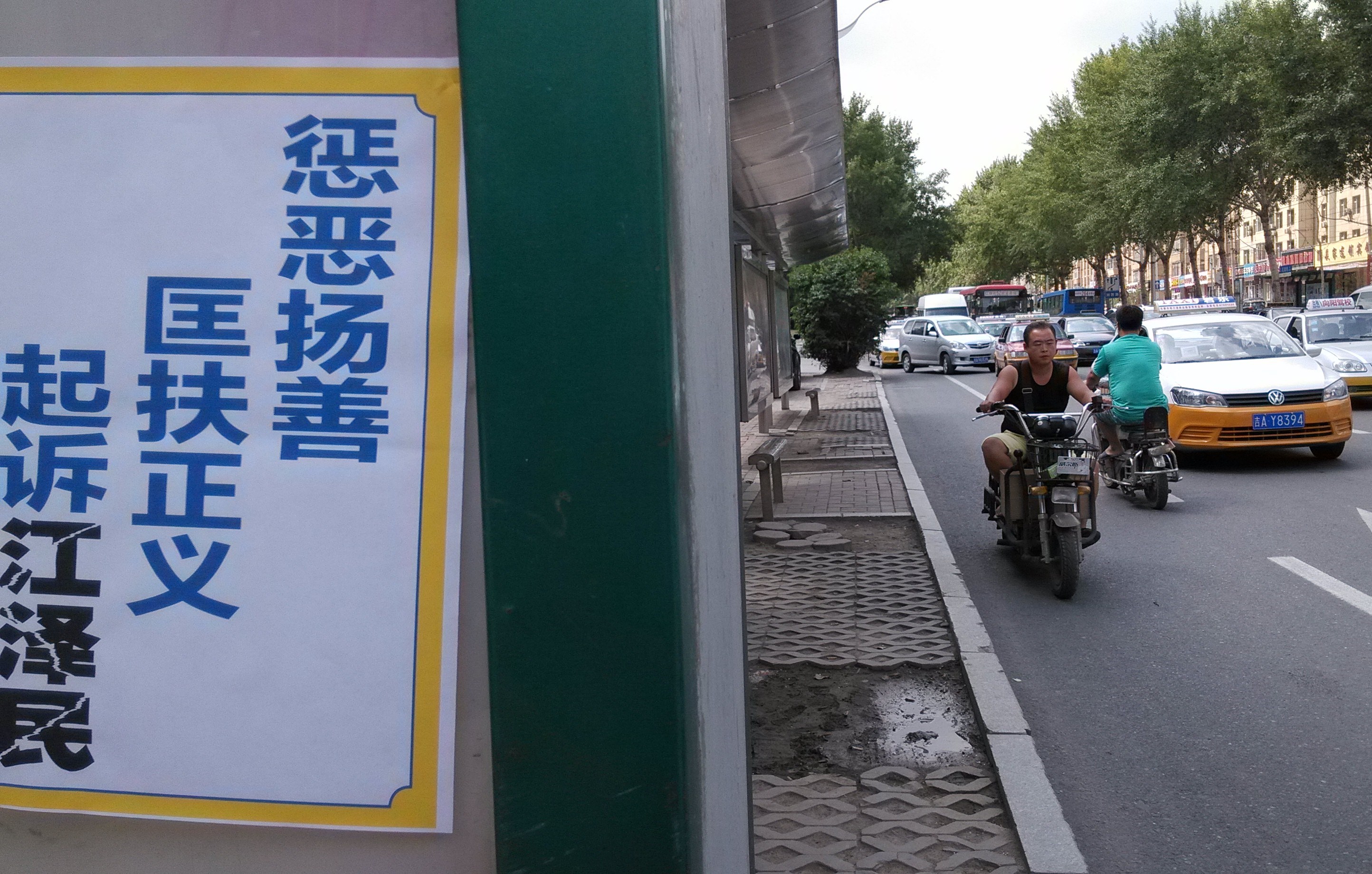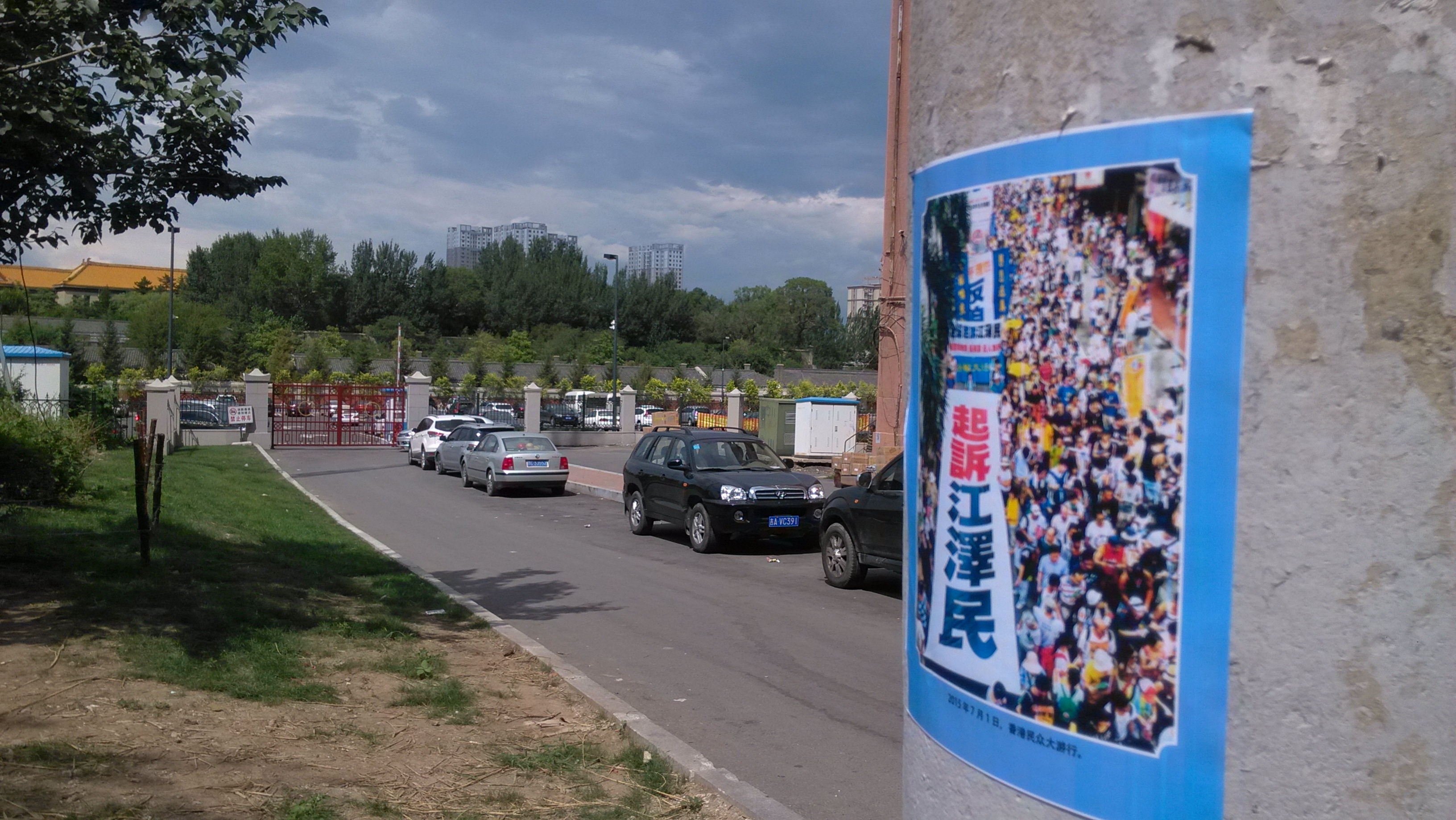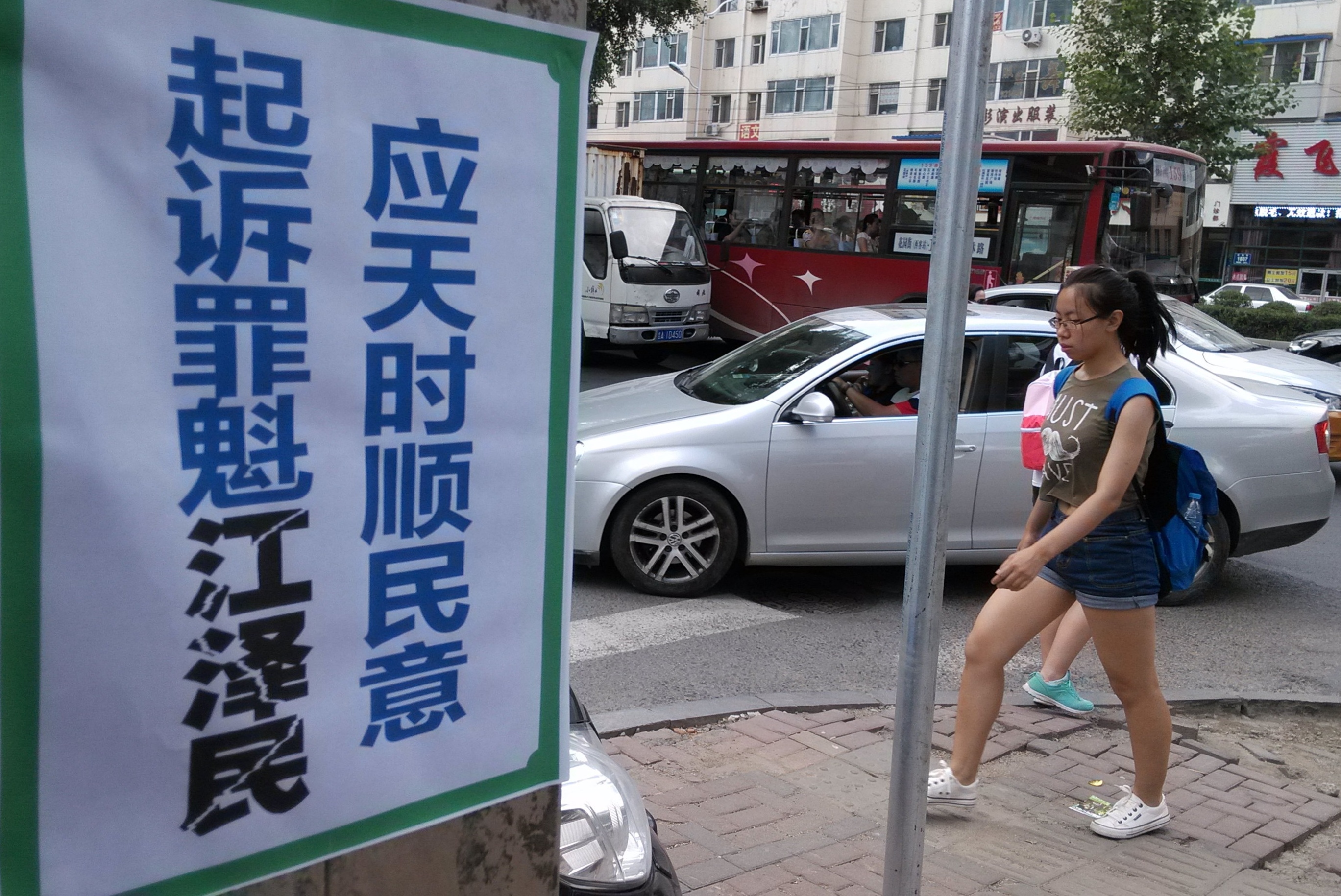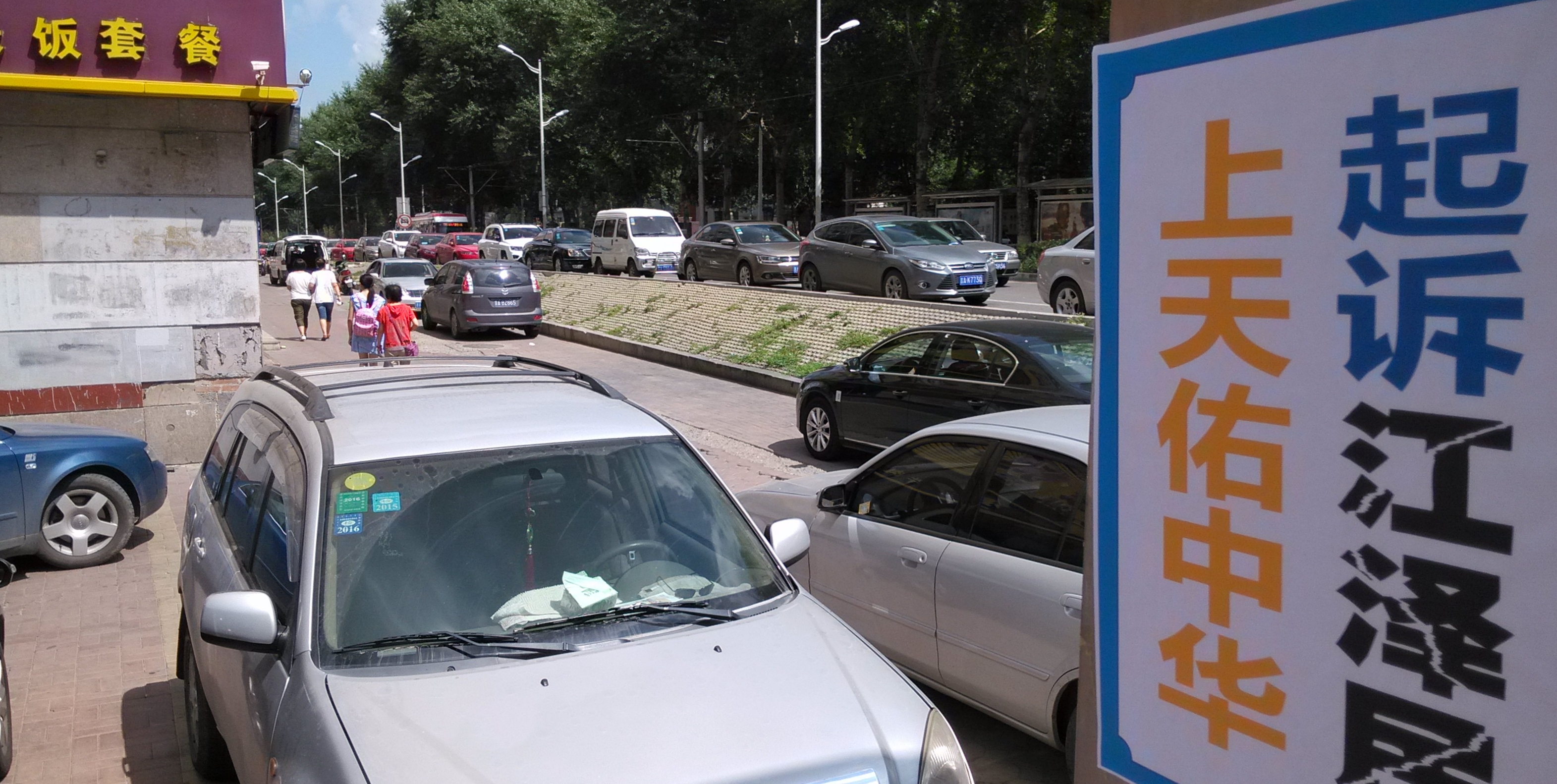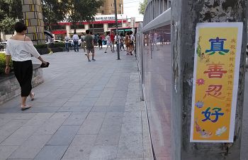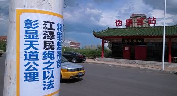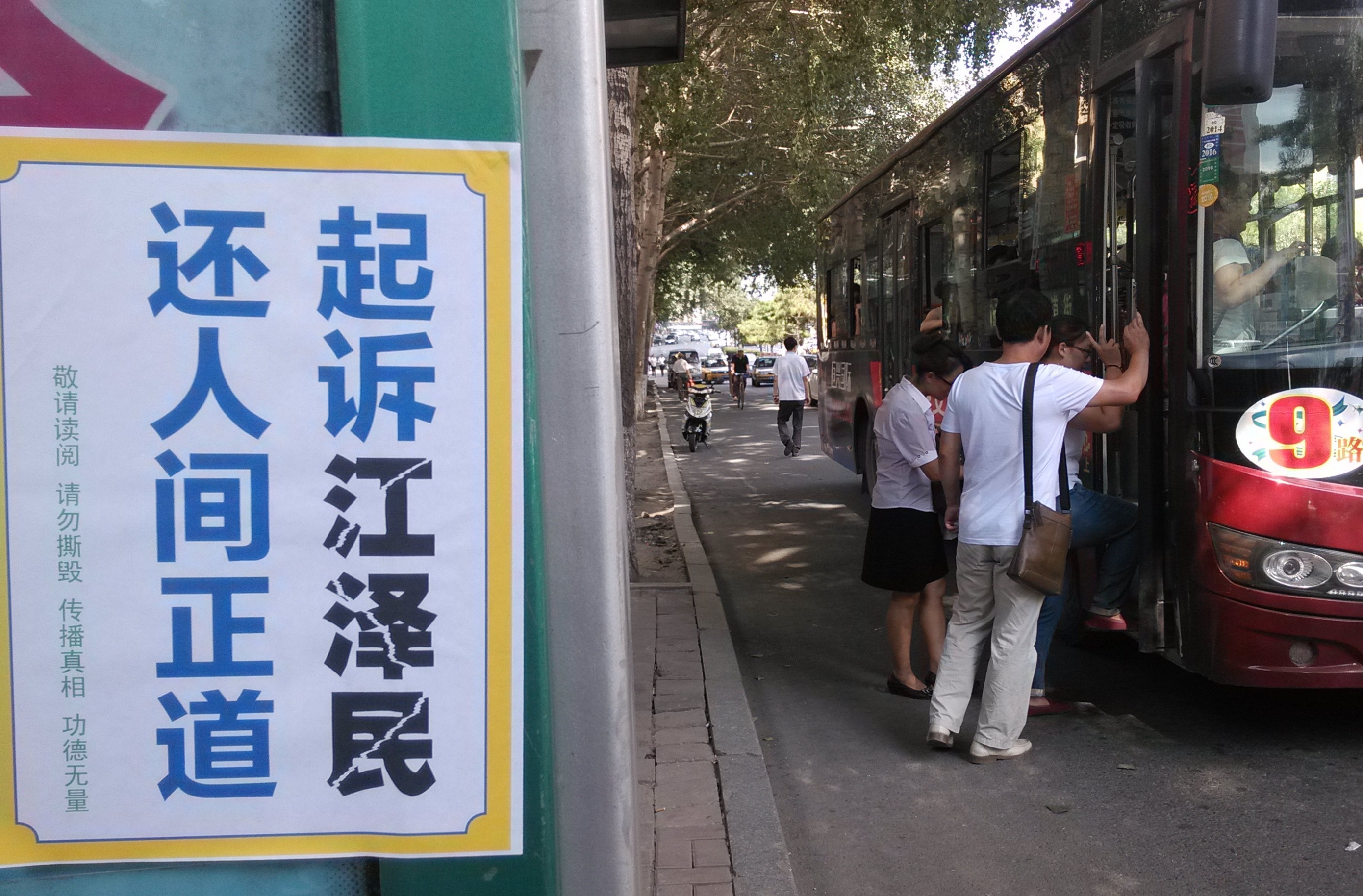【明慧网二零一五年八月十八日】二零一五年七月底、八月初,在吉林省长春市的景阳大路(法轮功创始人李洪志先生在长春的故居所在地)、吉林大学礼堂(法轮功创始人曾经讲法的礼堂),以及长春的伪皇宫、长春电影制片厂这两个参观景点及周边的车站、广告牌、林荫小路等处,随处可见真相标语,将在中国兴起的起诉江泽民大潮以及法轮大法好的信息传递给长春的百姓。