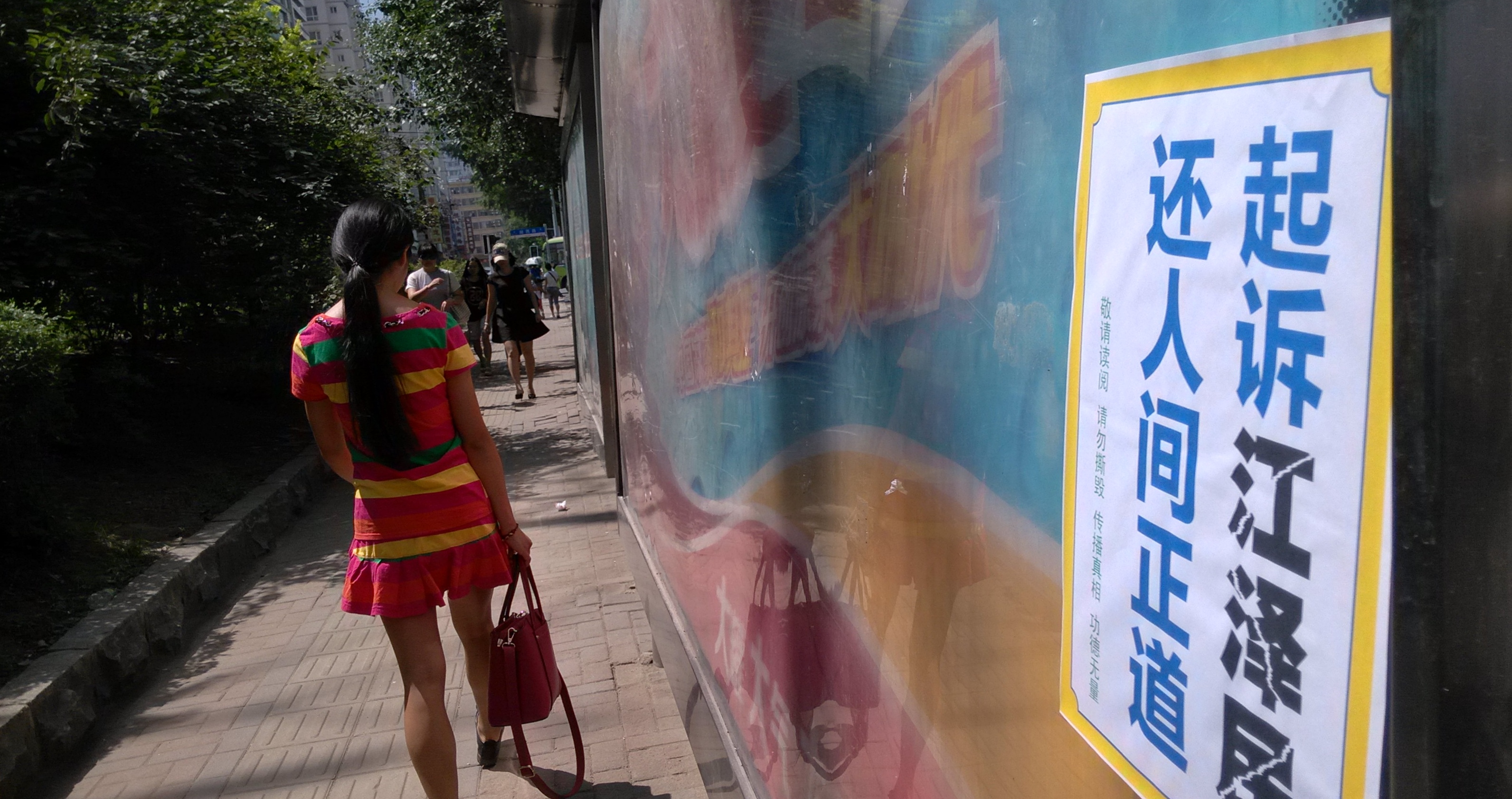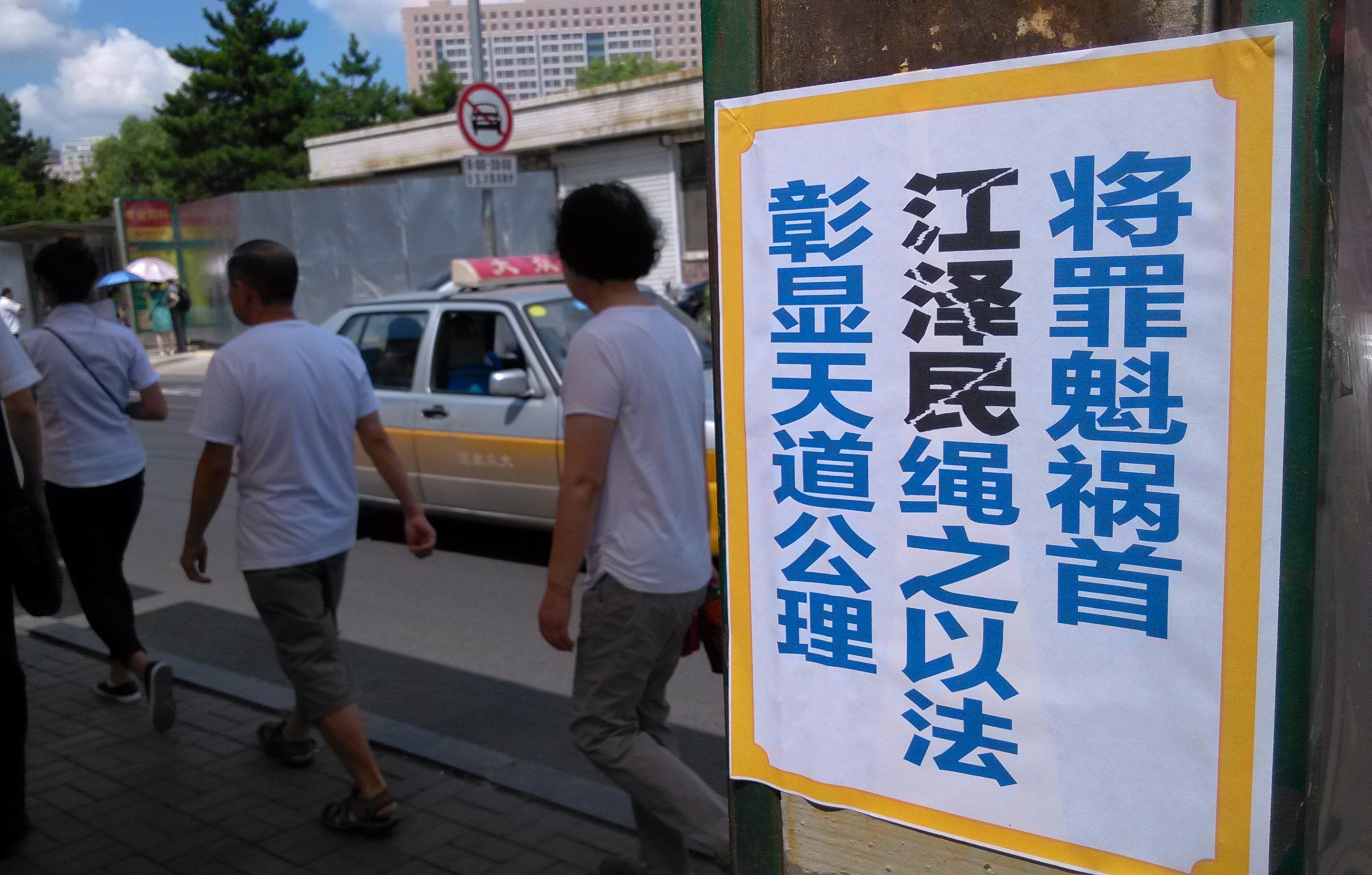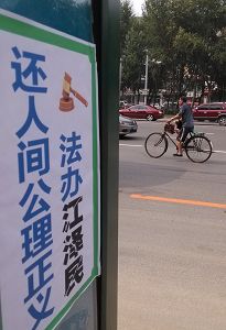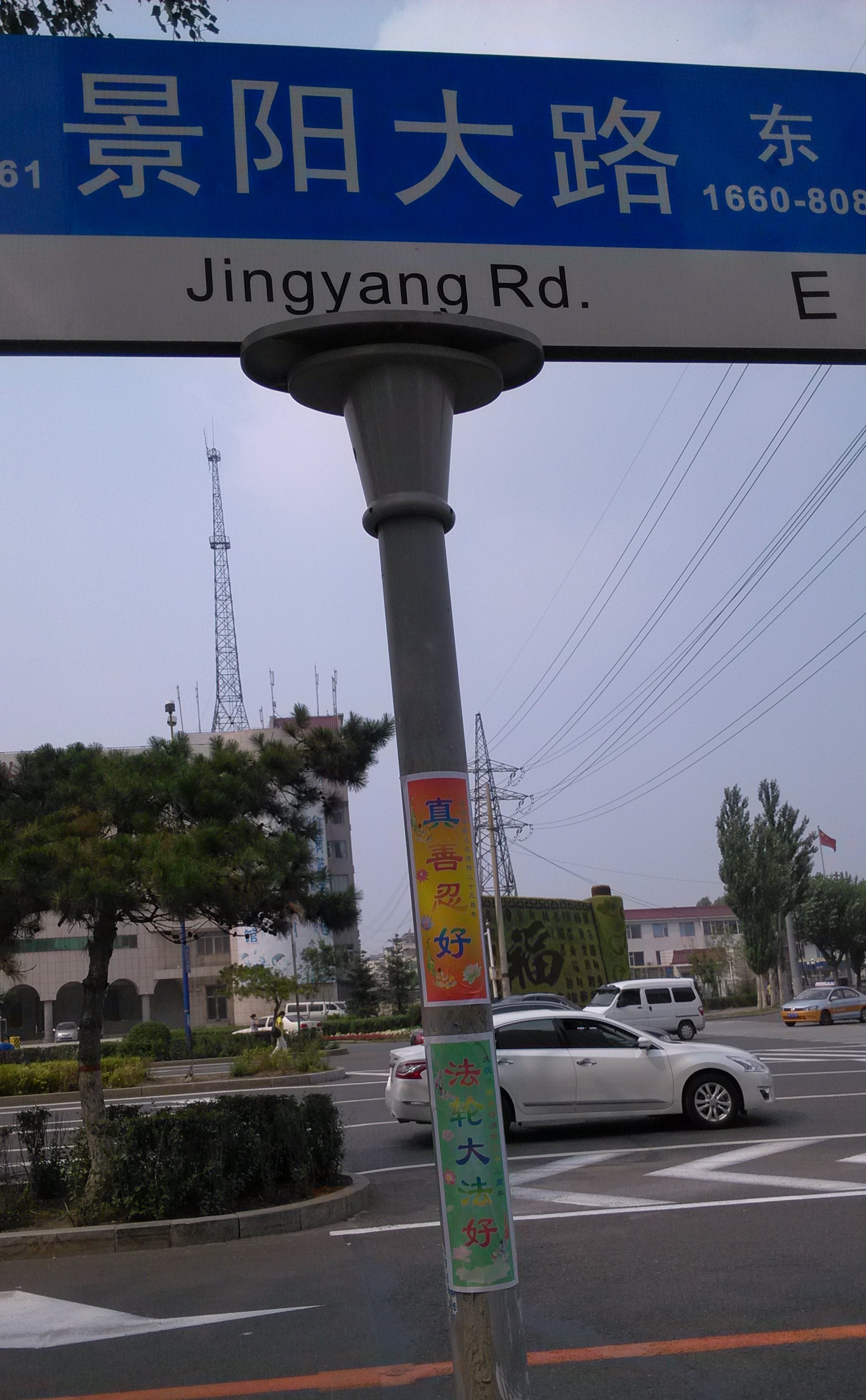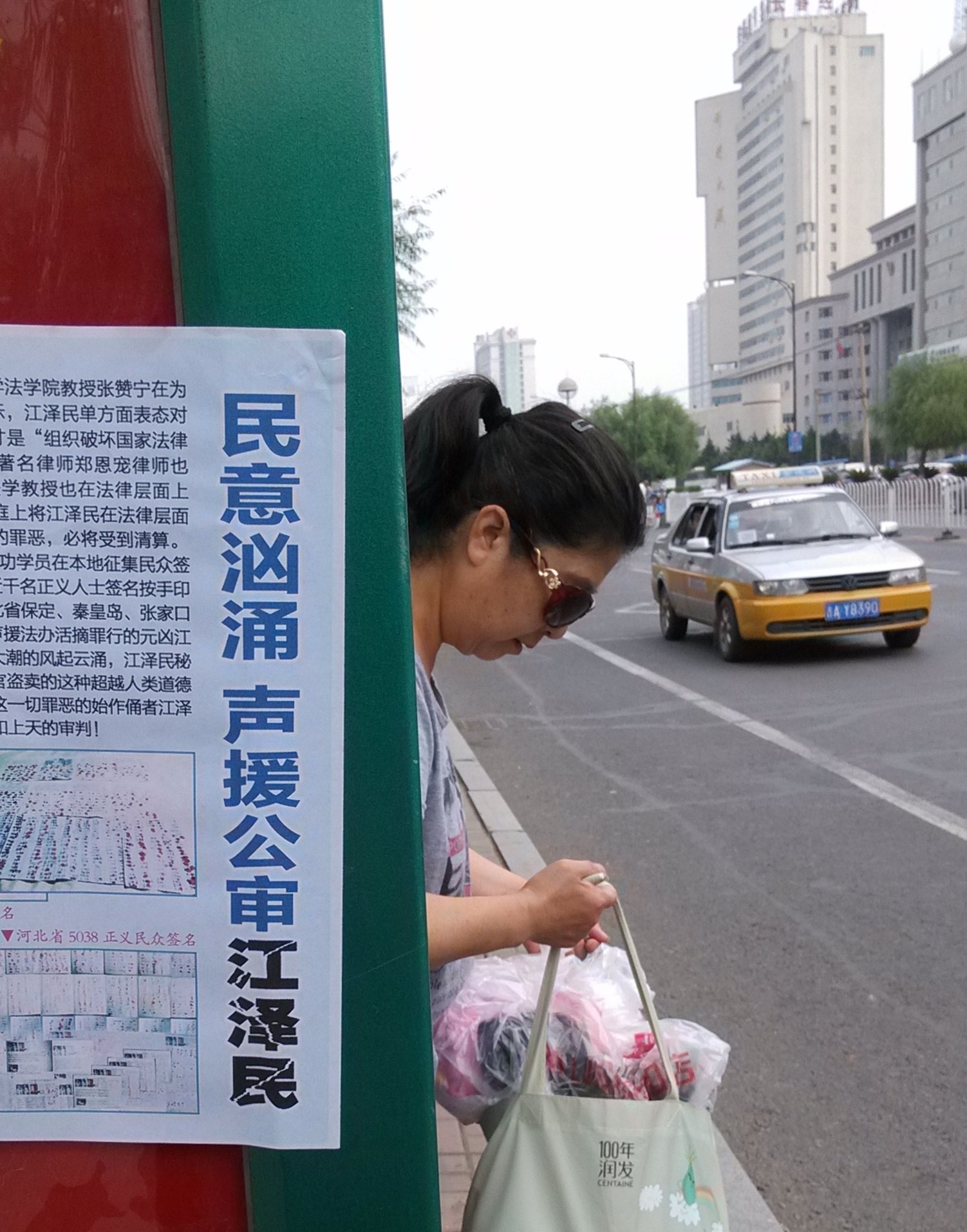 【明慧网二零一五年八月十八日】二零一五年七月底、八月初,在吉林省长春市的景阳大路(法轮功创始人李洪志先生在长春的故居所在地)、吉林大学礼堂(法轮功创始人曾经讲法的礼堂),以及长春的伪皇宫、长春电影制片厂这两个参观景点及周边的车站、广告牌、林荫小路等处,随处可见真相标语,将在中国兴起的起诉江泽民大潮以及法轮大法好的信息传递给长春的百姓。
